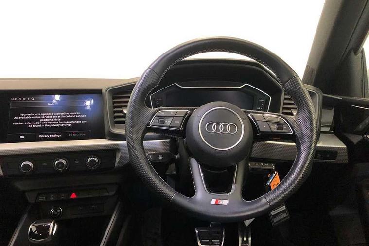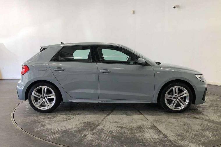10.25" Digital instrument cluster display classis style instrument dials + speed, odometer, time, outside temperature, telephone menu + fuel level warning, Audi connect safety emergency and service including E-call, Audi drive select - power steering assistance + engine + gear shift 3 preset modes (auto, dynamic, efficiency and an Individual mode), Audi smartphone interface with connect compatible smartphone via USB directly MMI display + Nav, music, third party apps controlled via MMI controller, Automatic start/stop system, Bluetooth interface, Cruise control, Driver's information system, Electromechanical power steering, Emergency services call system, Lane departure warning system, Service interval indicator, Speed limiter, Voice control system, Washer fluid level indicator, Sports suspension, 1 x SDXC card reader, 2 x USB type C connection points, DAB Digital radio, MMI radio plus with 8.8" colour MMI display screen and MMI touch, Auto dimming rear view mirror, Body coloured door mirrors, Door sills with aluminium inlays and S Line logo, Electric front and rear windows, Electrically adjustable, heated, folding door mirrors with integrated LED side indicator, Front side air inlets in grained matt black and C frame in titanium black, Heat insulating glass windscreen and side windows, Heated rear windscreen, High level LED brake light, LED headlights with LED rear lights + dynamic rear indicators + headlight adjustment and high beam, turning light + LED daytime running lights, Radiator grille and rear diffuser in matt titanium black, Radiator protective grille frame in matt aluminium silver, Rain and light sensors, Rear fog lights, Rear side wing doors, Rear wing door, Rear wiper, S line badges on front wings, Side front spoiler lips in grained matt black, 12V socket in centre console with two cup holders, 3 rear seats with headrests, 3 seat bench in 2nd row, 40:60 Split folding rear seat or folded fully, Black cloth headlining, Driver and passenger seat with manual height adjust with forward and backwards adjustment, Front and rear black floor mats with contrast stitching in fine silver, Front head restraints, Front passenger seat, Height and reach adjustable steering wheel, ISOFIX child seat mounting for front passenger and outer rear seats including top tether attachment point of outer rear seats, Leather gear knob with aluminium trim, Luggage compartment light with front and rear reading lights, Manually adjustable lumbar support in front seats, Stainless steel pedals, LED interior lighting pack - A1, Luggage compartment pack - A1, S line exterior styling pack - A1 Sportback, 3x3 point rear seatbelts, Audi pre-sense front with pedestrain and cyclist recognition, Brake assist function, Driver and front passenger airbag with front side and head airbags, Electronic Stability Control including ABS, EBD, ASR and EDL, Front passenger airbag deactivation switch, Hill hold assist, Manual rear child locks, Seatbelt height adjustment for front seats, Seatbelt monitoring, Tyre pressure warning light, Warning triangle and first aid kit, Anti theft alarm, Anti theft wheel bolts and loose wheel warning, Immobiliser, Remote central locking with 2 foldaway keys, Aluminium trim for control switches, air vents and digital instrument cluster, Silver grey inlays polygon structure in diamond paint finish, Structured grey accent areas including air vents, door handle recesses and centre console in quartz paint finish,