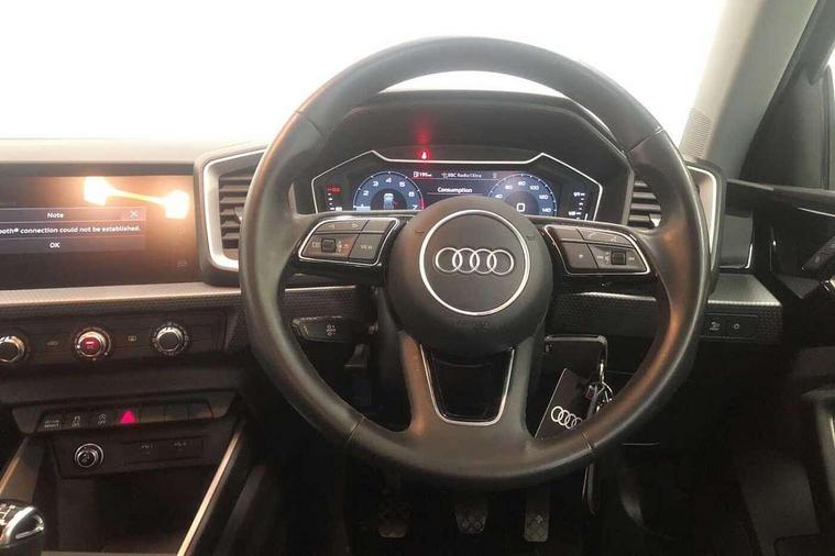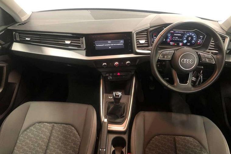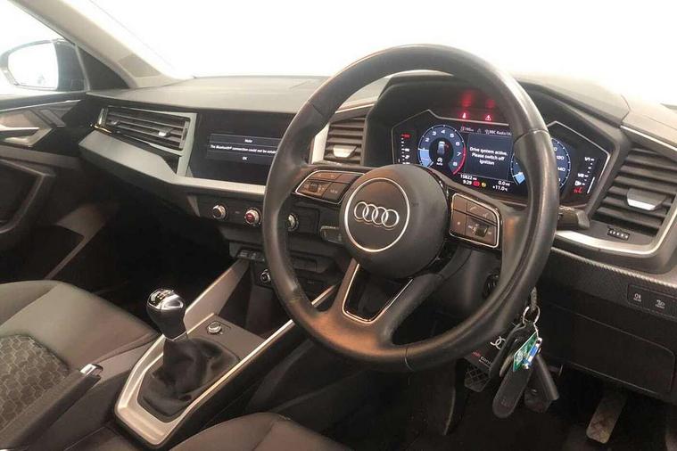 10.25" Digital instrument cluster display classis style instrument dials + speed, odometer, time, outside temperature, telephone menu + fuel level warning, Audi drive select - power steering assistance + engine, Audi smartphone interface with connect compatible smartphone via USB directly MMI display + Nav, music, third party apps controlled via MMI controller, Automatic start/stop system, Bluetooth interface, Cruise control, Driver's information system, Electromechanical power steering, Emergency e-call, Lane departure warning system, Rear parking sensor, Service interval indicator, Speed limiter, Voice control system, Washer fluid level indicator, Dynamic suspension, 2 x USB type C connection points, 6 passive loudspeakers, DAB Digital radio, MMI radio plus with 10.1" colour MMI display screen and MMI touch, Auto dimming rear view mirror, Body coloured bumpers, Body coloured door mirrors, Electric front and rear windows, Electrically adjustable, heated, folding door mirrors with integrated LED side indicator, Front side air inlets in grained matt black and C frame in anthracite black, Heat insulating glass windscreen and side windows, Heated rear windscreen, High level LED brake light, LED headlights with LED rear lights + dynamic rear indicators + headlight adjustment and high beam, turning light + LED daytime running lights, Radiator grille and rear diffuser in matt anthracite black, Radiator protective grille frame in matt aluminium silver, Rain and light sensors, Rear fog lights, Rear side wing doors, Rear wiper, Side front spoiler lips in grained matt black, 12V socket in centre console with two cup holders, 3 rear seats with headrests, 3 seat bench in 2nd row, 3 spoke leather multifunction plus steering wheel, 40:60 Split folding rear seat or folded fully, Black front and rear floor mats, Door sill trims with aluminium inlay, Driver and passenger seat with manual height adjust with forward and backwards adjustment, Front head restraints, Front passenger seat, Grey cloth headlining, Height and reach adjustable steering wheel, ISOFIX child seat mounting for front passenger and outer rear seats including top tether attachment point of outer rear seats, Leather gear knob with aluminium trim, Leatherette handbrake grip, Luggage compartment light with front and rear reading lights, Manual air conditioning, Manually adjustable lumbar support in front seats, Novum cloth upholstery with front sport seats, Luggage compartment pack - A1, 3x3 point rear seatbelts, Audi pre-sense front with pedestrain and cyclist recognition, Brake assist function, Driver and front passenger airbag with front side and head airbags, Electronic Stability Control including ABS, EBD, ASR and EDL, Front passenger airbag deactivation switch, Hill hold assist, Manual rear child locks, Seatbelt height adjustment for front seats, Seatbelt monitoring, Tyre pressure warning light, Warning triangle and first aid kit, Anti theft alarm, Anti theft wheel bolts and loose wheel warning, Immobiliser, Remote central locking with 2 foldaway keys, Aluminium trim for control switches, air vents and digital instrument cluster, Black dashboard, Silver grey accent areas including air vents, door handle recesses and centre console in diamond paint finish, Slate grey inlays polygon structure in fine paint finish,