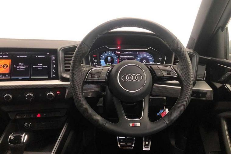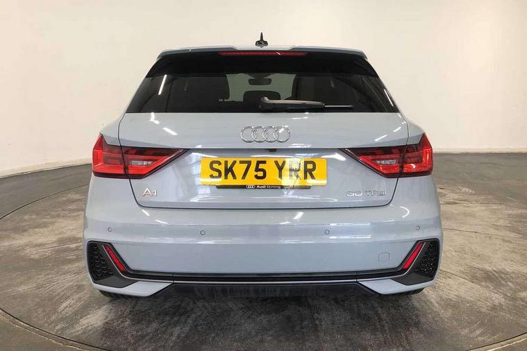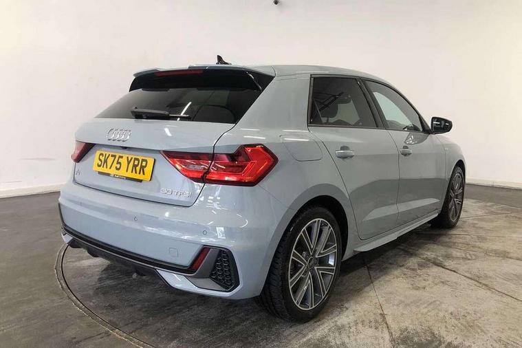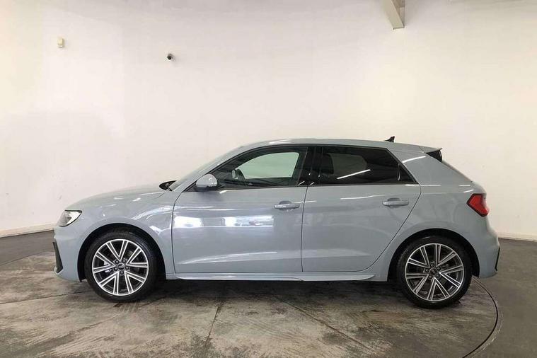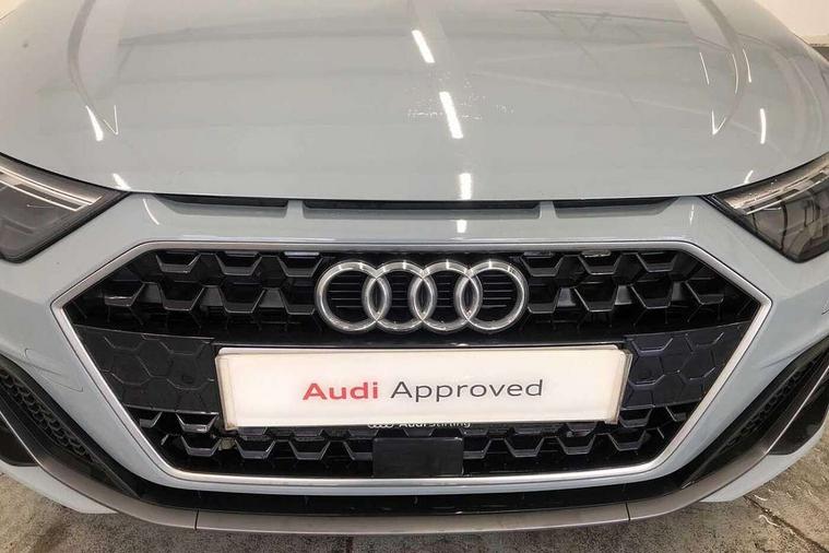 10.25" Digital instrument cluster display classis style instrument dials + speed, odometer, time, outside temperature, telephone menu + fuel level warning, Advanced driver attention and drowsiness monitor, Audi connect emergency call and service, Audi drive select, Audi remote connect and control, Audi smartphone interface, Bluetooth interface, Camera based traffic sign recognition, Cruise control, Driver's information system, Electromechanical power steering, Lane departure warning system, Rear parking sensor, Service interval indicator, Speed limiter, Start stop system with recuperation, Voice control system, Washer fluid level indicator, Sports suspension, 2 x USB type C connection points, 6 loudspeakers, DAB Digital radio, MMI radio plus with 10.1" colour MMI display screen and MMI touch, Auto dimming rear view mirror, Body coloured door mirrors, Door sill trims with aluminium inlays and S line logo in front, Electric front and rear windows, Electrically adjustable, heated, folding door mirrors with integrated LED side indicator, Front side air inlets in grained matt black and C frame in anthracite black, Headlight cleaning system, Heat insulating glass windscreen and side windows, Heated rear windscreen, High level LED brake light, LED daytime running lights, LED headlights with range control LED rear lights + dynamic rear indicators, Light and rain sensors, Privacy glass, Radiator grille and rear diffuser in matt anthracite black, Radiator protective grille frame in matt aluminium silver, Rear fog lights, Rear side wing doors, Rear wiper, S line badges on front wings, Side front spoiler lips in grained matt black, 12V socket in centre console with two cup holders, 3 rear seats with headrests, 3 seat bench in 2nd row, 3 spoke leather multi-function plus steering wheel features S badging and grips in perforated leather with contrast stitching, 40:60 Split folding rear seat or fully collapsed, Black cloth headlining, Front and rear velour black floor mats with contrast stitching in fine silver, Front head restraints, Front passenger seat, Height and reach adjustable steering wheel, Interior lighting includes roof module, front and rear reading lights and right luggage compartment lighting, ISOFIX child seat mounting for front passenger and outer rear seats including top tether attachment point of outer rear seats, Leather gear knob with aluminium trim, Leather handbrake grip, Manual air conditioning, Manual height adjustable for driver and front passenger seat, Manually adjustable lumbar support in front seats, Stainless steel pedals, Ambient lighting package - A1, Luggage compartment pack - A1, S line exterior styling pack - A1 Sportback, 3x3 point rear seatbelts, Audi pre-sense front with pedestrain and cyclist recognition, Brake assist function, Driver and front passenger airbag with front side and head airbags, Electronic Stability Control including ABS, EBD, ASR and EDL, Front passenger airbag deactivation switch, Hill hold assist, Manual rear child locks, Seatbelt height adjustment for front seats, Seatbelt monitoring, Tyre pressure loss indicator, Warning triangle and first aid kit, Anti theft alarm, Anti theft wheel bolts, Immobiliser, Remote control key with safelock, Aluminium trim for control switches, air vents and digital instrument cluster, Black dashboard, Silver grey inlays polygon structure in diamond paint finish, Structured grey accent surfaces insert of air vents, interior door handle recesses and centre console in quartz paint finish,