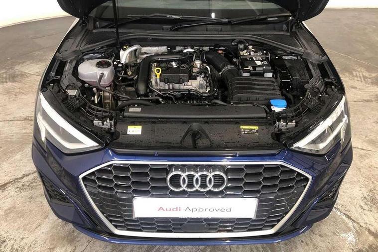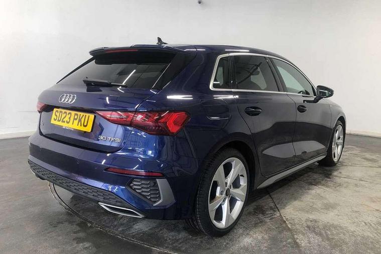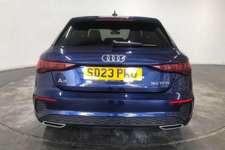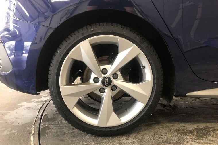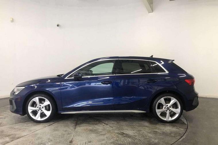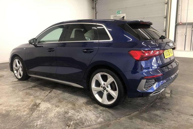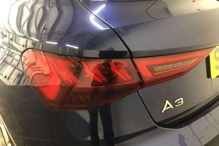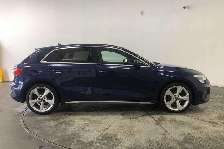 Audi drive select (Auto, Comfort, Dynamic and Individual), Audi smartphone interface, Audi Virtual Cockpit - 10.25" digital and colour instrument cluster, Automatic start/stop system with recuperation, Bluetooth interface, Camera based traffic sign recognition, Collision avoidance assistant, Cruise control, e-Call (emergency call), Electromechanical power speed sensitive steering, Lane departure warning system, MMI Navigation Plus with high resolution 10.1" colour touch screen display, Rear parking sensors, Service indicator, Trip computer, Voice control system with natural language interaction, Sports suspension, 2xUSB-C connection with data and charging functions, 6 passive loudspeakers, DAB Digital radio, 3rd brake light, Acoustic glass windscreen, Aluminium window trim, Auto dimming frameless rear view mirror, Body colour exterior mirrors, Electrically adjustable/heated/folding/auto dimming door mirrors with integrated LED indications + kerb view function for passenger side, Front electric windows, Illuminated aluminium inserts front door sills with S logo, LED daytime running lights, LED headlights with LED rear lights and dynamic rear indicators, Light and rain sensors, Privacy glass - dark tinted rear window, rear door and side windows, Rear electric windows, Rear side air outlets in grained matt black, Rear side wing doors, Rear wiper, S line bumpers, S roof spoiler, 12V socket and storage compartment in front centre console, 3 seat bench in 2nd row, 3 spoke leather multifunction steering wheel, 4 way electrically adjustable lumbar support for driver and front passenger, 60/40 split folding rear seat bench, Black cloth headlining, Dual zone electronic climate control, Front and rear centre armrest in leather, Front and rear headrests, Front/rear floor mats, Height and reach adjustable steering wheel, Interior lighting - glove compartment light and right hand side, Luggage compartment floor covering, Manual boot compartment lid, Manually adjustable front seats, Seat side bolsters, Single front passenger seat, Stainless steel pedals and front footrest in black, Twin leather upholstery with front sports seats S embossed logo, Aluminium interior elements pack - A3 Sportback, LED interior lighting pack - A3 Sportback, S line styling pack - A3 Sportback, 3x3 point rear seat belts, Driver and front passenger airbag with passenger airbag deactivation, Electronic Stabilisation Control (ESC) including ABS, ASR and EDL, First aid kit with warning triangle and 2 safety vests, Front side airbags with head airbags and interaction airbag, Pre-sense front with pedestrian and cyclist detection, Seatbelt monitoring, Tyre pressure loss indicator, Anti theft alarm, Anti-theft wheel bolts, Electronically operated child lock, Immobiliser, Remote control central locking, Dark spectrum aluminium inlays, accent surfaces in the dashboard and centre console in platinum grey silk effect paint finish,