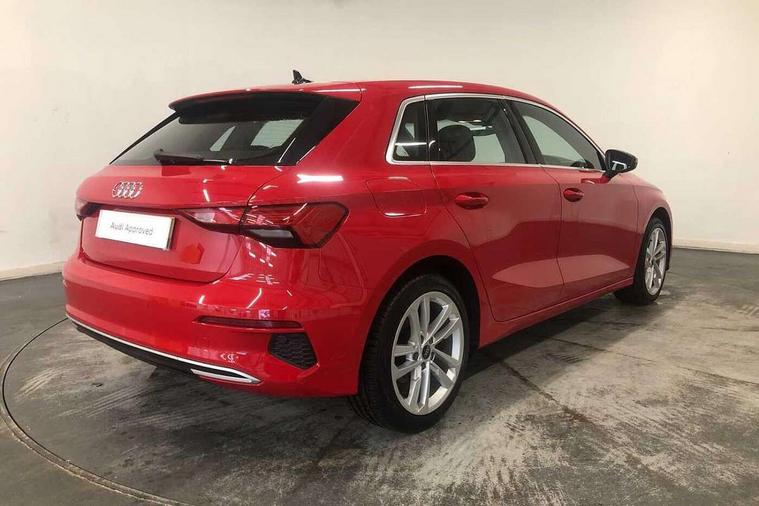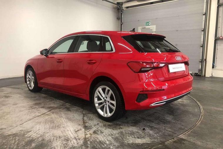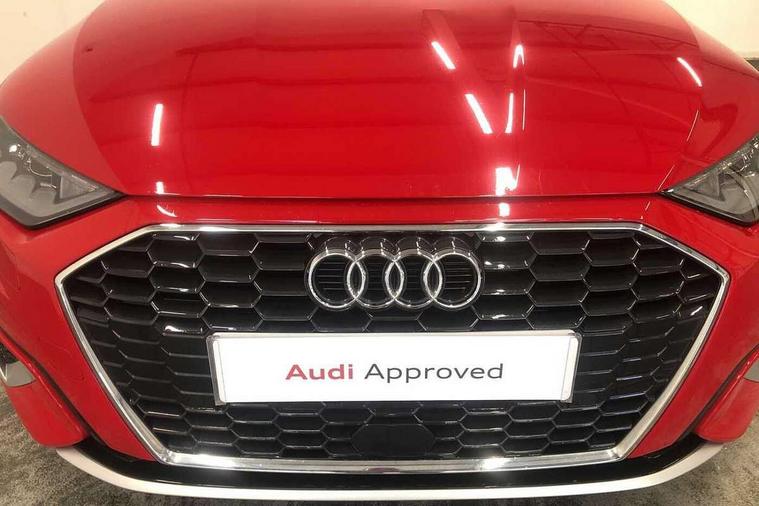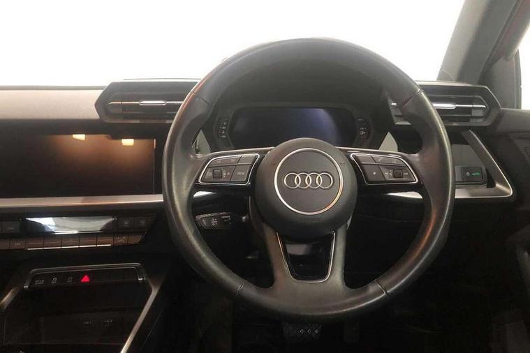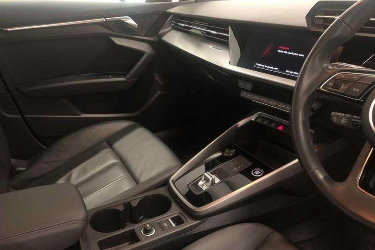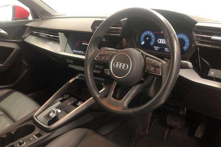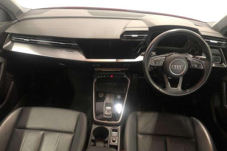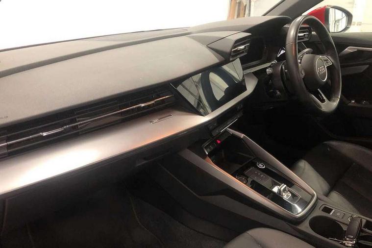 Audi drive select (Auto, Comfort, Dynamic, Efficiency and Individual), Audi smartphone interface, Audi Virtual Cockpit - 10.25" digital and colour instrument cluster, Automatic start/stop system with recuperation, Bluetooth interface, Collision avoidance assistant, e-Call (emergency call), Electromechanical power speed sensitive steering, Lane departure warning system, MMI Navigation Plus with high resolution 10.1" colour touch screen display, Service indicator, Trip computer, Voice control system with natural language interaction, Standard suspension, 2xUSB-C connection with data and charging functions, 6 passive loudspeakers, DAB Digital radio, 3rd brake light, Acoustic glass windscreen, Aluminium window trim, Auto dimming frameless rear view mirror, Body colour exterior mirrors, Body colour roof spoiler, Electrically adjustable/heated/folding/auto dimming door mirrors with integrated LED indications + kerb view function for passenger side, Front electric windows, LED daytime running lights, LED headlights and halogen rear lights, Light and rain sensors, Rear electric windows, Rear side wing doors, Rear window, rear door windows and rear side windows in clear glass, Rear wiper, 12V socket and storage compartment in front centre console, 3 seat bench in 2nd row, 40/20/40 split folding rear seat bench with cupholder, Dual zone electronic climate control, Front and rear centre armrest, Front and rear headrests, Front door sill trims with aluminium inlay, Front/rear floor mats, Height and reach adjustable steering wheel, Interior lighting - Front and rear roof module including reading lights, glove compartment light and right hand side, Luggage compartment floor covering, Manual boot compartment lid, Manually adjustable front seats, Seat side bolsters, Single front passenger seat, Steel grey cloth headlining, Twin leather upholstery, Aluminium interior elements pack - A3 Sportback, Sport styling pack - A3 Sportback, 3x3 point rear seat belts, Audi pre sense front, Driver and front passenger airbag with passenger airbag deactivation, Electronic Stabilisation Control (ESC) including ABS, ASR and EDL, First aid kit with warning triangle and 2 safety vests, Front side airbags with head airbags and interaction airbag, Pre-sense front with pedestrian and cyclist detection, Seatbelt monitoring, Tyre pressure loss indicator, Anti theft alarm, Anti-theft wheel bolts, Electronically operated child lock, Immobiliser, Remote control central locking, Inlays with silk effect paint in platinum grey,