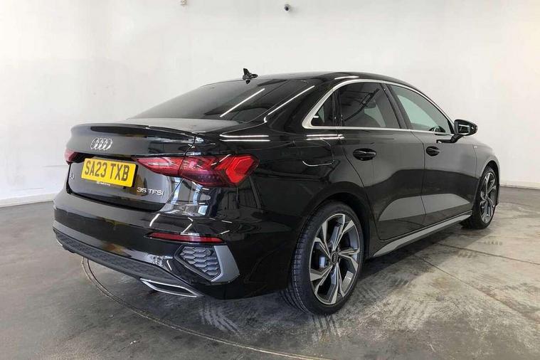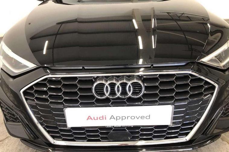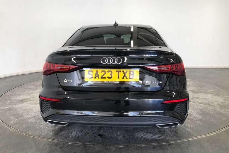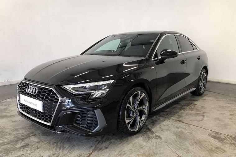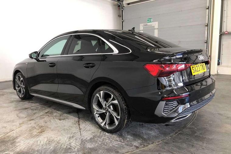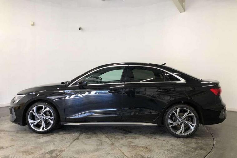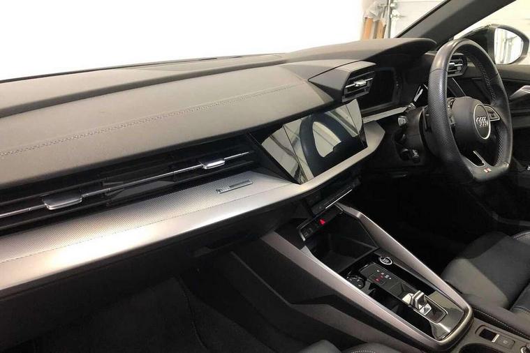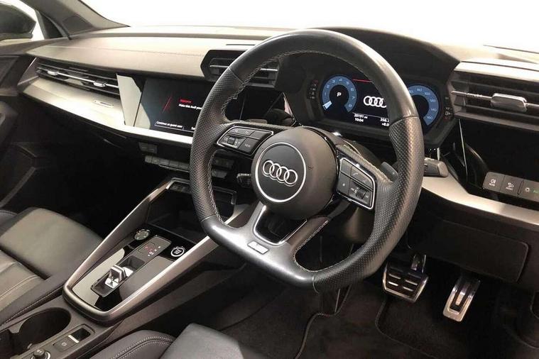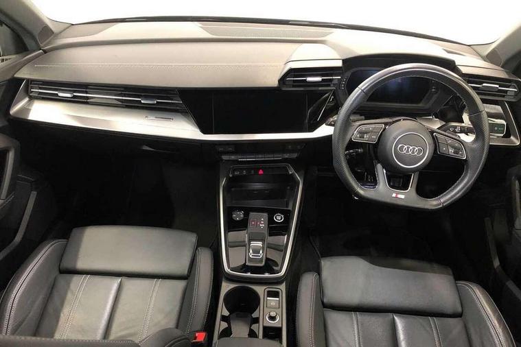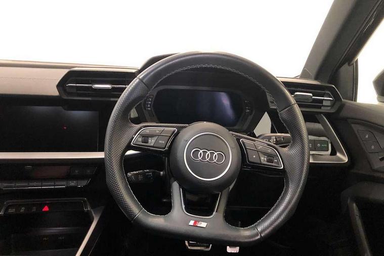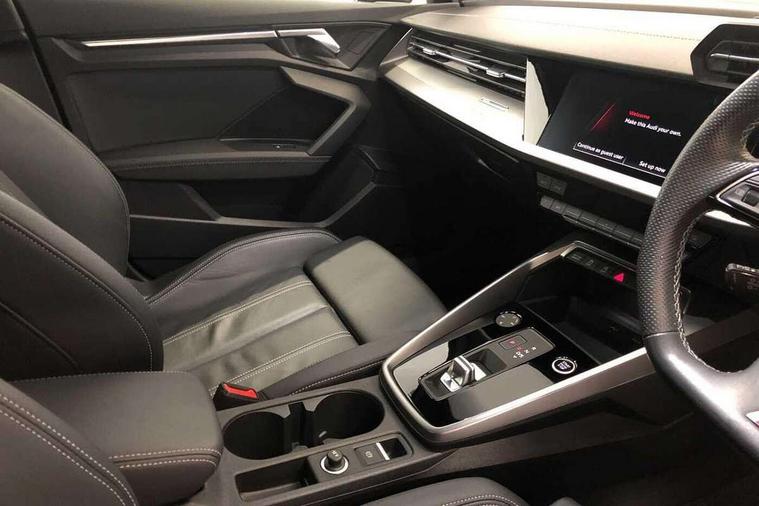 Audi connect emergency call and service, Audi drive select (Auto, Comfort, Dynamic, Efficiency and Individual), Audi smartphone interface, Audi Virtual Cockpit - 10.25" digital and colour instrument cluster, Automatic start/stop system with recuperation, Bluetooth interface, Collision avoidance assistant, Electromechanical power speed sensitive steering, Lane departure warning system, MMI Navigation Plus with high resolution 10.1" colour touch screen display, Service indicator, Voice control system with natural language interaction, Sports suspension, 2x USB Type C ports (for charging and data transfer), 6 passive loudspeakers, CD player, DAB Digital radio, 3rd brake light, Acoustic glass windscreen, Aluminium window trim, Auto dimming frameless rear view mirror, Body colour exterior mirrors, Electrically adjustable/heated/folding/auto dimming door mirrors with integrated LED indications + kerb view function for passenger side, Front electric windows, Illuminated door sills with aluminium inserts at the front with S logo, LED daytime running lights, LED headlights with LED rear lights and dynamic rear indicators, Light and rain sensors, Model and engine designation badges at rear, Privacy glass - dark tinted rear window, rear door and side windows, Rear boot, Rear electric windows, Rear side wing doors, S line bumpers, S roof spoiler, 12V socket and storage compartment in front centre console, 3 seat bench in 2nd row, 3 spoke leather multifunction steering wheel with gear shift paddles, 40/20/40 split folding rear seat bench with cupholder, Black cloth headlining, Dual zone electronic climate control, Front and rear centre armrest in leather, Front and rear headrests, Front/rear floor mats, Height and reach adjustable steering wheel, Illuminated vanity mirror, Interior lighting - glove compartment light and right hand side, Luggage compartment floor covering, Manual boot compartment lid, Manually adjustable front sport seats, Seat side bolsters, Single front passenger seat, Stainless steel pedals and front footrest in black, Twin leather upholstery with front sports seats S embossed logo, Aluminium interior elements pack - A3, LED interior lighting pack - A3 Saloon, S line styling pack - A3 Saloon, 3x3 point rear seat belts, Driver and front passenger airbag with passenger airbag deactivation, Electronic Stabilisation Control (ESC) including ABS, ASR and EDL, First aid kit with warning triangle and 2 safety vests, Front side airbags with head airbags and interaction airbag, Hill hold assist, Pre-sense front with pedestrian and cyclist detection, Seatbelt monitoring, Tyre pressure loss indicator, Anti theft alarm, Anti-theft wheel bolts, Electronically operated child locks, Immobiliser, Remote control central locking, Aluminium air vent surrounds, Aluminium trim elements, Dark spectrum aluminium inlays, accent surfaces in the dashboard and centre console in platinum grey silk effect paint finish,