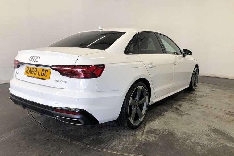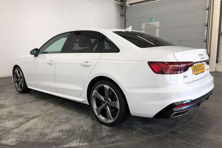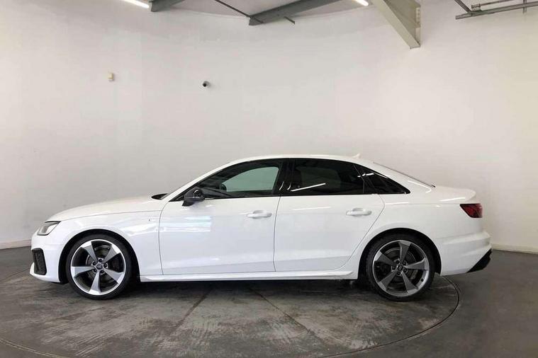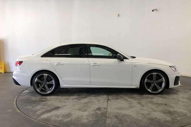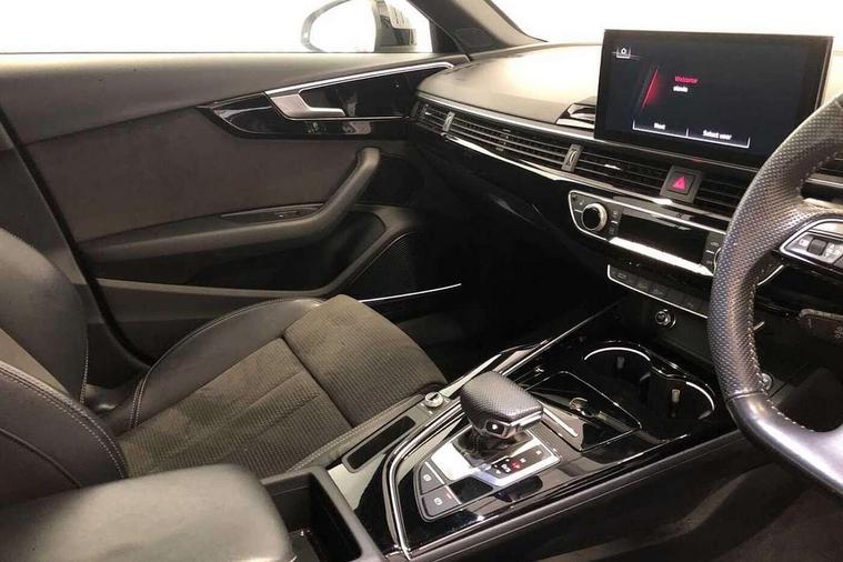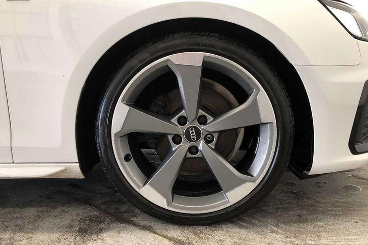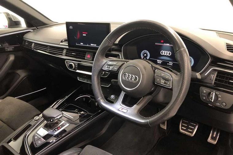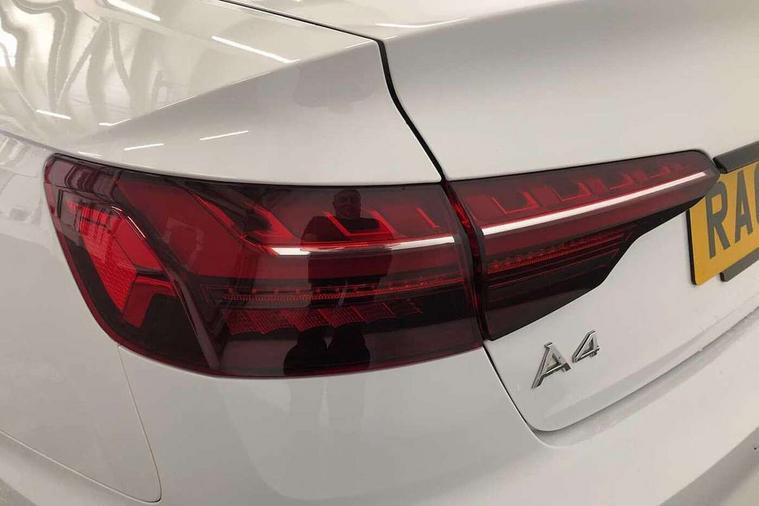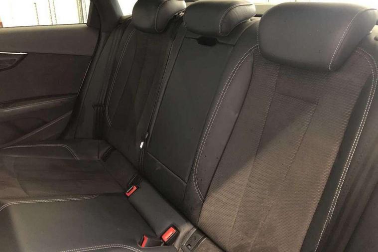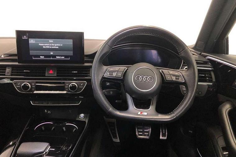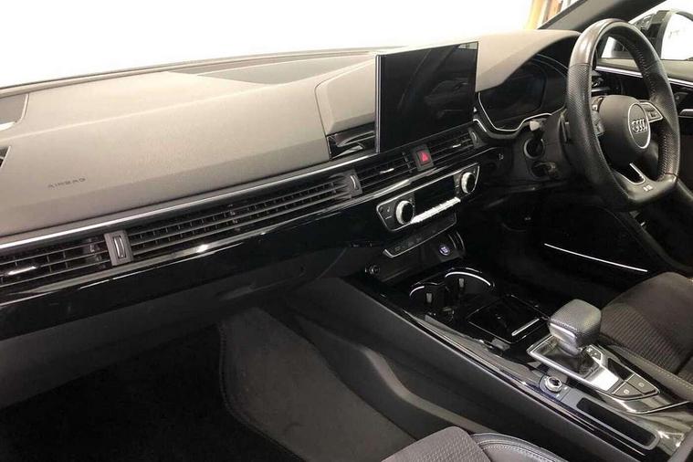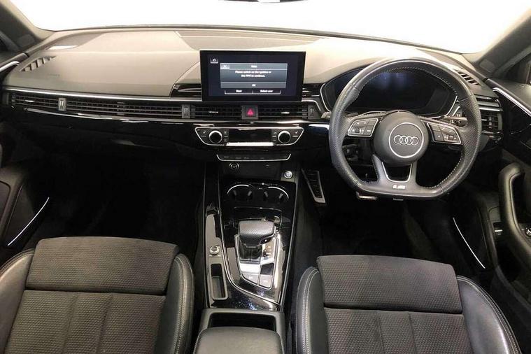 Audi connect safety and service (e-call), Audi drive select, Audi parking system plus with front and rear sensors, Audi smartphone interface, Audi virtual cockpit, Automatic start-stop system with coasting functionality and efficiency programme, Bluetooth interface, Electric boot lid release, Electromechanical power steering, MMI Navigation plus with MMI touch includes 10.1" high resolution colour MMI display, 3D map, Rear view camera, Voice control system, 54 litre fuel tank, Sports suspension lowered by 23mm, 2 USB charging ports, 8 passive loudspeakers, DAB digital radio reception, Auto dimming rear view mirror, Body colour door handles, Body colour front spoiler lip, Body colour side sill trim, Electrically folding auto dimming/adjustable/heated door mirrors with LED side indicators and kerb view function for passenger side, Grained matt black side air inlets with matt aluminium silver inlay, High beam assistant, LED headlights with LED rear lights + dynamic rear indicators + headlight adjustment and high beam, turning light + LED daytime running lights, Matt aluminium silver tailpipe trim, New design rear diffuser, Privacy glass, Rain and light sensors, S Line badges on the front wings, S line front and rear bumpers with side skirts, S Line rear diffuser in matt titanium black with trim strip in matt aluminium silver, Windscreen with acoustic glazing, 3 spoke flat bottomed high multi-function leather sport steering wheel with gearshift paddles, 4 way electric lumbar support for driver and front passenger, 40/20/40 split folding 3 rear seat bench in 3 parts with rear centre armrest, Black cloth headlining, Black perforated leather gearknob, Contrast stitching on seats, steering wheel and gear lever gaiter, Deluxe 3 zone electronic climate control, Door sill trims with aluminium inlay, Front and rear head restraints, Front centre armrest, Heated front seats, Illuminated door sill trims with S logo, ISOFIX child seat mounting and top tether, Manual seat adjustment, Stainless steel pedals and foot rest, LED Interior light pack - A4/S4, Titanium black styling pack - A4 Saloon, 3 rear seatbelts, 6 airbags - Driver, front passenger, curtain and side windows, Electronic Stabilisation Control (ESC) including ABS, ASR and EDL, Hill hold assist, Multi collision brake assist, Pop-up bonnet for pedestrian protection, Pre sense city, Seatbelt monitoring, Warning triangle and first aid kit, Anti theft alarm, Anti theft wheel bolts, Keyless Go, Piano black finish inlay, 19" 5 arm rotor design alloy wheels titanium matt look, Tool kit, Tyre repair kit,