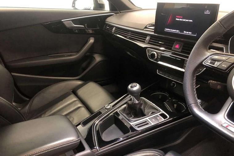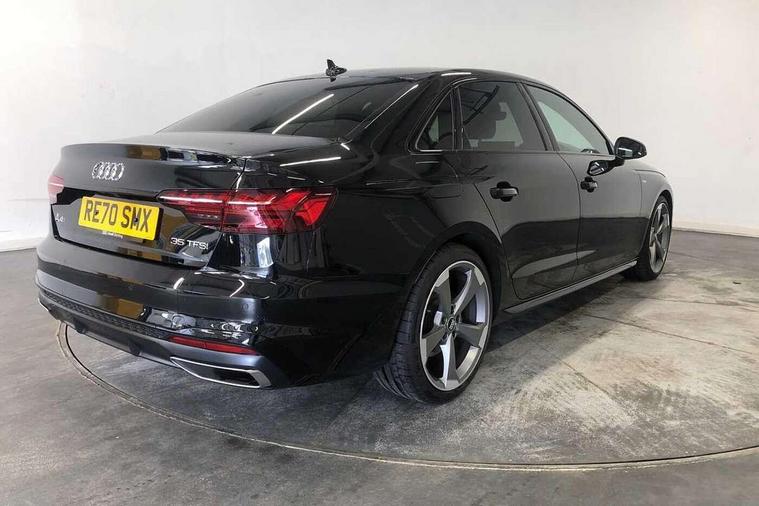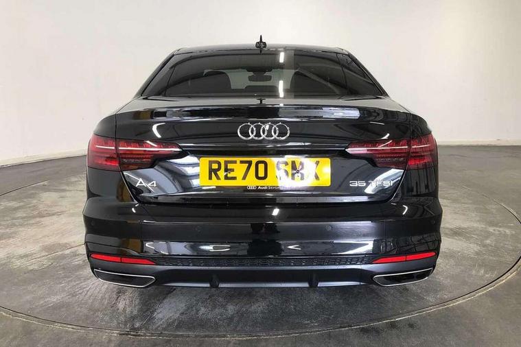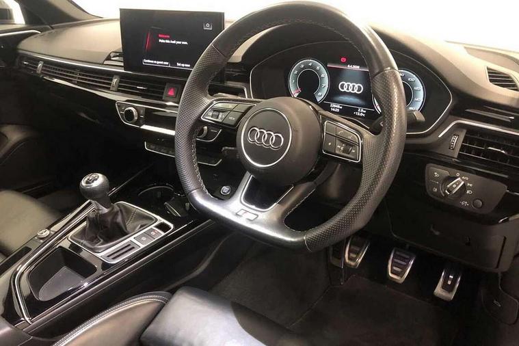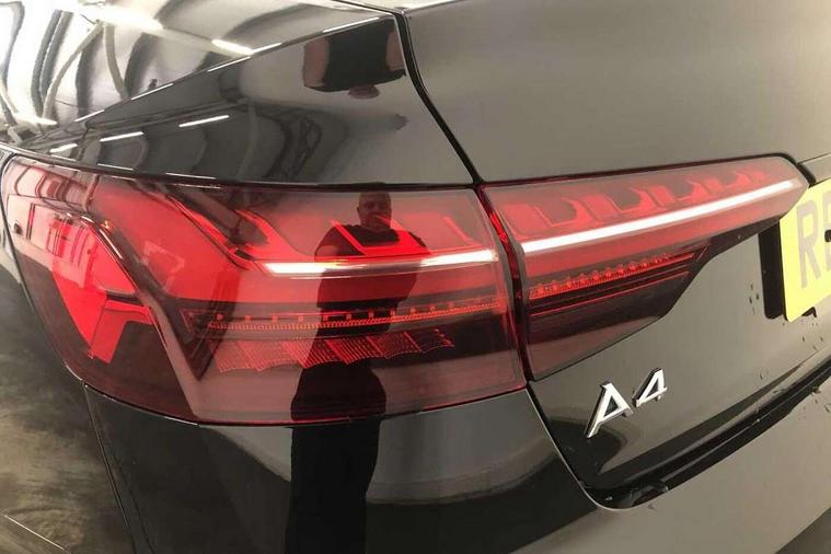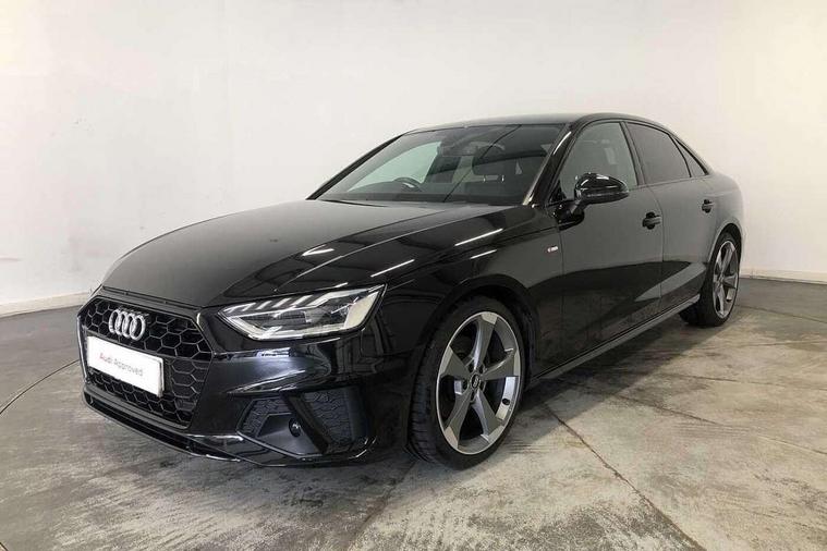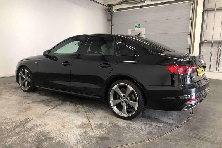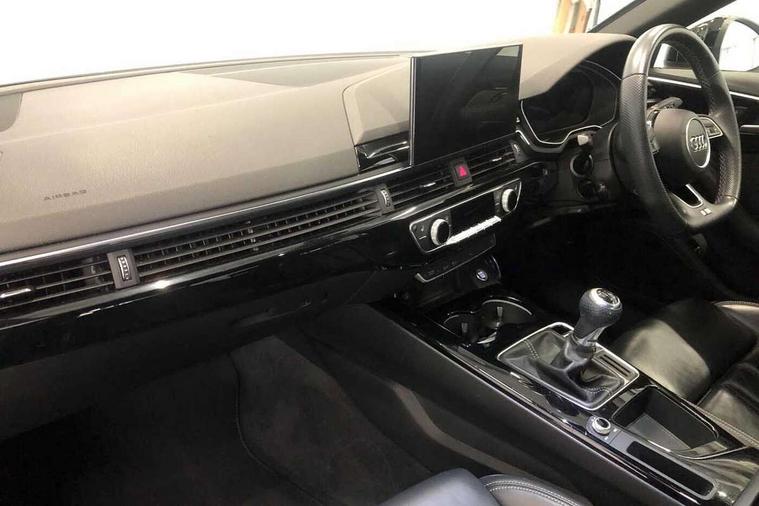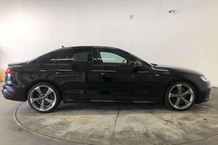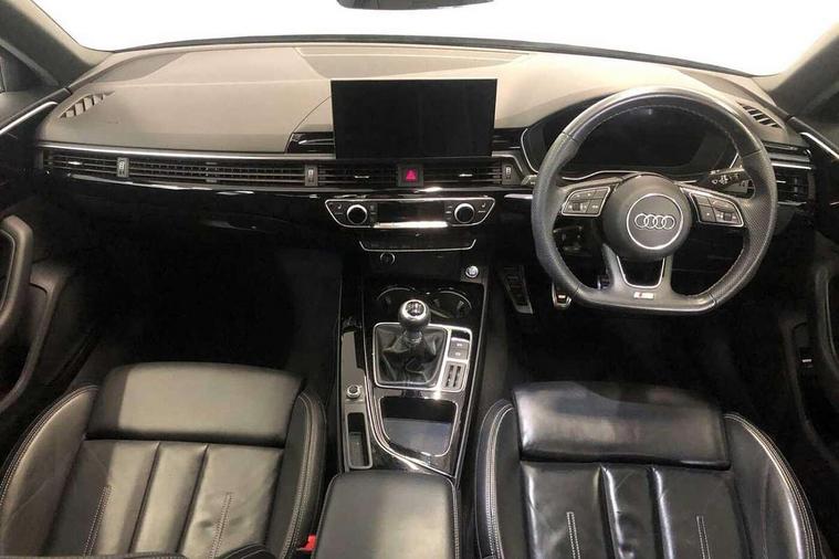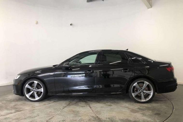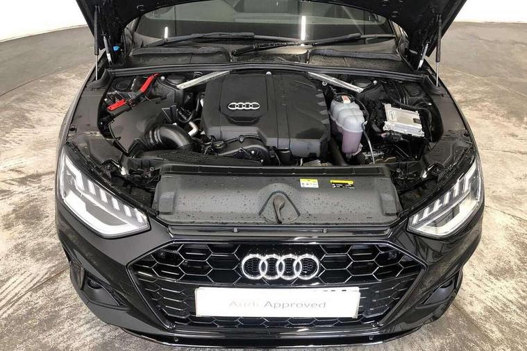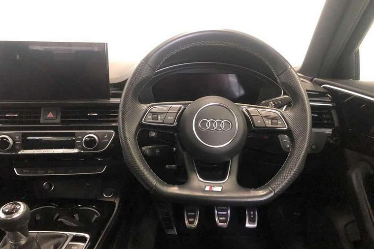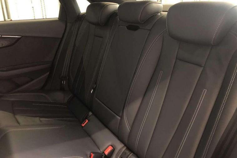 Audi connect safety and service (e-call), Audi drive select, Audi parking system plus with front and rear sensors, Audi smartphone interface, Audi virtual cockpit, Automatic start-stop system with coasting functionality and efficiency programme, Bluetooth interface, Cruise control system with speed limiter, Electric boot lid release, Electromechanical power steering, MMI Navigation plus with MMI touch includes 10.1" high resolution colour MMI display, 3D map, Rear view camera, Voice control system, 54 litre fuel tank, Sports suspension lowered by 23mm, 2 USB charging ports, 8 passive loudspeakers, DAB digital radio reception, Auto dimming rear view mirror, Body colour door handles, Body colour front spoiler lip, Body colour side sill trim, Electrically folding auto dimming/adjustable/heated door mirrors with LED side indicators and kerb view function for passenger side, Grained matt black side air inlets with matt aluminium silver inlay, High beam assistant, LED headlights with LED rear lights + dynamic rear indicators + headlight adjustment and high beam, turning light + LED daytime running lights, Matt aluminium silver tailpipe trim, Rain and light sensors, S Line badges on the front wings, S line front and rear bumpers with side skirts, S Line rear diffuser in matt titanium black with trim strip in matt aluminium silver, Windscreen with acoustic glazing, 3 spoke flat bottomed high multi-function leather sport steering wheel, 4 way electric lumbar support for driver and front passenger, 40/20/40 split folding 3 rear seat bench in 3 parts with rear centre armrest, Black cloth headlining, Black perforated leather gearknob, Contrast stitching on seats, steering wheel and gear lever gaiter, Deluxe 3 zone electronic climate control, Door sill trims with aluminium inlay, Front and rear head restraints, Front centre armrest, Heated front seats, Illuminated door sill trims with S logo, ISOFIX child seat mounting and top tether, Manual seat adjustment, Stainless steel pedals and foot rest, Tool kit, LED Interior light pack - A4/S4, Titanium black styling pack - A4 Saloon, 3 rear seatbelts, 6 airbags - Driver, front passenger, curtain and side windows, Electronic Stabilisation Control (ESC) including ABS, ASR and EDL, Hill hold assist, Multi collision brake assist, Pop-up bonnet for pedestrian protection, Pre sense city, Seatbelt monitoring, Warning triangle and first aid kit, Anti theft alarm, Anti theft wheel bolts, Keyless Go, Piano black finish inlay, 19" 5 arm rotor design alloy wheels titanium matt look, Tyre repair kit,