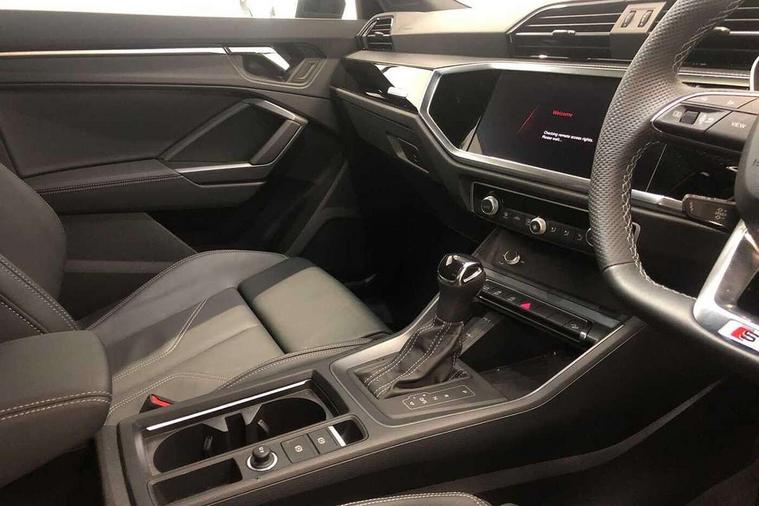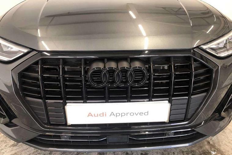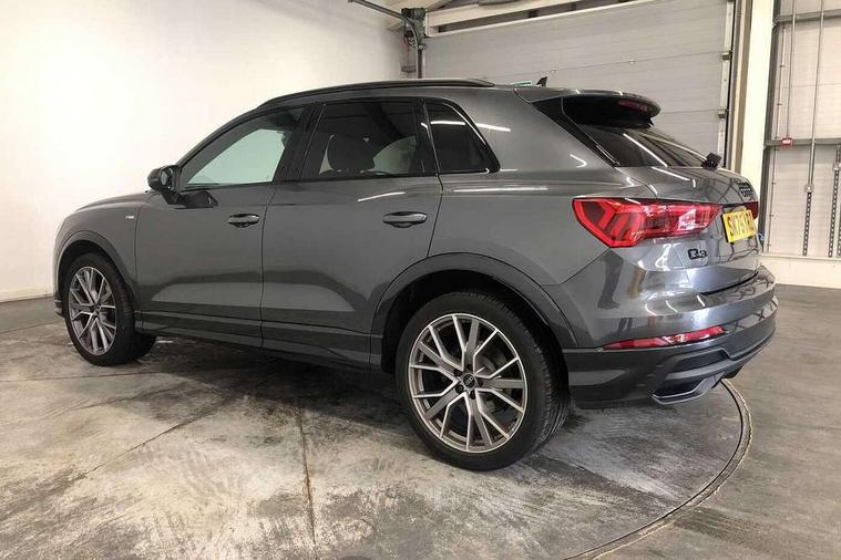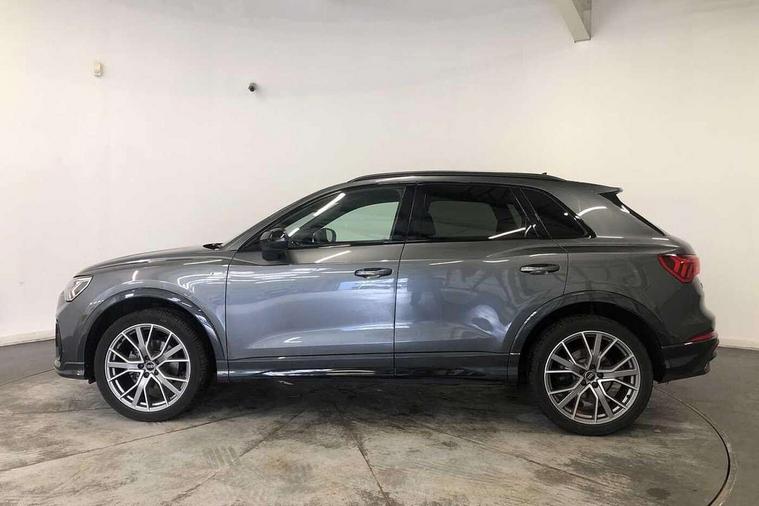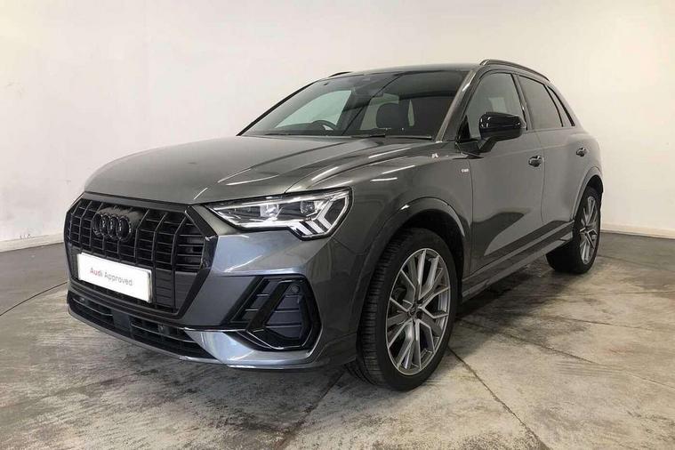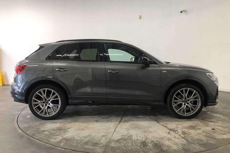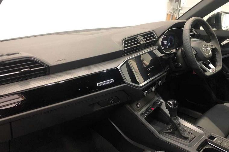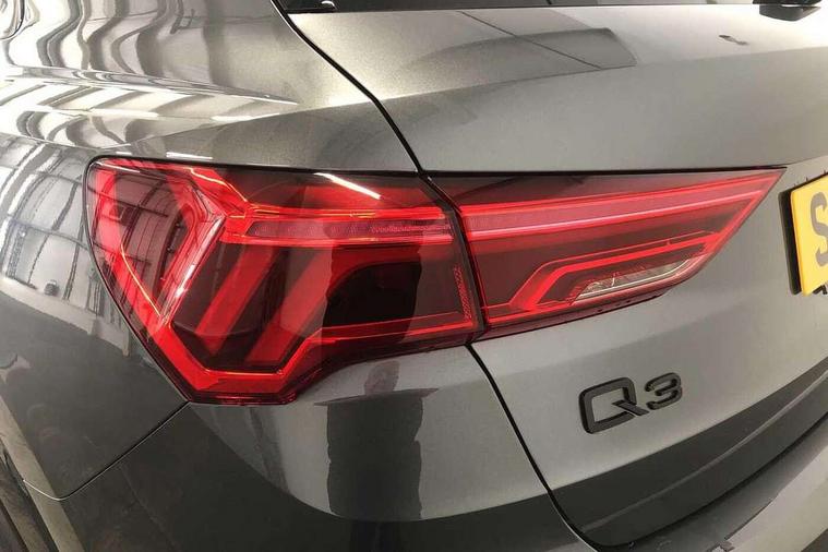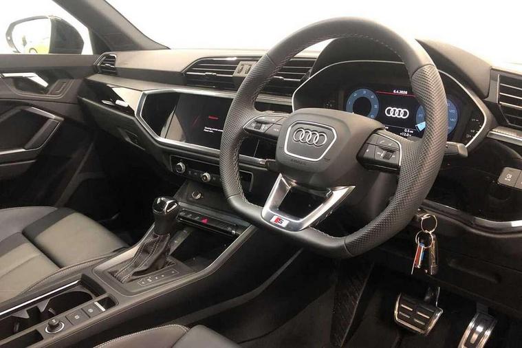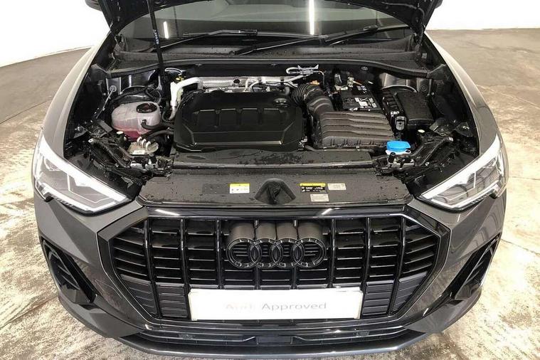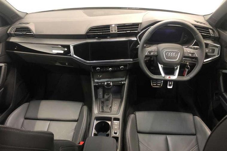 Amazon alexa Integration, Audi connect safety and service, Audi drive select, Audi lane departure warning, Audi Virtual Cockpit - 10.25" display, Bluetooth interface, Camera based traffic sign recognition, Distraction and Fatigue warning, Legal emergency call, MMI Navigation Plus with high resolution 10.1 inch touchscreen colour display, Power operated tailgate, Progressive steering, Service interval indicator, Smartphone interface includes wireless Apple carplay/Android Auto, Start stop system with recuperation, Voice control system with natural language interaction, Diesel particulate filter, Sports suspension, 2 USB-C ports with charge and data functions, 6 passive loudspeakers, DAB digital radio module, Acoustic windscreen, Anthracite black radiator grille, Audi Beam uses LEDs to project the Audi logo onto the ground as you exit your Q3, Auto dimming door mirrors, Auto dimming frameless rear view mirror, Black roof rails, Electrically folding, adjustable and heated door mirrors with integrated LED side indicators and kerb view function for passenger side, Front and rear electric windows, Front fog lights, Grille vertical bars in aluminium silver/Matt, High gloss black finish B and C pillars, LED Dynamic rear indicators, LED headlights with LED daytime running lights, LED rear lights, LED third brake light, Privacy glass dark tinted rear and rear-side windows (from B-pillar backwards), Rain and light sensors, Rear diffuser grille in grained matt black, Rear diffuser strip in matt anthracite black, Rear side wing doors, Rear wiper, S line bumpers in contrasting Manhattan grey, Variable front intermittent wipers, 12V socket in rear centre console, 3 seat bench in 2nd row, 40:20:40 folding with manual adjustment for 60:40 forwards/backwards position and backrest angle, Adjustable rear seat bench/backrest with centre armrest and cupholder, Black carpet mats, Black cloth headlining, Dual zone electronic climate control, Electric lumbar support, Front and rear black floor mats with contrast stitching in rock grey, Front and rear headrests, Front centre armrest, Height and reach adjustable steering wheel, Illuminated door sill trims with S logo, ISOFIX child seat mounting for front passenger with airbag deactivation and outer rear seat including top tether attachment point for outer rear seats, Luggage compartment sill protection in stainless steel, Manual front seats with height adjustment, Perforated leather gearknob, Single front passenger seat, Stainless steel pedals, Twin leather upholstery with front sport seats + S embossing, Black styling pack - Q3, Non smoking pack - Q3, 3x3 point rear seatbelts, 6 airbags - Driver, front passenger, curtain and side windows, Audi pre-sense front with pedestrain and cyclist recognition, Electrically operated child locks on rear doors, Electromechanical parking brake, Electronic stabilisation control including ABS, ASR and EDL, Front seatbelt reminder, Hill descent control, Hill hold assist, Pre sense basic, Seatbelt monitoring, Tyre pressure warning, Warning triangle and first aid kit, Anti theft wheel bolts, Immobiliser, Remote central locking, Thatcham approved category 1 anti theft alarm, Aluminium look interior elements, Detail dashboard around MMI touch colour display in glass look, black with surround in aluminium look, Leatherette door armrest, Piano black inlay,
