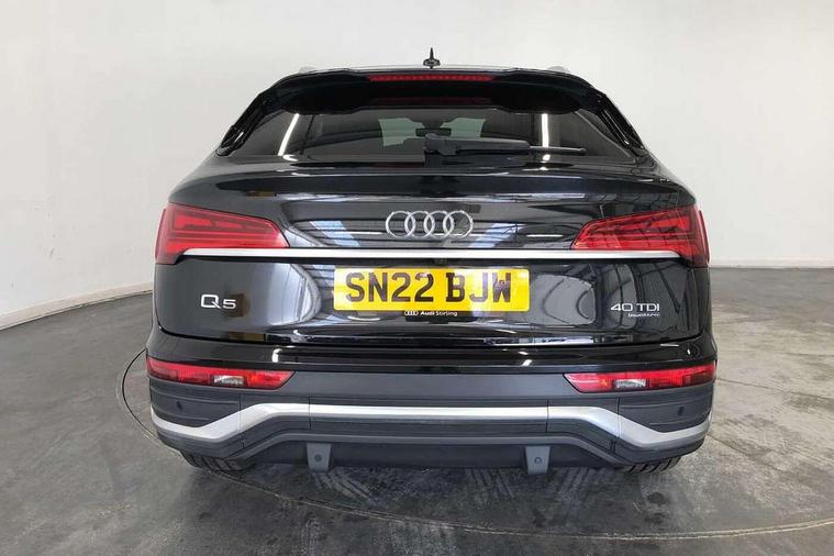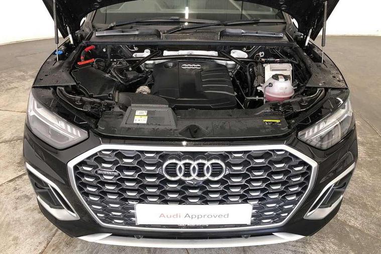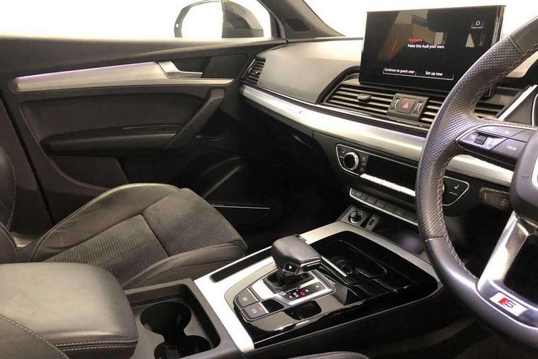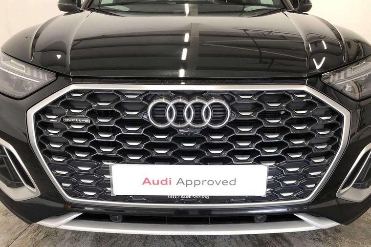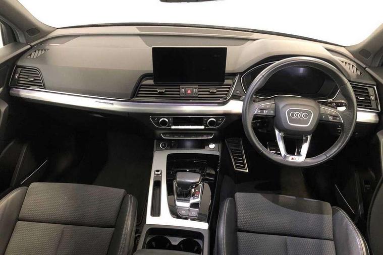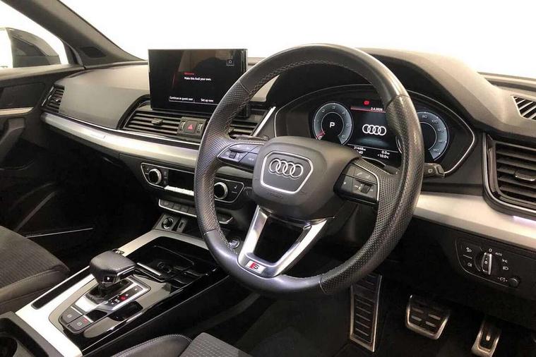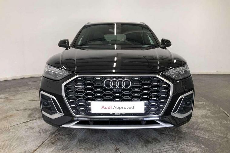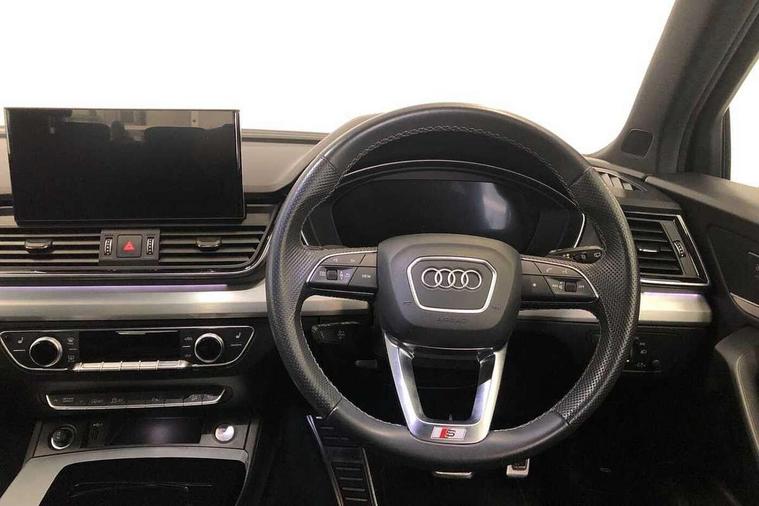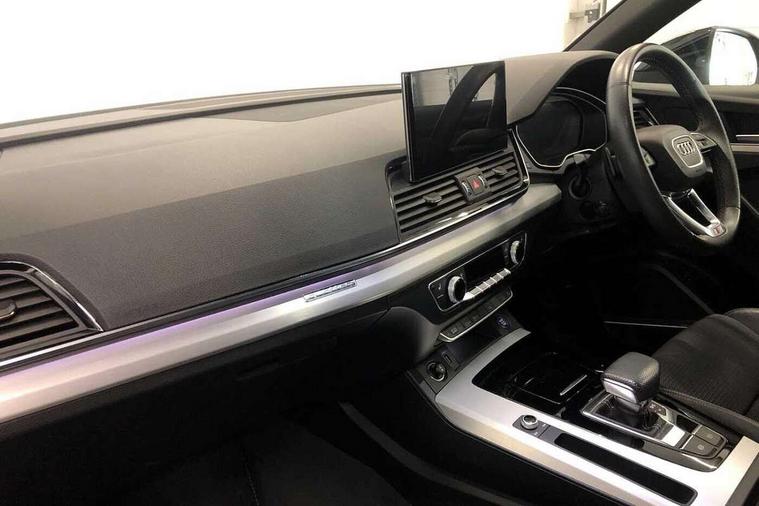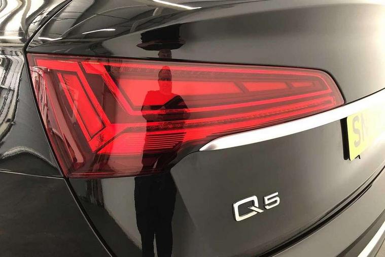 Audi connect safety and service (e-call), Audi connect with Amazon Alexa Integration, Audi drive select, Audi virtual cockpit plus with 12.3" screen and three different layout designs, Audi wireless smartphone interface, Automatic start-stop system with coasting functionality and efficiency programme, Bluetooth interface, Electro - mechanical power assisted steering, MMI navigation plus with 10.1" touch screen, Power tailgate, Reversing camera, Service interval indicator, Voice control system with Audi hotword activation "Hey Audi", Diesel particulate filter, Quattro on demand, S line sports suspension, 2 x USB charging port with aux input socket, DAB Digital radio, Acoustic windscreen, Aluminium roof rails, Audi matrix LED headlights with dynamic front and rear indicators, Auto dimming door mirrors, Auto dimming rear view mirror, Automatic headlights and windscreen wipers, Body colour door mirrors, Body colour rear diffuser with matt aluminium silver surrounds, Body colour underbody protection, Chrome plated exhaust trims, Daytime running lights, Door sills in Selenite silver, Electric adjustable/heated/folding door mirrors, Front air inlet surrounds in aluminium, Front and rear electric windows, Front radiator grille in honeycomb design, Headlight washers, High level LED brake light, Lower bumpers painted in contrast Manhattan grey, Rear chrome trim strip below lights, Rear privacy glass and rear side windows, Rear side wing doors, Rear wiper, Roof bars, S Line badges on the front wings, S Line front and rear bumpers, S Line rear spoiler, S Line side skirts, 3 rear headrests, 40:20:40 split folding 3 rear bench seat in 2nd row with rear centre armrest, Black cloth headlining, Comfort front centre armrest, Contrast stitching on seats, steering wheel and gear lever gaiter, Deluxe 3 zone electronic climate control, Front head restraints, Front/rear floor mats, Gear lever in black leather, Heated front seats, Height/reach adjustable steering column, Illuminated door sill trims with S logo, ISOFIX child seat mounting and top tether, Manual seat adjustment with 4-way electric lumbar support, Removable luggage compartment floor, Single front passenger seat, Stainless steel pedals, Sunvisors with vanity mirrors, Trunk roller cover, High gloss pack - Q5, LED interior light pack - Q5, 3 point seatbelts on all seats, 6 airbags - Driver, front passenger, curtain and side airbags, Electrically operated child locks on rear doors, Electromechanical parking brake, Electronic stabilisation control including ABS, ASR and EDL, Front passenger airbag deactivation, Hill descent control, Hill hold assist, Multi collision brake assist, Pop-up bonnet for pedestrian protection, Pre sense city, Seat belt force limiter, Seatbelt monitoring, Tyre pressure warning, Warning triangle and first aid kit, Anti theft alarm, Anti-theft wheel bolts, Keyless Go access/ignition system, Remote central locking, Matt brushed aluminium inlays,