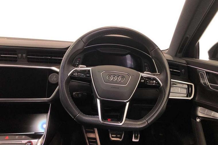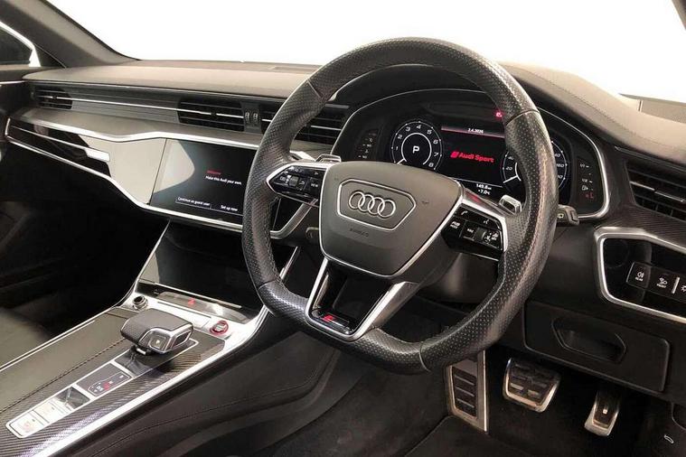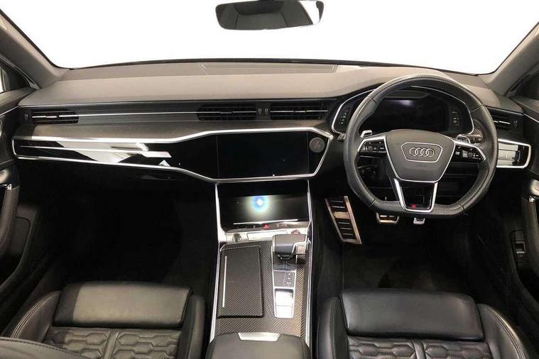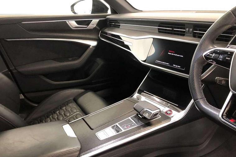 360 degree parking camera, Audi connect safety and service (e-call), Audi drive select, Audi phone box with wireless charging, Audi smartphone interface, Audi Virtual Cockpit with RS specific design and 12.3" display, Automatic start/stop system, Bluetooth interface, Dynamic all wheel steering, Head up Display, Lane departure warning system, MMI navigation with MMI touch + twin touch screens 10.1" and 8.6" with haptic and acoustic feedback, Operating buttons in black, glass look with haptic feedback including extended aluminium look, Power door closure, Power latching doors, Power operated tailgate, Service interval indicator, Voice control system, 73 litre fuel tank, Increased top speed to 174mph, Quattro sports differential, RS Sports suspension plus with dynamic ride control, Audi music interface, Audi music interface at rear, Bang & Olufsen 3D Premium Sound System, DAB Digital radio, Adaptive windscreen wipers with integrated washer jets, Black mirror caps, Body colour rear roof spoiler, Electric front/rear windows, Electric Panoramic opening glass sunroof, Electrically folding auto dimming/adjustable/heated door mirrors with LED side indicators and kerb view function for passenger side, Frameless auto dimming interior rear view mirror, HD Matrix LED headlights with Audi laser light with dynamic light design and dynamic turn signal, Headlight washers, Heat insulating glass in side and rear windows, Illuminated door sill trims with RS lettering, LED rear combination lamps with dynamic light design and dynamic turn signal, Privacy glass with rear/side windows and acoustic glazing side windows, Radiator grille in honeycomb structure, large front air inlets and rear diffuser in gloss black, Rain and light sensors, Rear sports exhaust system with gloss black oval tailpipe, Rear wiper, RS front bumper with air inlets on both side, Towbar preparation, Wheel arch extensions, 3 spoke RS flat bottomed leather multifunction steering wheel with shift paddles, heated funtion, contrast stitching, RS mode button and RS emblem, 4 way electric lumbar support for driver and front passenger, 4 zone deluxe automatic climate control, Aluminiium gear shift paddles, Audi Sport logo projection (Audi Beam) in front and rear, Black cloth headlining, Electric steering wheel adjustment, Electrically adjustable front seats with driver memory, Front and rear headrests, Front centre armrest, Front seat ventilation, Front/rear floor mats, Heated front and rear seats, ISOFIX child seat mounting and Top Tether with front passenger airbag deactivation, RS Front sports seats, Stainless steel pedals and foot rest, Valcona leather upholstery with perforated honeycomb and RS lettering, Air quality pack - RS6, City assist pack - RS6, Extended LED interior multi coloured lighting pack - RS6, Gloss black styling pack - RS6, Parking assistance plus pack - RS6, Storage pack - RS6, Tour pack - RS6, 2 x 3-point rear seat belts, Airbags - Front side, front and rear including head, Audi pre-sense front, Direct tyre pressure monitoring system, EBD - Electronic brakeforce distribution, Electromechanical parking brake, Electronic Stability Control (ESC) including ABS, ASR and EDL, Extended pedestrian protection measures, Warning triangle and first aid kit, Advanced key, Anti theft alarm with tow away protection, Anti-theft wheel bolts and wheel loosening detection, Immobiliser, Keyless Go, Remote central locking, 22" Titanium matt gloss turned finish alloy wheels, Tyre repair kit,