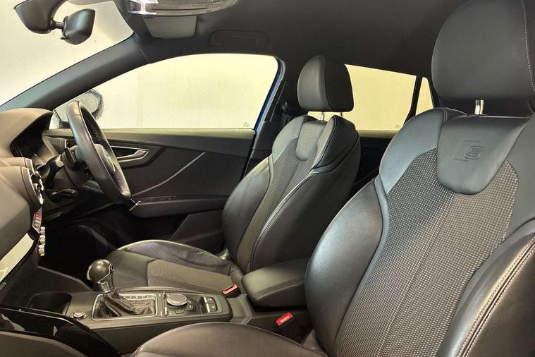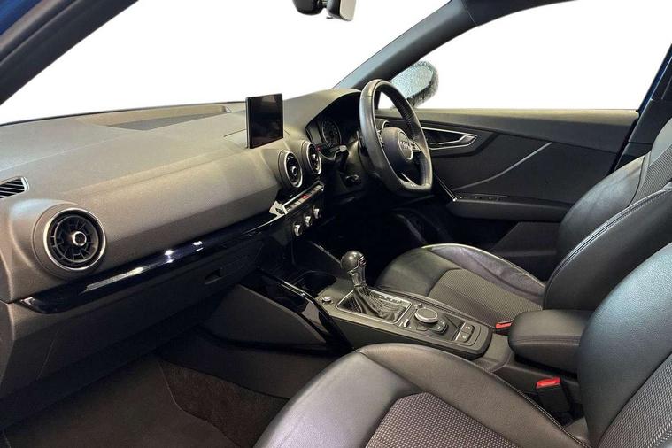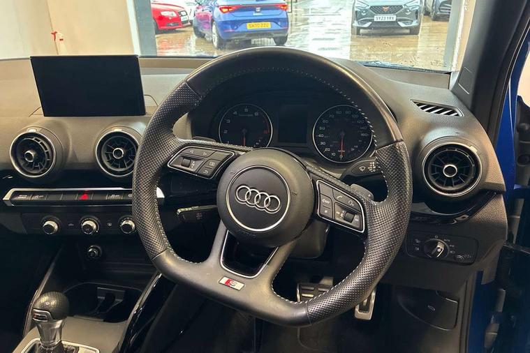 Audi drive select, Audi smartphone interface, Automatic start/stop system with recuperation, Bluetooth interface includes bluetooth audio streaming, Cruise control, MMI - Multi Media Interface control system, MMI SD card integrated nav with 3D map display, dynamic route guidance with TMC, MMI search, natural voice recognition and myAudi special destinations, Power operated tailgate, Progressive steering, Service interval indicator, Dynamic suspension, 2 x SDXC card reader, Audi music interface - apple iPod, apple iPhone, USB storage media, compatible MP3 players, 2 x USB charging points and 1 x Aux-in, CD Drive, DAB digital radio and AM/FM radio, MMI radio plus with 7" colour MMI screen and MMI controller, Black window trims, Bumper in full body colour paint finish, Chrome exhaust tailpipe, Electrically adjustable and heated door mirrors with integrated LED side indicators, Front and rear electric windows, Front underbody guard and rear diffuser trim in selenite silver, Front windscreen with grey tinted sunband, Headlight washers, Interior mirror, LED headlights with LED rear lights + dynamic rear indicators, LED indicator lights, Manual folding door mirrors, Privacy glass - dark tinted rear and rear side windows from B-pillar backwards, Rain and light sensors, Rear wiper, S Line body styling - front and rear bumpers, side skirts, radiator grille, rear diffuser insert and front air intakes, 3 spoke flat bottomed high multi-function leather sport steering wheel with gearshift paddles, 60/40 split folding rear seat bench, Black cloth headlining, Floor mats with contrast stitching, Front centre armrest, Front headrests, Front sport seats with S embossed logo, Height/reach adjust steering wheel, Illuminated door sill trims with S logo, ISOFIX child seat mounting for front passenger with airbag deactivation and outer rear seat including top tether attachment point for outer rear seats, Manual seat adjustment including seat height adjustment for front seats, Stainless steel pedals, Storage compartments - Glovebox, cupholder compartment in centre console, storage compartment in rear centre console, front and rear door pockets, Three rear headrests, Black styling pack - Q2, LED interior lighting pack - Q2, Non smoking pack - Q2, 3x3 point rear seatbelts, 6 airbags - Front, curtain and front side airbags, Electromechanical parking brake, Electronic stabilisation control including ABS, ASR and EDL, Extended and proactive pedestrian protection, Hill hold assist, Multi collision brake assist, Pre-sense front with pedestrian recognition, Seatbelt monitoring, Tyre pressure warning light, Warning triangle and first aid kit, Anti theft alarm, Anti theft wheel bolts, Central locking system with remote control key, Electronically operated child locks, Aluminium interior element, Black inlays - decorative trims in black for centre console and front and rear door pull handles,