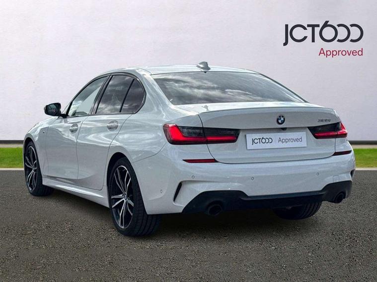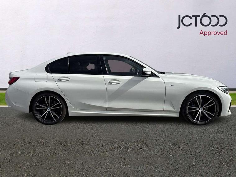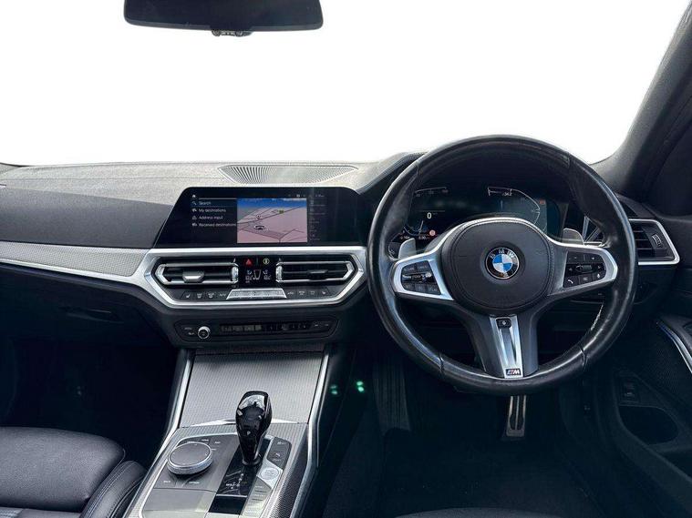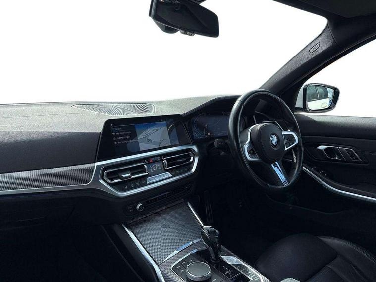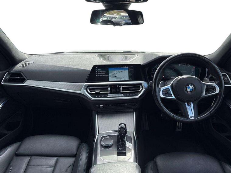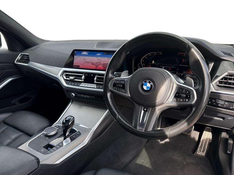 Active guard plus, Attentiveness assist, Auto start-stop, BMW iDrive controller on centre console, BMW Live Cockpit Professional sat nav system including 10.25" high resolution display and Intelligent Voice Assistant, BMW Online services, BMW Teleservices, Brake pad wear indicator in front and rear, Check Control warning system for monitoring of lights and door/luggage compartment open warning, Condition based service, Front/rear park distance control, Instrument cluster with speedometer with mph readout, tachometer, fuel gauge and oil temperature gauge, Oil sensor for level and grade, On board computer - average speed+fuel consumption, service interval, clock/date, odometer/trip meter, outside temperature display and ice warning, Optimum shift indicator, Pesonal profile, Variable sport steering, Battery cut-out switch, Drive performance control with ECO PRO comfort + sport mode, Electronic differential lock, Larger capacity fuel tank, Sport automatic transmission with steering-wheel mounted gearshift paddles and launch control, DAB tuner, Acoustic glazing, Active airstream chrome frame kidney grille with 8 high gloss black vertical slats, Automatic headlight beam throw control with load dependent regulating reaction, dynamic compensation of braking dive and acceleration squat, Black roof mouldings, Body colour - fuel filler flap, front and rear bumpers, door handles and mirror caps with integrated turn indicator + bottom segment in matt black, Dynamic brake lights, Extended LED headlights, Exterior mirrors - electrically folding with anti-dazzle, Front and rear bumper system with replaceable deformation elements, Front and rear electric windows with open and close fingertip control, anti trap facility and comfort closing, Front black door sill finishers with BMW designation, Green tinted heat protection glazing, Interior rear view electrochromatic mirror with automatic anti dazzle function, LED front fog lights, Left and right split exhaust tailpipes, Lightweight engineering, M aerodynamic body styling, M designation on left and right front side panels, M designation side badges, Matt black exterior B pillar, Model designation on right side of tailgate, Rain sensor with automatic headlight activation, Shark fin antenna, Two part LED tailights in L-shape with components in smoked glass, brake light, LED turn indicator and rear fog light, Visible VIN plate, Welcome lights in interior and door handle area, Windscreen wipers with integrated washing jets, 12V power socket in front storage compartment, 2 front cupholder in centre console with clamping elements and matt black inlay, 3 rear seats with non folding headrests with 3 point seat belts, 3 spoke M leather steering wheel, 4 pieces lashing eyelets in luggage compartment, 40:20:40 split folding rear bench seat, Ambient lighting, Anthracite headlining, Armrest integrated in front and rear door trim + front centre console armrest, Centred top Luggage compartment lights, Four grab handles integrated in roof lining, Front and rear door pockets, Front and rear velour floor mats, Front sport seats, Heated driver and front passenger seats, Height adjustable mechanically and infinitely variable steering column, Illuminated glove compartment with separate small compartment, Interior lighting - front centre over interior mirror with soft light, rear centre and front and rear footwell lighting, Rear centre armrest with 2 cupholders, Rear centre console with storage compartment and ventilation grille, Steering column length adjustment lever, Sunvisors with vanity mirrors and ticket pocket, Three zone automatic air conditioning, Through loading system with 40/20/40 split folding rear seat, Toolkit located in luggage compartment, Vernasca leather upholstery, Connected pack professional - 3 Series Saloon/Touring, M Aerodynamics pack - 3 Series Saloon/Touring, 2 tone horn, ABS, Automatic Stability Control (ASC), BMW emergency call, Brake assist function, Brake drying, Brake energy regeneration, Braking pre-tensioning, Child proof locking system in rear door, Child seat ISOFIX attachment rear outer seats, Cornering brake control (CBC), Crash sensor activating central locking release, hazard warning lights, fuel cut off, interior lighting + activation of safety battery terminal clamp, Driver and front passenger front and side airbags with passenger deactivation and ITS front and rear head airbags, Dynamic brake control, Dynamic Traction Control - DTC, Electromechanical parking brake with automatic drive away release and auto hold function, Hill start assist, Seat belt security check for driver and front passenger, Side impact protection, Three 3 point seat belts on all seats including front belt stopper, pyrotechnic belt tensioners and belt force limiters, Tyre pressure monitoring with three level warning strategy, Variable torque distribution, Ventilated front and rear disc brakes, Warning triangle and first aid kit, Alarm system (Thatcham 1) with remote control and electronic engine immobiliser, Central locking switch for all doors, fuel filler cap and luggage compartment, Remote control with integrated key one button open/close vehicle and windows, sole opening of the luggage compartment lid and panic mode, Selectable automatic lock when driving away, Start/stop button with Comfort Go keyless engine start and auto Start/stop deactivation button, Vehicle key with M specific designation, Reduced rolling resistance tyres,