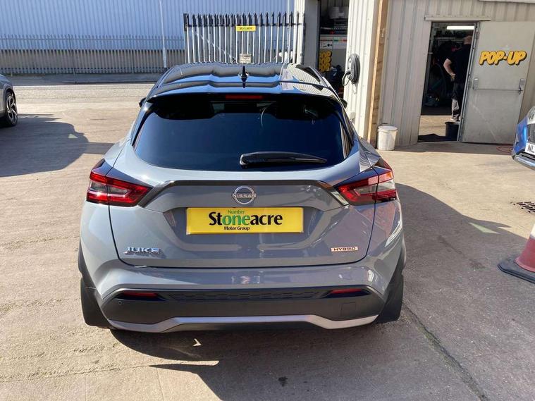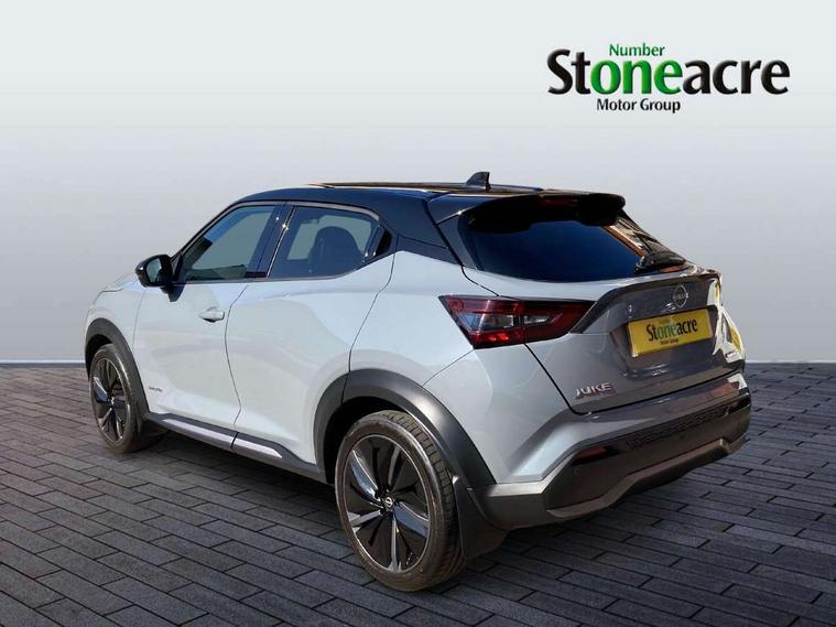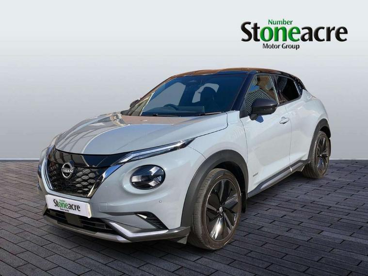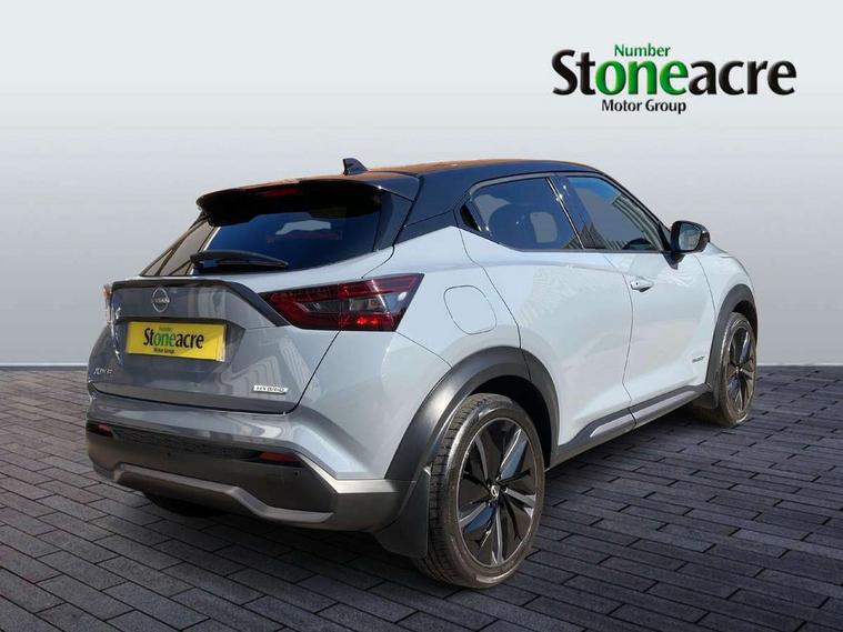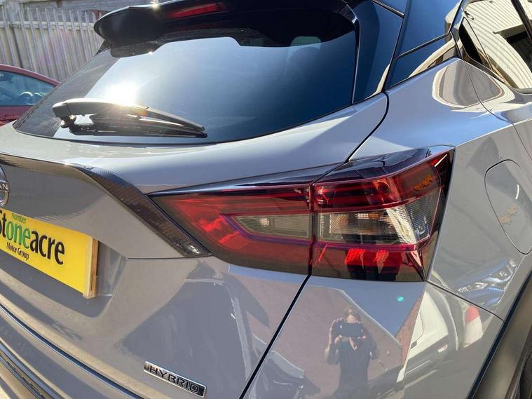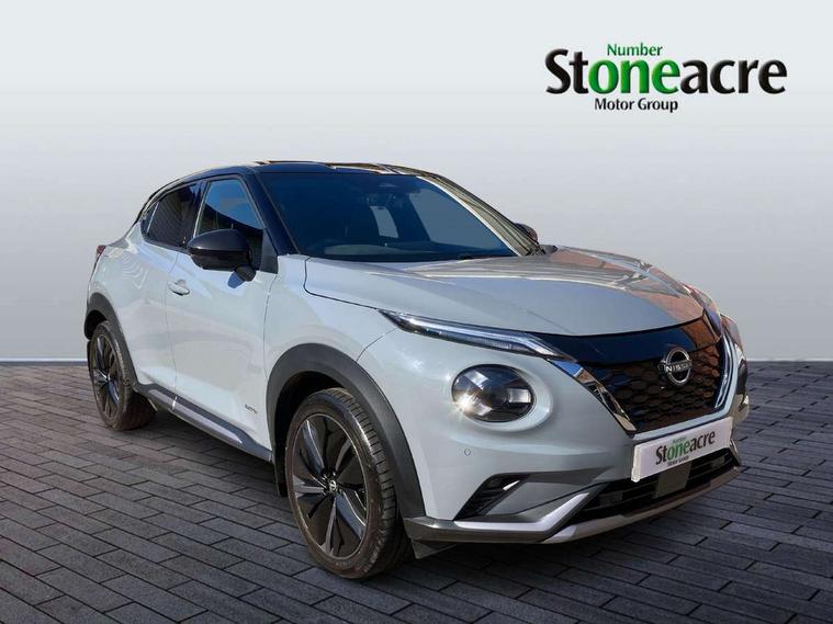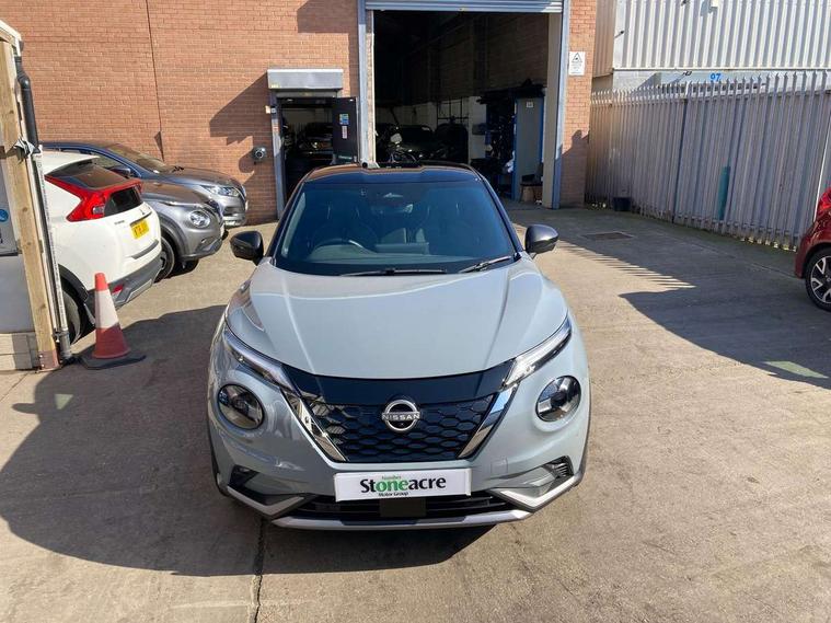 12.3" full colour TFT screen combimeter, Drive modes select (Eco, normal and sport), e-Pedal step, Emergency and breakdown call, EV mode selector, Front parking sensor, Intelligent driver alert system, Intelligent lane intervention, Lane departure warning system, Nissan connect 12.3" touch screen entertainment system, Nissan connect nav with TomTom traffic, Nissan connect services and Wifi connection, Outside temperature sensor, Power Steering, Rear parking sensor, Stop/start button, Traffic sign recognition, Trip computer, Voice recognition, Wireless Apple CarPlay and Google Android auto, Wireless Smartphone charger, 10 Bose speakers 6 speakers and 2 headrest speakers for driver/passenger seats, 2 X Rear console USB port, Bluetooth system, USB, Aux-in and 12V socket, Bose personal sound stage control, DAB Digital radio, Auto dimming frameless rear view mirror, Automatic hazard signal with emergency stop signal, Body colour door handles, Electrically adjustable door mirrors with integrated indicators, Follow me home headlights, Front and rear electric window with one touch driver window, Heated and auto folding door mirrors, High beam assist, LED 3rd brake light, LED daytime running lights, LED front fog lights, LED headlamps, LED rear fog lamp, LED rear lamps, One touch passenger window, Rain sensor windscreen wipers, Rear privacy glass, Rear side wing doors, Rear wiper, Roof spoiler, Shark fin roof antenna in solid Black, Three blink turn signal, 3 height adjustable rear headrests, 3 seat bench in 2nd row, 60/40 split folding rear seat, Automatic climate control, Card holder on driver sunvisor, Door ambient lighting, Driver seat back pocket, Driver side rear coat hanger, Driver/passenger sunvisors and vanity mirrors, Front and rear cabin lights, Front armrest, Front door pockets with bottle holders, Front head restraints, Front/rear passenger grab handles, Gear console ambient circle lighting, Height adjustable driver's seat, Internal chrome door handles, Leather gearshift knob, Leather steering wheel, Luggage space lighting, Monoform sporty seats, Multifunction steering wheel, Passenger seat back pocket, Rear door bottle holders, Single front passenger seat, Synthetic leather kneepad, Telescopic steering wheel adjustment, Two cupholders in front centre console, Two rear isofix child seat anchorage points with top tether, Welcome light and console tray ambient lighting, Heat pack with height adjustable passenger seats - Juke, Interior personalisation pack - Juke, ProPilot pack - Juke Auto, Satin grey exterior personalisation pack - Juke, ABS with EBD and brake assist, Active ride control, Active Trace Control, Driver and passenger airbags, Driver and passenger side airbags, Electric handbrake with auto hold function, Electronic Stability Programme (ESP), Front and rear curtain airbags, Height adjustable seatbelts, Hill start assist, Intelligent emergency braking with pedestrian and cyclist recognition, Rear door child safety locks, Seatbelt reminder for driver/front passenger and rear seats, Three 3 point rear seatbelts, Traction control, Tyre pressure monitoring system, VDC Dynamic Vehicle Control, Alarm, Immobiliser, Intelligent key and start push button with walk away lock and approach unlock functions, Remote central locking, 19" Aero alloy wheels,