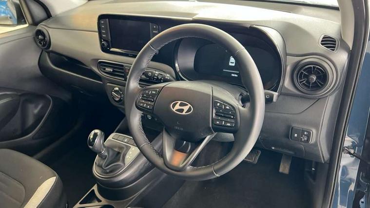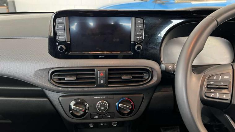 8" Touchscreen satellite navigation including mapcare and LIVE services, Apple car play/Android Auto, Bluelink mobile remote connectivity, Bluetooth connectivity with voice recognition, Cruise control, Driver attention alert system, eCall emergency call system, Forward Collision-Avoidance Assist (FCA) - Pedestrian/Cyclist, Full-width 4.2" LCD instrument cluster, Intelligent speed limit assist, Lane departure warning system with lane keep assist - LKAS, Lane follow assist, PAS, Rear parking sensors, Rear view camera with guidelines, Roadside assistance, Start/Stop function, Tailgate, Trip computer, 2 front/2 rear speakers, Front and rear USB-C ports, Front USB connection, Leading vehicle alert (LVA), Steering wheel audio, phone and cruise controls, 1 speed non intermittent rear windscreen wiper, Black finish on B pillars, Body colour door handles, Body coloured bumpers, Body coloured door mirrors, Electric front windows, Electric rear windows, Electrically adjustable and heated door mirrors, Flat metal emblem, Front grille in matte black, Front intermittent wipers, Halogen headlights, Headlights inner with Black Blade design, Heated rear window, High beam assist, Indicator light on door mirrors, LED daytime running lights, Rear roof spoiler with integrated LED brake light, Rear side wing doors, 12v power outlet - front, 3 seat bench in 2nd row, 60/40 split folding flat to floor rear seats, Auto light control, Bottle holders in front/rear doors + front centre console, Cabin and luggage compartment interior lighting, Cloth upholstery, Driver + passenger vanity mirrors, Driver's seat height adjustment, Driver/passenger sunvisors with ticket holders, Floor mats, Front door pockets, Front Head Restraints - Vertical and Horizontal Adjustment, Glove compartment, Height adjustable steering column, Isofix child seat preparation, Leather wrapped steering wheel and gear knob, Manual air conditioning, Rear door pockets, Single front passenger seat, Vertical adjustment rear head restraints, 3x3 point rear seatbelts, Airbags - front, front side and curtain airbags, Anti-lock brake system (ABS), Autonomous emergency braking (AEB) with forward collision warning system, Brake assist function, Childproof rear door locks, Electronic stability control, Front and rear seatbelt reminder, Front seatbelt pretensioners, Hill start assist control (HAC), Passenger airbag deactivate switch, Traction control, Tyre pressure monitoring system, Immobiliser, Perimeter alarm, Rear occupant alert, Remote central locking, Second remote key, Speed sensitive auto door locking, 15" Alloy wheels, Temporary mobility kit (TMK),