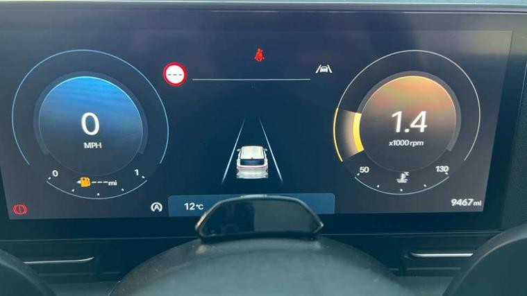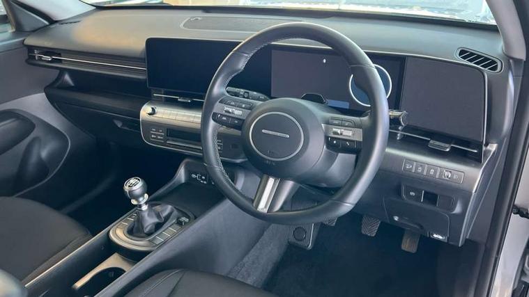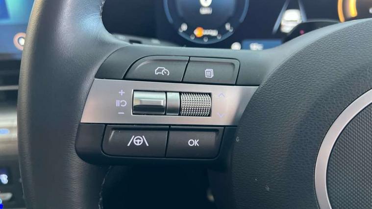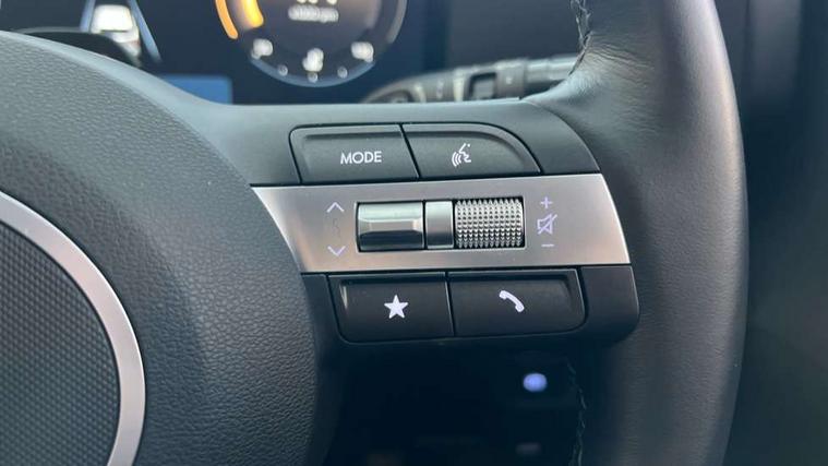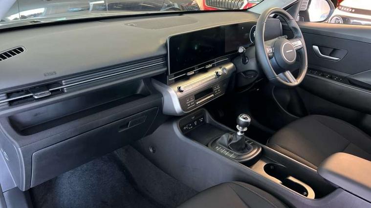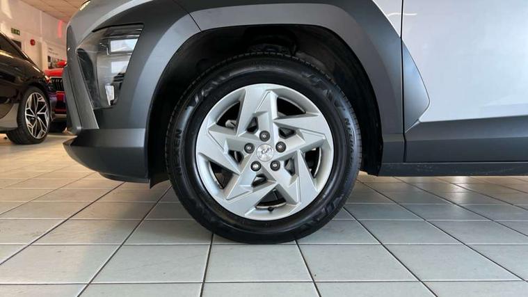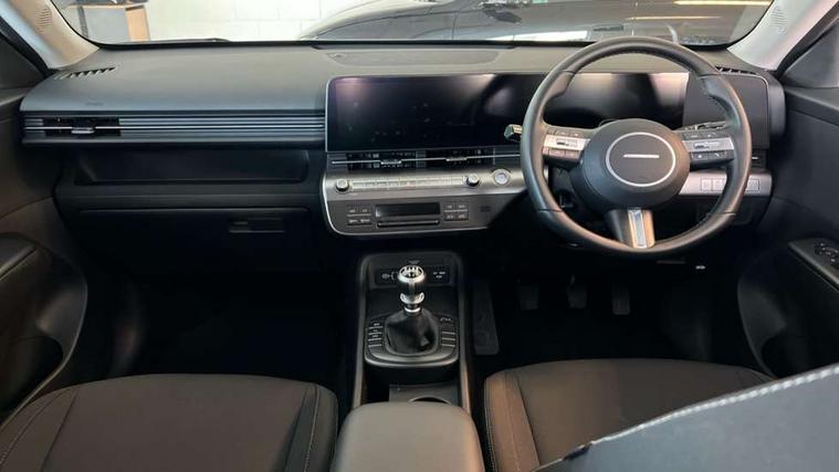 12.25" digital instrument cluster, 12.3" touchscreen centre console display satellite navigation with bluelink, live services and mapcare, Bluetooth connectivity with voice recognition, Cruise control, Driver status monitor (DSM), Driver supervision instrument cluster with 12.3" LCD display, eCall emergency call system, Feature on demand - Enabled, Forward collision avoidance assist (FCA 1.5) - Car, pededstrian, cycle and junction turning, Front parking sensor, Intelligent speed limit assist, Lane follow assist, Lane keep assist, Leading vehicle departure alert (LVDA), Parking system with rear camera and guidance system, PAS, Rear parking sensor, Rear view camera with dynamic guidelines, Roadside assistance, Wireless Smartphone Integration includes Apple CarPlay and Android auto, 2 front USB C and 2 rear USB C charging points, DAB Digital radio, Speakers - Front, rear and tweeters, Steering wheel audio, phone and cruise controls, Auto dimming rear view mirror, Automatic headlights with dusk sensor, Automatic windscreen wipers with rain sensor, Black painted wheel arch inserts, Body colour exterior door handles, Body coloured door mirrors, Door mirror LED indicator lights, Electric front windows with anti-trap mechanism and one touch control, Electric rear windows, Electrically adjustable and heated door mirrors, Full LED MFR headlights, LED daytime running lights, LED taillights, LED upper and lower rear lights, Power folding door mirrors, Rear roof spoiler with integrated LED brake light, Rear side wing doors, Rear skid plate - silver, Rear wiper, Roof rails, Tinted glass in front and rear doors, Windscreen auto defog function, 12V power outlet in front console, 2 zone climate control, 3 seat bench in 2nd row, Adjustable head restraints, Cloth upholstery, Driver and passenger front seat pockets, Driver's seat lumbar support, Driver/passenger manual seat height adjustment, Driver/passenger sunvisors and illuminated vanity mirrors, Floor mats, Height/reach adjustable steering column, Leather steering wheel, Leather wrapped steering wheel and gear knob, LED centre interior light, LED front interior light, Luggage compartment LED lighting, Luggage shelf, Metal paint effect interior door handles, Rear centre armrest with cupholders, Single front passenger seat, Vertical adjustment rear head restraints, Trailer wiring package - Kona, Airbag - front, front side, curtain and centre front airbag, Anti-lock brake system (ABS), Childproof rear door locks, Downhill brake control, Electric parking brake, Electronic stability control, Fixed 3 point for second row centre passenger seatbelt, Hill start assist control (HAC), Rear seat alert, Tyre pressure monitoring system, Alarm/immobiliser, Rear occupant alert, Remote central locking, Smart key with keyless entry and start/stop button, Five year annual vehicle health checks, 17" Alloy wheels, Temporary mobility kit (TMK),