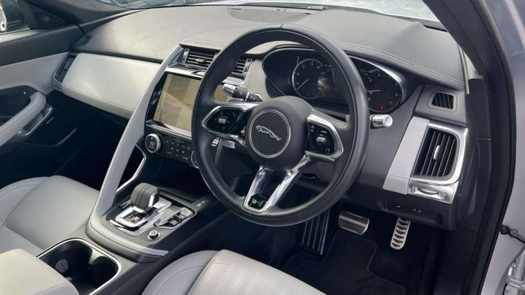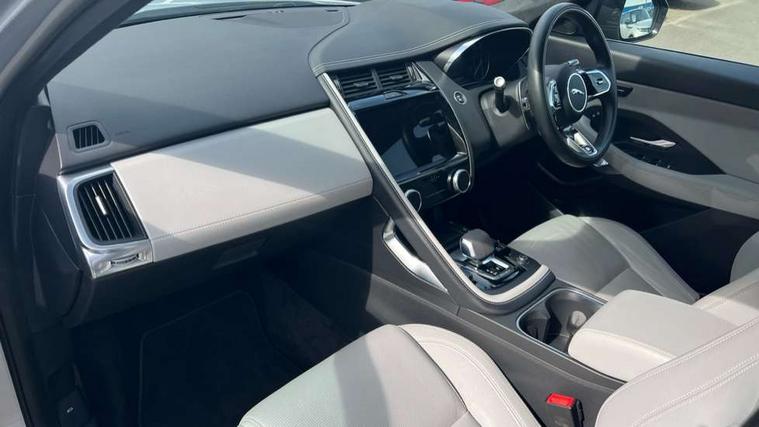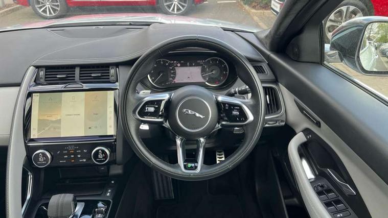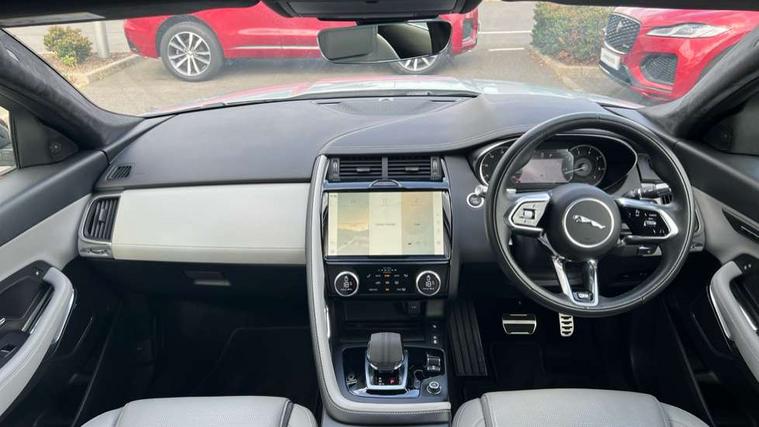 11.4" touchscreen with central ICP, 12.3" full digital instrument panel, Android Auto, Apple car play, Blind spot assist, Driver condition monitor, Eco driving style assistant, Electric power assisted steering, Emergency services call system, Front and rear parking aid, InControl remote, Jaguar drive control with adaptive surface response, Jaguar Toggle sport shift selector, Lane keep assist, Outside temperature gauge, Pivi pro connected infotainment system with smart settings and navigation pro, Push button start, Rear traffic monitor, Speed proportional steering, Traffic sign recognition with adaptive speed limiter, Trip computer, Voice control system, Configurable dynamics, Efficient Driveline, Large fuel tank, Passive suspension, AM/FM DVD MP3 radio, Bluetooth connectivity including audio streaming, DAB digital audio broadcast, Dynamic volume control, 3 flash lane change indicators, 3rd brake light, Approach Illumination, Auto high beam assist, Automatic headlights, Body coloured side sills, Centre high-mounted stop light, Chrome side window surrounds, Dark satin grille tips, Electric front/rear windows with one touch/auto up/down, Electric heated/power fold memory door mirrors with approach lights and auto dimming driver side, Embossed leaper for grained and windsor leather, Heated washer jets, Heated windscreen, Jaguar script and leaper, LED tail lights, Metal load space scuff plates, No badges, R Dynamic badge, R Dynamic body colour bumpers, Rain sensor windscreen wipers, Rear fog lights, Rear side wing doors, Rear wash wiper, Twin tailpipes with finishers, 3 rear head restraints, 3 seat bench in 2nd row, 40:20:40 rear seat fold, Bright metal pedals, Carpet mats, Centre console with armrest, Elasticated loadspace side-strap, Enhanced ambient lighting, Hooks loadspace, ISOFIX on outer rear seats, Loadspace cover, Loadspace light, Loadspace storage net, Luggage tie-downs in loadspace, Multifunction steering wheel, Overhead lighting console, Passive front head restraints, Power sockets, R-Dynamic branded leather steering wheel, Rear air vents, Rear bench seats, Satin chrome gearshift paddles, Single front passenger seat, Sunvisors with illuminated vanity mirrors, Twin front cupholders, Two zone climate control, 3x3 point rear seatbelts, ABS, All surface progress control (ASPC), Child locks on rear doors, Customer configurable autolock, DSC - Dynamic Stability Control, Electronic brake force distribution, Electronic parking brake, Emergency brake assist, Emergency braking, Front airbags with passenger seat occupant detector, Front and rear curtain airbags, Front and rear seatbelt reminder, Front side airbags, Hill start assist, Low friction launch, Power child locks, Torque vectoring brake, Tyre pressure monitoring system, Intrusion sensor and alarm, Locking wheel nuts,