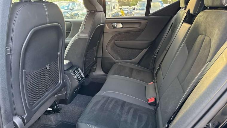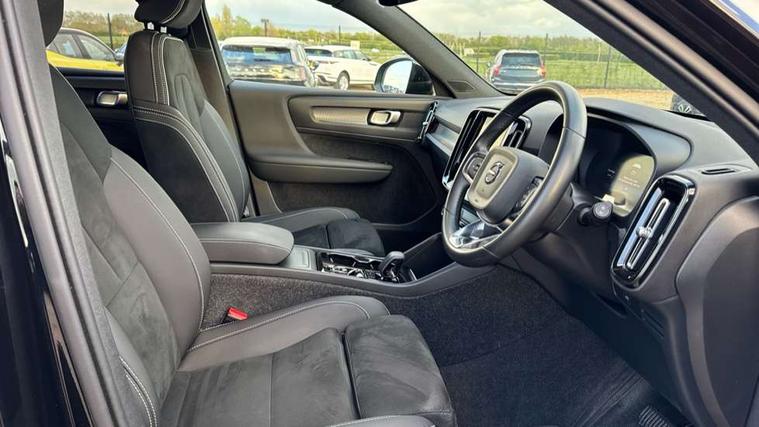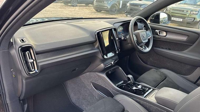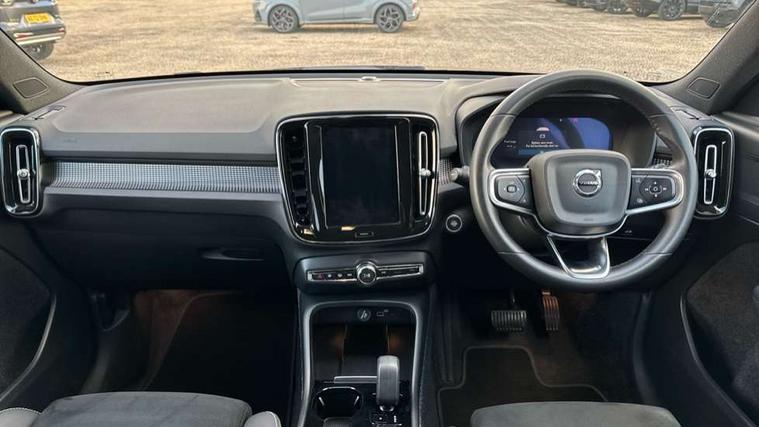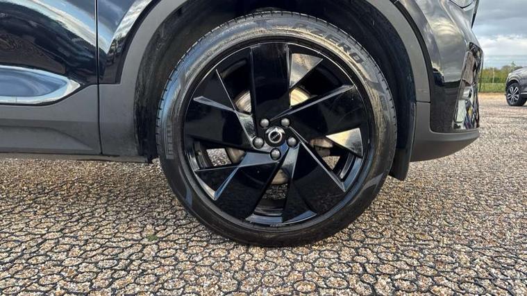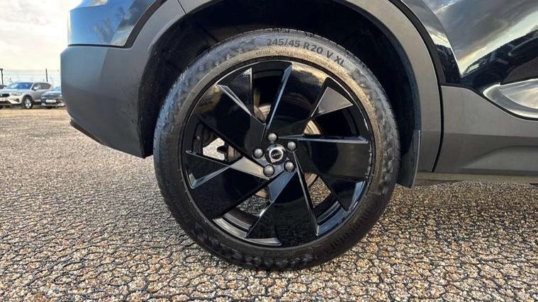 12.3" Progressive Driver Display, 9" centre console portrait touch screen, Adjustable steering wheel force, Apple carplay (wired), Bluetooth handsfree system, Cruise control, Driver alert control, E-call, Front park assist, Google automotive services - Enabled entertainment apps, navigation with google maps, voice recognition with google assistant, Hands free power tailgate, Intelligent speed assistance, Lane keeping aid, Oncoming Lane Mitigation, Rear park assist, Rear park assist camera, Speed sensitive steering, Volvo cars services with app - Driving journal, engine remote start, remote door locking/unlocking and vehicle dashboard, Wireless/Inductive Mobile Phone Charging, Automatic transmission with start/stop and manual change functions, Dynamic chassis, DAB Digital radio, Steering wheel mounted remote controls, Adaptive brake lights with high level LED brake lights, Auto dimming interior mirror, Automatic headlamp levelling, Automatic LED Headlights + Active high beam incorporating daytime running lights, Colour coordinated auto folding and heated power door mirrors, Dark tinted windows - rear side windows and rear screen, Front aluminium tread plates, Front and rear electric windows, High gloss black front and rear skid plate, High gloss black front bumper deco, High gloss black front grille strikethrough and ironmark, High gloss black rear model, engine and volvo logo badges, High gloss black window trim, Home safe and approach lighting, Integrated roof rails in high gloss black, LED front fog lights, Puddle lights, Rain sensor with automatic windscreen wiper activation, Rear side wing doors, Rear wiper, Roof antenna, Roof spoiler, Special metallic paint, Visible VIN plate, 12V socket in front tunnel console and luggage compartment, 2-Zone electronic climate control with CleanZone air quality system and pollen filter, 3 seat bench in 2nd row, 3 Spoke tailored steering wheel with chrome trim, 60/40 versatile split folding rear seat, Centre console cupholders and storage, Charcoal headlining, Connect textile/microtech upholstery, Flexible load floor and grocery bag holder, Floor mats, Front cabin courtesy lights, Front door pocket, front cupholder, ambient front door, rear reading, rear courtesy, instrument panel and tailgate lighting, Front footwell illumination, Front headrests, Front reading lights, Front seat cushion extensions, Front side step illumination (under door), Glovebox bag hook, Heated front seats, Height adjustable passenger seat, Height/reach adjustable steering column, High gloss centre tunnel deco, Illuminated glovebox, Illuminated luggage compartment, Illuminated vanity mirrors + ticket holder, Integrated waste bin, Isofix attachments on outer rear seats, Load cover, Load protection net, Multi directional lumbar support for driver and passenger seat, Power driver seat with memory + exterior mirrors memory, Rear armrest with cupholders, Rear headrests, Single front passenger seat, Underfloor cargo storage, Climate pack without heated front seats - XC40, 3x3 point rear seatbelts, City safety with steering support with Pedestrian + cyclist + front collision warning with full auto brake and rear auto brake, Driver and passenger airbags, Drivers knee airbag, Electronic parking brake with auto hold, First aid kit, Front and outer rear seatbelt reminder and pretensioners, Front seats SIPS airbags, Hill descent control, Hill start assist, Inflatable curtain, Passenger airbag cut-off device, Power child locks on rear doors, Road sign information display, Run off Road Protection, SIPS (Side Impact Protection System), Slippery road and hazard light alert, Stability and Traction Control with Spin control, Engine Drag Control and Corner Traction Control, Tyre pressure monitoring system, Vehicle deceleration control with Anti-lock Brake System, Electronic Brake Distribution and Emergency Brake Assist, Warning triangle, WHIPS whiplash protection system - front, 2 x Key integrated remote control central locking including with deadlocking system and auto open/close windows, Anti-theft alarm including immobiliser/volume sensor + level sensor, Keyless drive includes keyless entry and keyless start, Locking wheel nuts, 20" 5 spoke high gloss black alloy wheels,