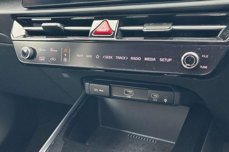 10.25" driver display screen, 10.25" touchscreen satellite navigation, Apple car play/Android Auto with voice control, Blind spot collision avoidance assist, Customisable Head Up Display, Drive mode select (Eco, normal, sport, snow), E-call, Emergency stop signalling system, Forward Collision-Avoidance Assist (FCA) 1.5 - City/Pedestrian/Cyclist/Junction turning, Front parking sensors, Highway Driving Assist (HDA), Intelligent speed limit assist, Kia Connect (UVO), Lane Following Assist (LFA), Lane keep assist, Motor driven power steering, Parking collision avoidance assist (PCA), Rear cross traffic collision avoidance assist (RCCA), Rear parking sensors, Remote smart parking assist, Reversing camera system, Safe exit warning (SEW), Smart cruise control with stop and go functionality, Smart power tailgate, Trip computer with distance/fuel consumption/average speed, Wireless Smartphone charger, 220v AC Inverter, 'Shark fin' mobile antenna, 6 speakers, Bluetooth with music streaming, DAB Digital radio, Steering wheel mounted controls, USB port for connection of a media device, Acoustic windshield, All round electric windows with drivers and front passenger auto up/down and safety function, Auto dimming rear view mirror, Automatic defog system, Automatic headlight control system, Black grille with chrome surround, Black window surrounds, Body colour bumpers, Body colour door mirrors, Body colour exterior door handles, Deluxe door scuff plates, Electrically adjustable and heated door mirrors with LED turn indicator, Electrically folding door mirrors, Front and rear chrome skid plates, Front fog lights, Gloss black wheel arches, Heated rear window, LED daytime running lights, LED Headlights, LED High mounted brake light, LED rear combination lights, Privacy glass - Rear windows and tailgate, Rain sensing front wipers, Rear fog lights, Rear roof spoiler, Rear side wing doors, Rear wiper, Roof rails, Solar glass windscreen, Sunroof with tilting and sliding function, Welcome and follow-me home light functionality, Windscreen Washer Level Warning, 12V socket in front, 12V socket in luggage compartment, 3 seat bench in 2nd row, 60:40 split remote folding rear seats, All-round height adjustable headrests, Alloy pedals, Artificial leather centre console storage box, Artificial leather steering wheel, Artificial leather upholstery, Automatic air conditioning, Centre console cupholder, Chrome coating interior door handles, Driver power adjusted memory seat, Driver/passenger sunvisors with illuminated vanity mirrors, Drivers seat power lumbar support, Front and rear door storage, Front passenger 1 x USB-C charging port, Front passenger power adjusted seat, Front passenger relaxation seat, Glove box, Heated front seats, Heated outer rear seats, Heated steering wheel, ISOFIX Child seat top tethers and anchor fixings, LED Front cabin, rear & luggage compartment lights, Luggage area load cover, Luggage board, Manually adjustable steering column, Paddle shifts, Power adjustable lumbar support on front passenger seat, Rear centre armrest with cupholder, Rear passenger 2 x USB-C charging ports, Seatback pocket - driver, Seatback pocket - front passenger, Shift by wire SBW, Single front passenger seat, Ventilated front seats, Ventiliation ducts to rear compartment, 3 point seatbelts on all seats, ABS, Automatic unlocking of doors in case of impact, Curtain and side airbags, Dual shell horn, Electric parking brake with auto hold function, Electronic stability control, Front airbags, Front passenger airbag cut-off switch, Height adjustable front seatbelts, Hill start assist control (HAC), Knee airbags, Seatbelt reminder warning, Traction control, Tyre pressure monitoring system, Customisable automatic door locking, Customisable automatic door unlocking, Deadlocks, Engine Start/Stop Button with Smart Entry System, Locking wheel nuts, Manual child locks, Rear occupant alert, Smart key with motion sensor, Thatcham category 2 security alarm and immobiliser, Visible vehicle identification number, Warranty - 7 Years/ 100, 000 miles, Centre fascia chopped carbon, 18" Alloy wheels, Tyre mobility kit,
