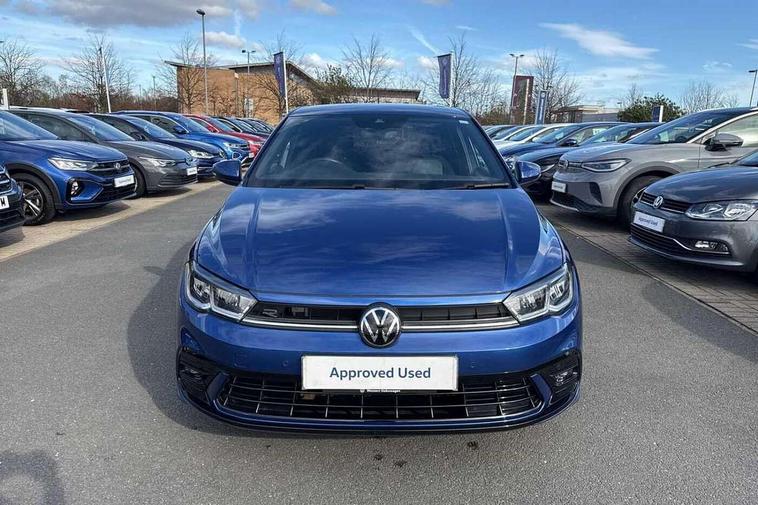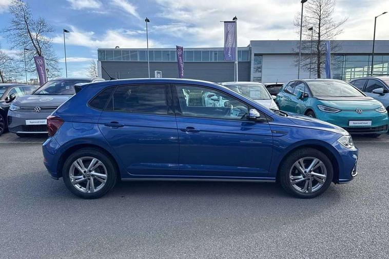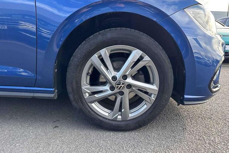 Adaptive cruise control without follow-to-stop and speed limiter, Bluetooth mobile phone interface, Digital Cockpit Pro with 10.25" Display, Driver alert system, Dynamic road sign display, Emergency call service, Power assisted speed sensitive steering, Preparation for We connect and We connect plus, Speedo and rev counter, electronic odometer, trip, service interval display and fuel gauge, Standard rear axle, Travel Assist - Lane keeping system and traffic jam assist, Travel assist including emergency assist, Trip computer, Warning signal and warning light for front and rear seatbelts not fastened, Washer fluid level indicator, Wireless app connect, Front wheel drive, Rear shock absorpion, Start-stop system with battery regeneration (recuperation - energy recovery during braking), DAB Digital radio, Diversity antenna for FM reception, Front and rear 6 speakers, Body colour bumpers, Body colour door handles, Body colour door mirrors, Electric front windows, Front scuff plates with R-Line logo, Heat insulating darkened glass in side and rear windows, Heat insulating glass windscreen, Power folding adjustable/heated exterior mirrors and front passenger exterior mirror lowering function, Rear electric windows, Rear fog light, Rear side wing doors, Rear tinted glass from B-pillar backwards approx 65% tinted, Rear windscreen washer and wiper with interval delay, Third brake light, 12V power socket in centre console, 2 USB-C ports in the front, 2 USB-C charging sockets on the center console in the rear, 3 rear head restraints, 60/40 split folding rear seat and rear seat bench not split, Air care climatronic air conditoning system with active combination filter and 2-zone temperature control, Black roof lining, Chrome plated radiator grille inserts, air vent surrounds and light switch surrounds, Door and side trim panel, Driver and front passenger seat height adjustment, Driver/passenger sunvisors with illuminated vanity mirrors, Front + rear carpet mats in recycled material, Front centre armrest, Front footwell illumination, Front seat backrest storage pockets, Front sports comfort seats, Handbrake lever handle in leather, Headliner in recycled material, Isofix child seat preparation easy-fit (for two outer rear seats, and front passenger seat) compatible with I-size, Karoso artvelours cloth upholstery, Leather trimmed gear knob, LED interior light with switch off delay and dimmer, 2 reading lights front and rear, Luggage compartment cover, Luggage compartment floor, Luggage compartment lighting, Lumbar adjustment for front seats, Multifunction steering wheel, Single front passenger seat, Stainless steel pedals, Standard pedal cluster, Light and sight pack - Polo R-Line/Black Edition, 3 point height adj front seatbelts + pretensioners, 3x3 point rear seatbelts, ABS, Driver and front passenger airbag with front passenger airbag deactivation, Drivers and front passengers safety optimised head restraints, ESC (Electronic stability control) + EDL (Electronic Differntial lock) and ASR (Traction control), Extended and predictive pedestrian/ cyclist protection, Front curtain and side airbags with center airbag, Hill hold control, Manual child lock in rear doors, Single tone horn, Tyre pressure loss indicator, Alarm with interior protection, Anti-theft alarm system with interior monitoring, backup horn, and towing protection, Anti-theft wheel bolts, Electronic engine immobiliser, Chrome applications on rotary light, mirror adjustment, window regulator switches, outlet with frame in black, Dark grey anodised matt decorative inserts in dash and front door panels, Low rolling resistance tyres,