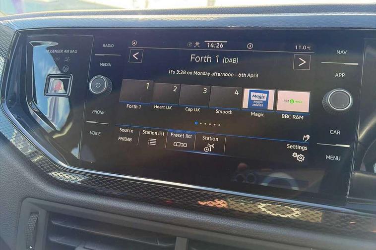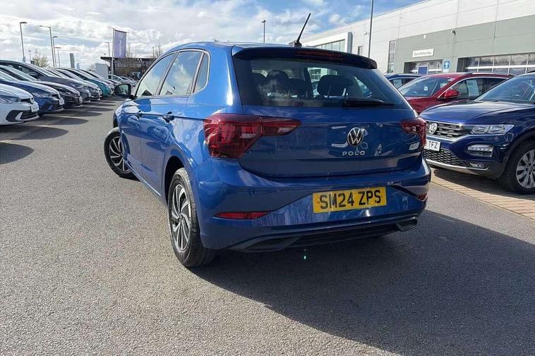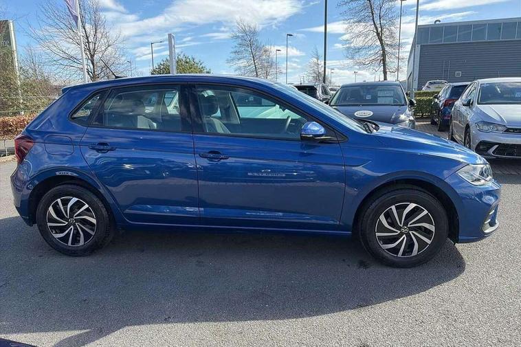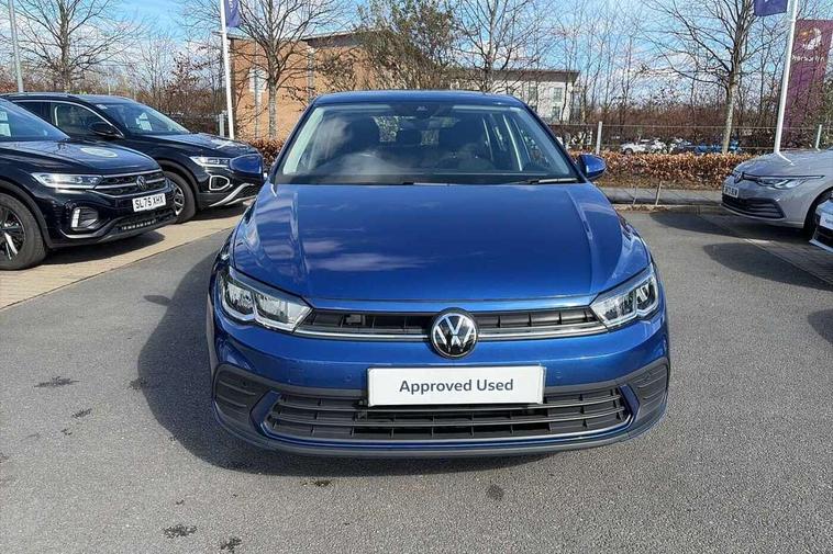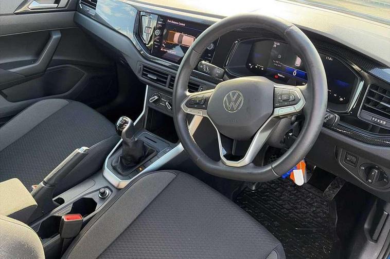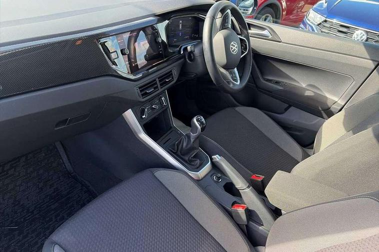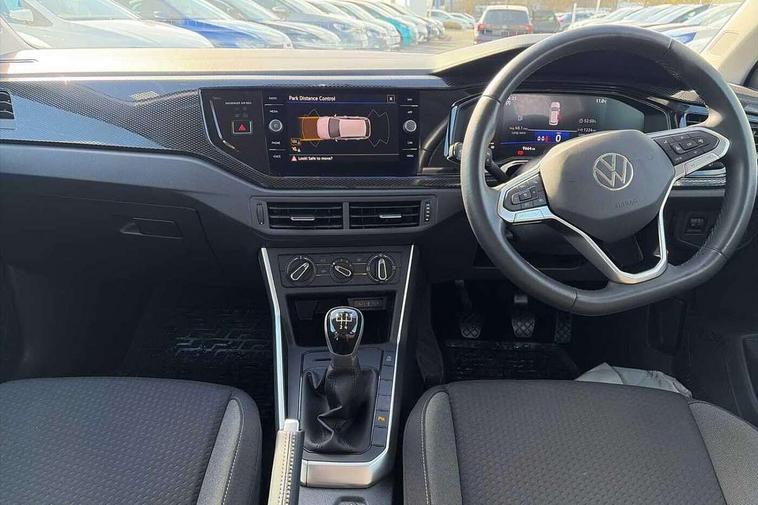 Adaptive cruise control without follow-to-stop and speed limiter, Advanced driver attention and drowsiness monitor, Bluetooth mobile phone interface, Dynamic road sign display, Emergency call service, Power assisted speed sensitive steering, Preparation for navigation system with media and internet package, Preparation for We connect and We connect plus, Speedo and rev counter, electronic odometer, trip, service interval display and exterior temperature gauge, Standard rear axle, Travel Assist - Lane keeping system and traffic jam assist, Travel assist including emergency assist, Trip computer, Warning signal and warning light for front and rear seatbelts not fastened, Washer fluid level indicator, Wireless app connect, Front wheel drive, Rear shock absorpion, Start-stop system with battery regeneration (recuperation - energy recovery during braking), DAB Digital radio, Diversity antenna for FM reception, Automatic dimming interior rear view mirror, Automatic headlight control with LED separate daytime running lights with coming/leaving home function, Body colour bumpers with chrome inserts, Body colour door handles, Body colour door mirrors, Electric front windows, Engine badge deletion, Headlight range adjustment, Heat insulating and laminated safety glass windshield, Heat insulating darkened glass in side and rear windows, Heat insulating glass windscreen, LED Headlights, LED rear combination lamps, Power folding adjustable/heated exterior mirrors and front passenger exterior mirror lowering function, Rain sensor, Rear electric windows, Rear fog light, Rear side wing doors, Rear windscreen washer and wiper with interval delay, Third brake light, 12V power socket in centre console, 2 front and 2 rear reading lights with switch off delay and dimmer, 2 USB-C ports in the front, 2 USB-C charging sockets on the center console in the rear, 3 rear head restraints, 60/40 split folding rear seat and rear seat bench not split, Ceramique roof lining, Chrome plated radiator grille inserts, air vent surrounds and light switch surrounds, Door and side trim panel, Driver and front passenger seat height adjustment, Driver/passenger sunvisors with illuminated vanity mirrors, Front centre armrest, Front seat backrest storage pockets, Front standard seats, Handbrake lever handle in leather, Hartley/Thomas cloth upholstery, Headliner in recycled material, Isofix child seat preparation easy-fit (for two outer rear seats, and front passenger seat) compatible with I-size, Leather trimmed gear knob, Luggage compartment cover, Luggage compartment lighting, Removable luggage compartment floor, Single front passenger seat, Standard climatic zones, Standard pedal cluster, Three spoke leather wrapped multifunction steering wheel, Light and vision pack - Polo, 3 point height adj front seatbelts + pretensioners, 3x3 point rear seatbelts, ABS, Driver and front passenger airbag with front passenger airbag deactivation, Drivers and front passengers safety optimised head restraints, ESC (Electronic stability control) + EDL (Electronic Differntial lock) and ASR (Traction control), Extended and predictive pedestrian/ cyclist protection, Front assist with autonomous emergency braking (for Adaptive Cruise Control ACC up to 130 mph), Front curtain and side airbags with center airbag, Front disc brakes, Hill hold control, Manual child lock in rear doors, Rear drum brakes, Single tone horn, Tyre pressure loss indicator, Alarm with interior protection, Anti-theft alarm system with interior monitoring, backup horn, and towing protection, Anti-theft wheel bolts, Electronic engine immobiliser, Lava stone black gloss/matt decorative inserts in dash and front door panels, Low rolling resistance tyres,