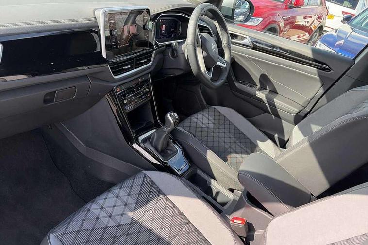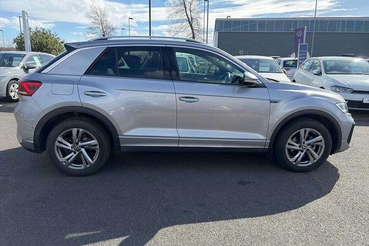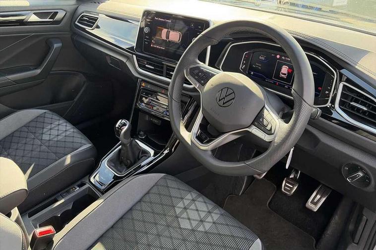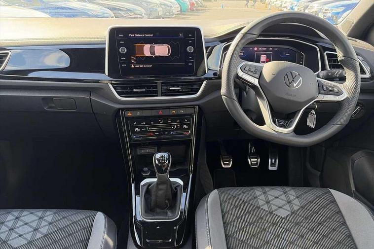 10.25" Digital cockpit pro, Advanced driver attention and drowsiness monitor, Emergency call service, Lane keeping system Lane Assist, Mobile phone interface, Modified key software - reduce switch off time for key status change to Long no motion, Online services, Park assist including front and rear parking sensors, Service interval indicator, Tailgate/trunk lid release from outside, Think blue trainer driver tips and journey analysis, Warning sound and light for front seatbelts unfastened, Wireless app connect, Battery regeneration during braking, Start/stop function with battery regeneration, DAB Digital radio, Diversity antenna for FM reception, Front and rear 6 speakers, Music playback - MP3, WMA and AAC files, Premium USB cable in choice of either Apple or Android smartphone compatibility, SD card slot, Simultaneous pairing of 2 compatible mobile devices, Title and cover art display, We Connect and We Connect Plus functionality, Auto dimming interior rear view mirror, Automatic hazard lights activation under emergency braking, Automatic headlight control with LED separate daytime running lights with coming/leaving home function, Body coloured exterior mirror housings and door handles, Electrically adjustable and heated door mirrors, Extended roof spoiler, Exterior mirrors aspherical on driver side, convex on front passenger side, External USB type C socket and charging sockets, Front windscreen wiper with intermittent wipe and 4 position delay, Heated rear window, LED 3rd brake light, LED rear combination lamps, LED rear number plate lights, Power windows with comfort operation and circuit breaker, Privacy glass for rear side windows and rear window, R-Line design body coloured bumpers, Rain sensor, Rear exhaust tailpipe, Rear fog light on one side and reversing lights on both sides, Rear side wing doors, Rear wash/wipe with intermittent wipe setting, Remote electrically foldable door mirrors, puddle lights and reverse activated passenger's door mirror, 12V power socket in centre console, 3 rear head restraints, 3 seat bench in 2nd row, 4 load lashing points in luggage compartment, Air care climatronic air conditoning system with active combination filter and 2-zone temperature control, Black roof lining, Chrome plated decorative trims, Chrome plated radiator grille inserts, air vent surrounds and light switch surrounds, Door and side trim panel with leatherette insert, Front + rear carpet mats, Front centre armrest, Front cupholders x 2, Front footwell illumination, Front reading light, Front scuff plates with R Line logo, Front seat back storage pockets, Glove compartment door with light, Instrument lighting, white adjustable panel illumination, Interior ambient lighting and surround lighting, Interior light delay, Isofix child seat preparation, Leather gearshift handle, Load-through provision with cup holder when folded down ('Unsplit rear seat bench, split folding backrest, with centre armrest), Luggage compartment lighting, Single front passenger seat, Stainless steel pedals, Storage compartment in left and right luggage area, Storage compartment in rear doors, Storage compartments in driver and front passenger doors, Sunvisors with illuminated vanity mirrors, Variable boot floor, height adjustable and removable, Driver assistance pack without proactive passenger protection - T-Roc, 3 point height adj front seatbelts + pretensioners, 3 point seatbelts in outer rear with ECE label, ABS, Child locks on rear doors, City emergency braking and pedestrian monitoring, Driver and front passenger airbag with front passenger airbag deactivation, Driver and front passenger safety-optimised head restraints, Drivers seatbelt reminder, Electronic parking brake, Electronic Stability Control (ESC) inc EDL (Electronic Differential Lock) and ASR (Traction Control), Front and rear passengers curtain airbag system including front side airbags, Hill start assist, Predictive pedestrian protection, Rear disc brakes, Two tone horn, Tyre pressure loss indicator, Volkswagen roadside assistance, Piano black decorative inserts in dashboard and front door trim panels, Trims for alloy wheels,