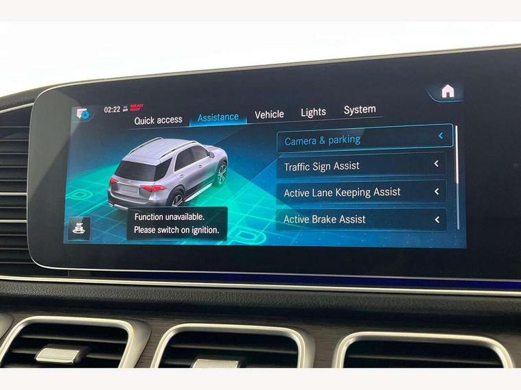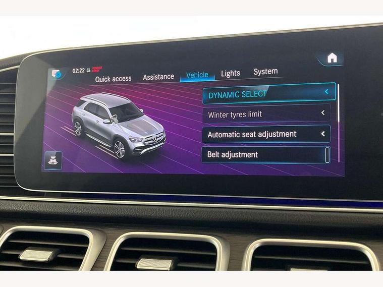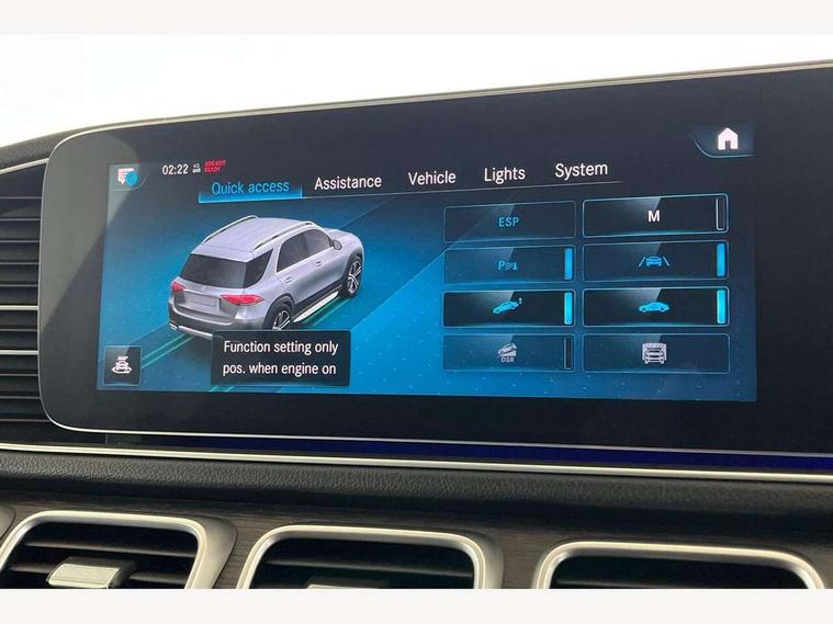 Attention assist, Blind spot assist, Brake wear warning display, Cockpit display 12.3" widescreen digital instrument cluster, Cruise control with variable speed limiter, Direct steer speed sensitive steering, DYNAMIC SELECT with a choice of driving modes (ECO, Comfort, Sport and Individual), Easy-pack tailgate - Powered opening/closing automatically, ECO start/stop function, Geofencing, Hard-disk navigation, Hey Mercedes Voice activation, High resolution 12.3" multimedia colour display, Lane keeping assistant (LKA), MBUX augmented reality for navigation, Mercedes me connect including emergency call system, accident recovery, breakdown and maintenance management, Outside temperature display, Remote boot release, Service indicator (ASSYST), Smartphone integration with Apple CarPlay and Android auto, Speed limit assist, Status display for rear seat belts in instrument cluster, Traffic Sign Assist, Traffic sign recognition including wrong way warning function and display of posted speed limits in the instrument cluster, Trip computer in multifunction display showing current fuel consumption, Wireless charging system for mobile devices, 85 litre fuel tank, Agility control suspension with selective damping system and lowered by 15mm, Diesel particulate filter (DPF), Incorrect fuelling protection, DAB Digital radio, Dual bluetooth interface, 2 USB ports (type C), MBUX multimedia system with DAB digital radio and touchpad including satellite navigation, Adaptive brake lights, Adaptive high beam assist, Aerial for GPS, Aluminium look, illuminated running boards with rubber studs, AMG bodystyling front and rear aprons and side skirts in polished aluminium, Body colour door mirrors, Body coloured bumpers, Electric windows with one touch opening/closing and obstruction sensors, Exterior mirrors heated and electronically adjustable, Front green tinted glass, Illuminated front door sill panels with "AMG" lettering, LED rear lights, Multi beam LED headlights, Privacy glass - heat insulating dark tinted glass, Radiator grille with integrated star and single louvre in matt iridium silver with chrome trim, Radio aerial integrated into rear window, Rain sensing windscreen wipers, Rear wiper, Roof rail system, Top surround of side windows in polished aluminium, Visible twin pipe exhaust system integrated into bumper, Waistline in polished aluminium, 3 spoke AMG multifunction steering wheel with touch control buttons, trimmed in black nappa leather with flattened bottom section, 4 way adjustable front head restraints and 2 way rear head restraints, 4 way lumbar support, 40:20:40 split folding rear seats, AMG brushed stainless steel sports pedals with rubber studs, AMG floor mats with AMG lettering, Artico man-made leather upper dashboard with contrast topstitching, Automatic child seat recognition sensor, Black fabric roof liner, Central stowage compartment with 12 V socket in centre console, Chrome door pins, Courtesy lights in rear grab handles with reading light functionality, Four way fully front electric seat adjustment, Front centre armrest with stowage compartment and illuminated grab handles, Glasses compartment in overhead control panel, Glove compartment - lockable, air conditioned and illuminated, Heated front seats, Interior lighting - 64 colour Ambient lighting, Nappa leather upholstery, Seat occupancy sensor for front passenger seat, Second row three seats, Steering column manually adjustable for height and reach, Steering wheel multifunction with gearshift paddles, Sunvisors with illuminated vanity mirrors, Touchpad, Two zone automatic climate control, Anti theft Protection package - GLE, Memory package - GLE, Mirror package - GLE, Parking package with 360 camera - GLE, Active bonnet, Active braking assist, Adaptive brake system with HOLD function and brake drying in the wet, Airbags - driver and front passenger, with extended adaptivity for front passenger airbag, Airbags - sidebag for driver and front passenger with combined thorax/pelvis bag, Airbags - windowbags, Anti-lock braking system (ABS), Childproof locks manually operated for rear doors and electrically operated for rear power windows, Drivers knee airbag, Electronic parking brake, Electronic Stability Programme (ESP), ISOFIX child seat attachment points two outer rear seats, Perforated front brake discs and brake calipers with Mercedes-Benz lettering, Pre-Safe anticipatory safety system, Three point rear seat belts, Tyre pressure monitoring system and loss warning system, Warning triangle and first aid kit, Alarm system/interior protection/immobiliser, Central locking with interior switch, automatic locking and crash sensor with emergency opening function, Chrome surround in electric key, Keyless Go starting function, Dashboard and door, anthracite open pore oak wood trim, Trim - Centre console, anthracite open pore oak wood trim, 21" AMG multi spoke light alloy wheels painted in himalayas grey with high sheen finish, Summer tyres with noise reducing absorber, TIREFIT with tyre inflation compressor,