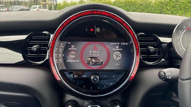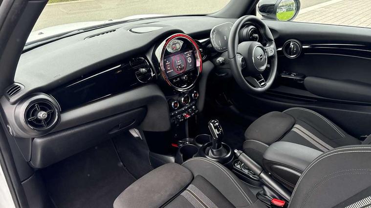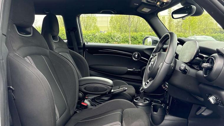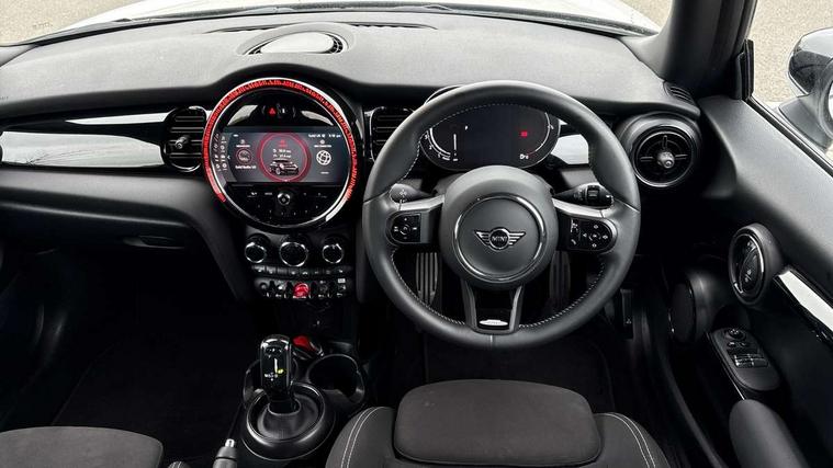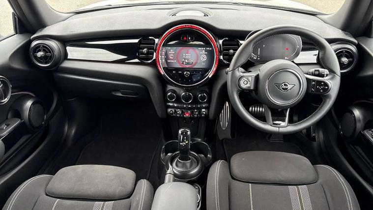Apple CarPlay, Automatic start/stop function with brake energy recuperation, Compatible mobile phone bluetooth with audio streaming, Cruise control with brake assist, Electro-mechanical speed dependant steering assistance, Flexible car sharing preparation, Instrument cluster, MINI Driving Modes - centre toggle switch to control driving setting (sport, mid and green), Mini E-call, MINI TeleServices, On board computer, Rear park distance control, Service interval indicator, Double Vanos system, Fully variable valve control, High precision injection, Intelligent adaptive suspension, Performance Control, Steptronic transmission with double clutch, 8.8" touchscreen with LED ring, FM tuner and DAB digital radio, 3rd brake light, Automatic headlight activation switch, Body colour fuel filler cap, Chrome border high gloss black slats radiator grille, Dynamic brake lights, Electric front windows, Exhaust tailpipe on left with chrome finisher, Heated rear window, Heated windscreen washer jets, JCW Aerodynamic kit - Front and rear bumpers with sporty JCW styling and part-painted side sills with MINI John Cooper Works door sill finishers, John Cooper Works rear spoiler, LED headlight with closed ring and daytime driving lights, Metal door sill strips with MINI imprint, Model logo Cooper on right of tailgate, Rain sensor window wipers, Rear fog lights, Rear LED lights with union jack design, Rear window wiper, Side scuttle panel with integrated indicator, Sun/heat protection glass, White indicator lenses, 12V Accessory socket in centre console, 2 seat bench in 2nd row, 4 lashing eyes in luggage compartment, 60/40 split folding rear seat, Anthracite headliner including grab handles and clothes hooks, Carbon black colour line - Knee roll and door armrest, Chrome interior highlights, Cupholders, Front and rear isofix with front passenger airbag deactivation, Front floor mats in velour, Glove compartment, Height and length steering column adjustment, Interior lighting with 12 different colours across the dashboard, underneath door bezel with illuminated laser-engraved design on central display, JCW Sport seats with integrated headrests, adjustable thigh support and John Cooper Works logo, Leatherette gearshift lever and handbrake gaiters, LED reading lights, vanity mirror lights, front foot well light and spotlight on front seats, Manual air conditioning, Mechanical seat adjustment - forward/back & backrest for front seats and driver seat height adjust, Multifunction steering wheel, Passenger seat height adjuster, Single front passenger seat, Storage compartments in doors, Sunvisors with vanity mirrors, Tool kit, Walknappa leather steering wheel with grey seam and John Cooper Works badge on Piano Black lower steering wheel spoke, Navigation pack without Apple Carplay - Mini Hatchback, Piano black exterior pack - Mini Hatchback Cooper, 3 point seatbelts on all four seats, 6 Airbags - front, side, head and seat belt tensioners, Anti-lock braking system (ABS), DSC - Dynamic Stability Control, Front and rear disc brakes, Single tone fanfare horn, Tyre pressure monitoring system, Alarm system with tilt sensor, monitoring doors, bonnet interior and tailgate, Electronic vehicle immobiliser, Start/stop toggle with keyless go, Piano black interior trim,