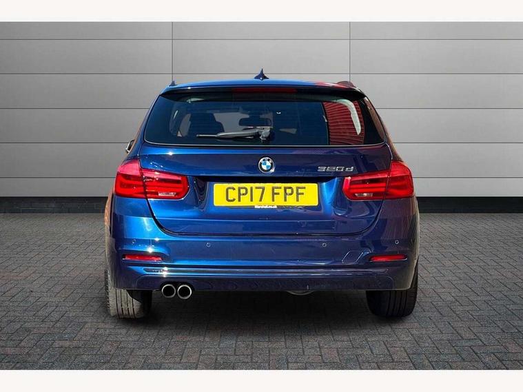 Automatic tailgate operation, BMW Online services, BMW Teleservices, Brake force display, Brake pad wear indicator warning light, Check control system, Digital clock, Door/boot open warning light, Lights on warning, Oil temperature gauge, On board computer, On board diagnostics, Operation warning of all exterior lights, Outside temperature display, Push button starter, Service interval indicator, Traffic message channel (TMC), Diesel particulate filter, Drive Performance Control, Electronic differential lock, Sports function on gearbox with steering wheel mounted gearshift paddles, Auxiliary point for auxiliary devices, BMW professional radio/CD/MP3, CD Changer preparation, DAB Digital radio, 'Guide me home' headlamps, 2 speed adjustable intermittent wipers with wash/wipe function, Auto dimming rear view mirror, Automatic headlight beam throw control, Body colour bumpers, Body colour door handles, Body colour roof mouldings, Chrome exhaust tailpipe, Clear indicator lenses, Dynamic brake lights, Electric adjustable door mirrors, Electric front and rear windows with one touch/convenient open/close function, Front ornamental grille with black kidney bars and chrome bezel, Green tinted heat insulating glass, Heated rear window with automatic switch off, Heated windscreen washer jets, Independent opening for tailgate window, LED daytime running lights, Rain sensor + automatic driving lights control, Rear wash/wipe, Shark fin roof aerial, 12V sockets in front centre console and passenger footwell, 2 bag hooks in luggage compartment, 2 x folding cupholders in instrument panel above glovebox, 3 rear seat head restraints, 4 foldable grab handles - rear with clothes hook, 4 lashing points to secure luggage, 40:20:40 split folding rear bench seat, Ambient lighting, Automatic interior light soft on/soft off system, Driver and passenger sunvisors with vanity mirrors + slide cover, Dual zone automatic air conditioning, Foldable boot floor with storage compartment, Folding front centre armrest + storage, Front and rear door armrests, Front and rear velour floor mats, Front door storage bins with bottle holder, Front sports seats with electric side bolster adjustment, Glovebox light, Height adjustable front headrests, Indirect front interior illumination - soft-light function, Isofix system on outer rear seats, Leather gear knob, Leather gear selector lever handle, Leather handbrake grip, Lockable glovebox, Luggage compartment lighting, Luggage strap, Multi-function controls for steering wheel, Reach + rake adjustable steering column, Rear centre armrest with 2 cupholders, Rear storage compartment in multifunction centre console with sliding cover, Retractable luggage cover, Separation net, Storage compartment in rear doors, Through load system, Toolkit located in luggage compartment, Extended lighting package - 3 Series, Interior lights pack - 3 Series Touring, 3 point inertia reel seatbelts + pre-tensioners on outer rear seats, ABS, Automatic Stability Control (ASC), BMW emergency call, Cornering brake control (CBC), Crash sensor, Driver and passenger airbags, DSC+, Dynamic brake control, Dynamic Traction Control - DTC, Front and rear head airbags, Front passenger airbag deactivation, Front seat side impact airbags, Front seatbelt pretensioners + load limiters, Hill start assist, Rear child proof door locks, Seatbelt warning, Three 3 point rear seatbelts, Twin horns, Tyre pressure monitor, Warning triangle and first aid kit, Automatic drive away locking facility, Central locking fuel filler cap, Centre lock switch, Electronic immobiliser, Key integrated remote control central locking, Remote control alarm, Low rolling resistance tyres, Run-flat tyres,