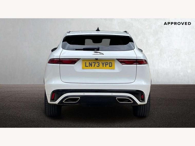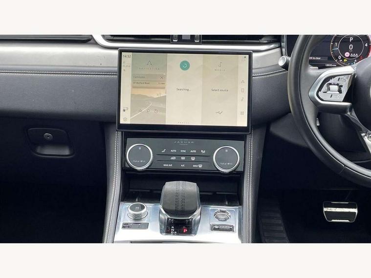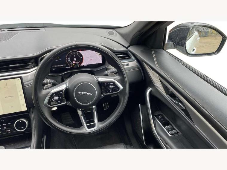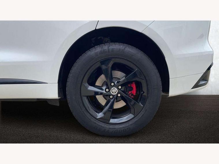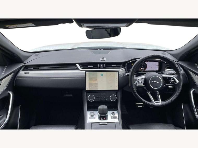 11.4" touchscreen, Android Auto, Apple car play, Blind spot assist, Bluetooth connectivity, Clear exit monitor, Driver alert system, Driver condition monitor, eCall emergency call system, Eco driving style assistant, Electric power assisted steering, InControl remote, Jaguar Toggle shift selector, Lane departure warning system, Lane keep assist, Outside temperature gauge, Personalisation profile management, Pivi pro connected navigation system with app interface and media storage, Pro services and wifi hotspot, Push button starter, Rear traffic monitor, Service interval indicator, Speed proportional steering, Start up sequence with movement in dials and lighting, Traffic sign recognition with adaptive speed limiter, Trip computer, Voice control system, 8 speed automatic transmission, Adaptive dynamics, All terrain progress control, All Wheel Drive (AWD), Configurable dynamics, Open differential with torque vectoring by braking, AM/FM radio, Bluetooth streaming, DAB Radio (Digital Audio Broadcasting), Dynamic volume control, InControl apps, InControl protect, iPod integration, 3 flash lane change indicators, Animated directional indicators, Approach Illumination, Auto dimming rear view mirror, Automatic headlights, Electric heated/power fold memory door mirrors with approach lights and auto dimming driver side, Electric windows with one touch open/close and anti trap, F-Pace and R Dynamic badge, Green tinted glass, Heated front windscreen + heated washer jets, Heated rear window with timer, Jaguar script and leaper, LED High level third brake light, LED tail lights, Metal load space scuff plates, Non acoustic front windscreen, Privacy glass, R Dynamic badge on side door, Rain sensor windscreen wipers, Rear fog lights, Rear metal tread plates, Rear side wing doors, Rear wiper, Trailer stability assist, Variable front intermittent wipers, 12V power point front, 3 rear headrests, 3 seat bench in 2nd row, Air distribution speed, Bright metal foot pedals, Centre armrest console, Centre console with side storage, Configurable cabin lighting, Deletion loadspace storage rails, Door sill tread plates, Fold flat front seats, Front centre armrest with storage compartment, Front door storage space, Glovebox finisher with jaguar script, Heated steering wheel, Hooks in loadspace, Illuminated glovebox, Interior front door handles with separate locking switches, ISOFIX on outer rear seats, Jaguar sense, Leather steering wheel, Luggage tie downs in loadspace, Mist sensing, Multifunction steering wheel, Overhead lighting console, Overhead stowage for sunglasses, Passive front head restraints, Premium carpet mats, Rear air vents, Rear armrest with twin cupholders, Rear centre headrest, Rear door storage space, Reversible boot floor, Satin chrome gearshift paddles, Shopping bag hook, Single front passenger seat, Sunvisors with illuminated vanity mirrors, Twin front cupholders with cover, Online Pack with data plan - F-Pace, 380mm front brakes and 325mm rear brakes, 3x3 point rear seatbelts, ABS, All surface progress control (ASPC), Brake pad warning light, DSC - Dynamic Stability Control, Electric parking brake (EPB), Emergency brake assist, Front airbags with passenger seat occupant detector, Front and rear seatbelt reminder, Front side airbags, Full length side window curtain airbag, Hill launch assist, Power operated child locks, Traction control, Tyre pressure monitoring system, Immobiliser, Keyless entry, Keyless start, Locking wheel nuts, Perimeter alarm, Remote central locking, Valet mode,