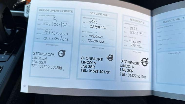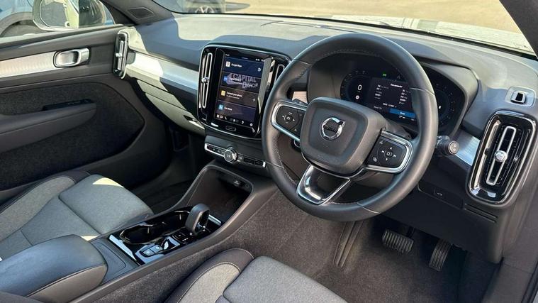 12.3" Progressive Driver Display, 360 degree surround view parking camera with side proximity sensors, 9" centre console portrait touch screen, Adjustable steering wheel force, Bluetooth hands free telephone kit, Cruise control, E-call, Front park assist, Google automatic services - Nav with google maps, apple carplay/android auto, voice recognition with google assistant, Hands free power tailgate, Lane keep assist with driver alert control, Oncoming Lane Mitigation, Rear park assist, Speed limiter, Speed sensitive steering, Wireless/Inductive Mobile Phone Charging, Dynamic chassis, DAB Digital radio, High performance sound, 8 speakers/250W, front USB and 2 rear type C USB, Steering wheel mounted remote controls, Adaptive brake lights with high level LED brake lights, Auto dimming feature for exterior door mirrors, Auto dimming interior mirror, Automatic headlamp levelling, Automatic LED Headlights + Active high beam incorporating daytime running lights, Front aluminium tread plates, Front and rear electric windows, High gloss black front and rear skid plate, High gloss black mesh front grille with high gloss black surround, High gloss black window trim, Home safe and approach lighting, Integrated roof rails in high gloss black, LED front fog lights, Puddle lights, Rain sensor with automatic windscreen wiper activation, Rear side wing doors, Rear wiper, Roof antenna, Roof spoiler, Visible VIN plate, 12V socket in front tunnel console and luggage compartment, 2-Zone electronic climate control with CleanZone air quality system and pollen filter, 3 seat bench in 2nd row, 3 Spoke tailored steering wheel with chrome trim, 60/40 versatile split folding rear seat, A-pillar parking ticket holder, Centre console cupholders and storage, Flexible load floor and grocery bag holder, Floor mats, Front door pocket, front cupholder, ambient front door, rear reading, rear courtesy, instrument panel and tailgate lighting, Front footwell illumination, Front headrests, Front reading light and theatre lighting, Front seat cushion extensions, Front tunnel pocket, Glovebox bag hook, Heated front seats, Height adjustable passenger seat, Height/reach adjustable steering column, High gloss centre tunnel deco, Illuminated glovebox, Illuminated luggage compartment, Illuminated vanity mirrors, Integrated waste bin, Isofix attachments on outer rear seats, Load protection net, Multi directional lumbar support, Power driver seat with memory + exterior mirrors memory, Rear armrest / integral cup holders / storage tray, Rear headrests, Single front passenger seat, Underfloor cargo storage, Climate pack without heated front seats - XC40, 3x3 point rear seatbelts, City safety with steering support with Pedestrian + cyclist + front collision warning with full auto brake and rear auto brake, Drivers knee airbag, Dual stage driver/passenger airbags, Electronic parking brake with auto hold, First aid kit, Front and outer rear seatbelt reminder and pretensioners, Front seats SIPS airbags, Hill descent control, Hill start assist, Inflatable curtain, Passenger airbag cut-off device, Power child locks on rear doors, Road sign information display, Run off Road Mitigation, Run off Road Protection, SIPS (Side Impact Protection System), Slippery road and hazard light alert, Stability and Traction Control with Spin control, Engine Drag Control and Corner Traction Control, Tyre pressure monitoring system, Vehicle deceleration control with Anti-lock Brake System, Electronic Brake Distribution and Emergency Brake Assist, Warning triangle, WHIPS whiplash protection system - front, Anti-theft alarm including immobiliser/volume sensor + level sensor, Key integrated remote control central locking + fuel flap with deadlocking system and auto open/close power windows, Keyless drive includes keyless entry and keyless start, Locking wheel nuts,