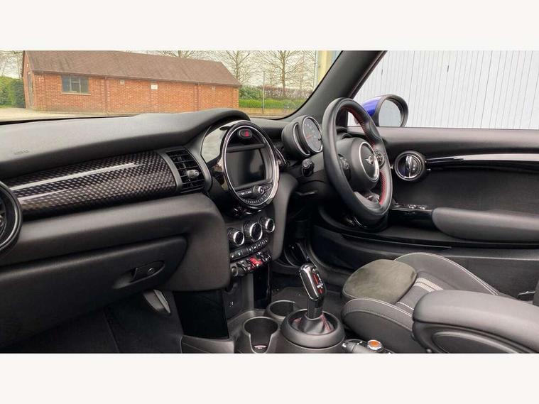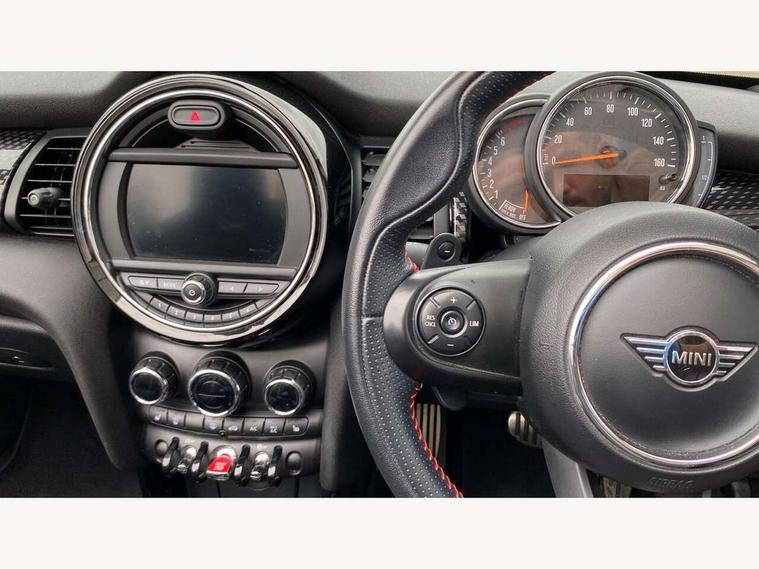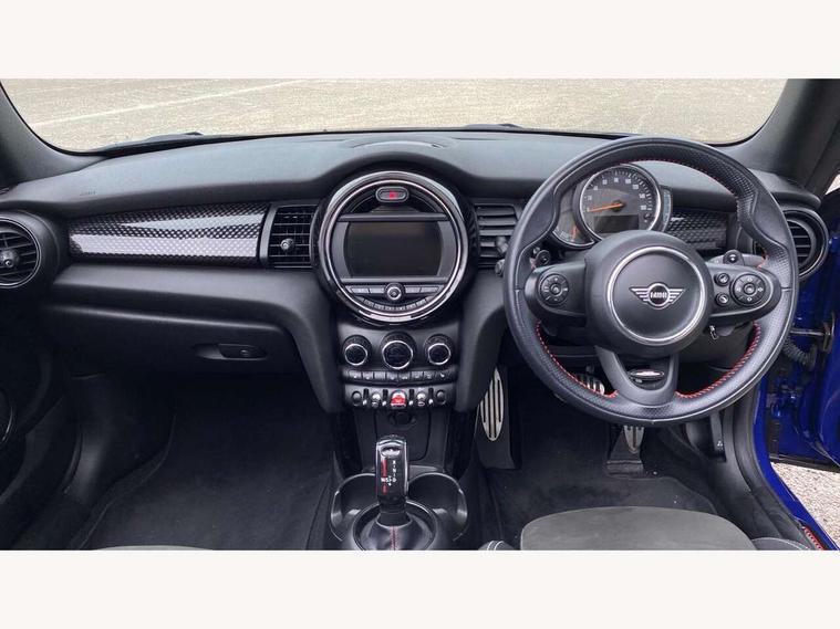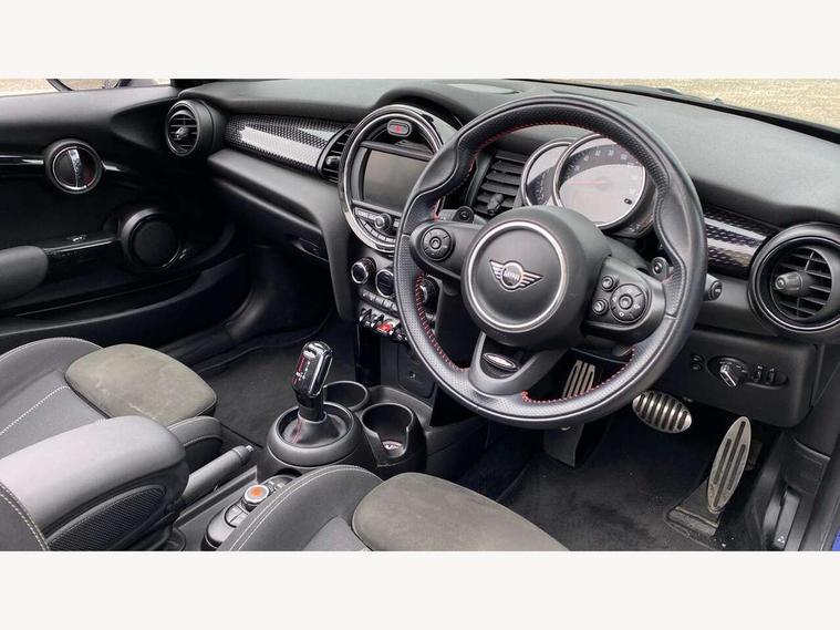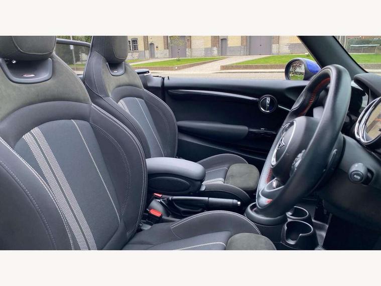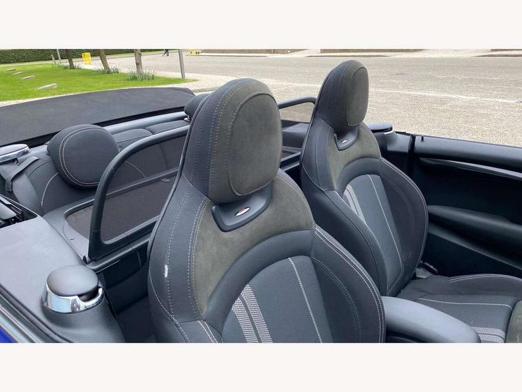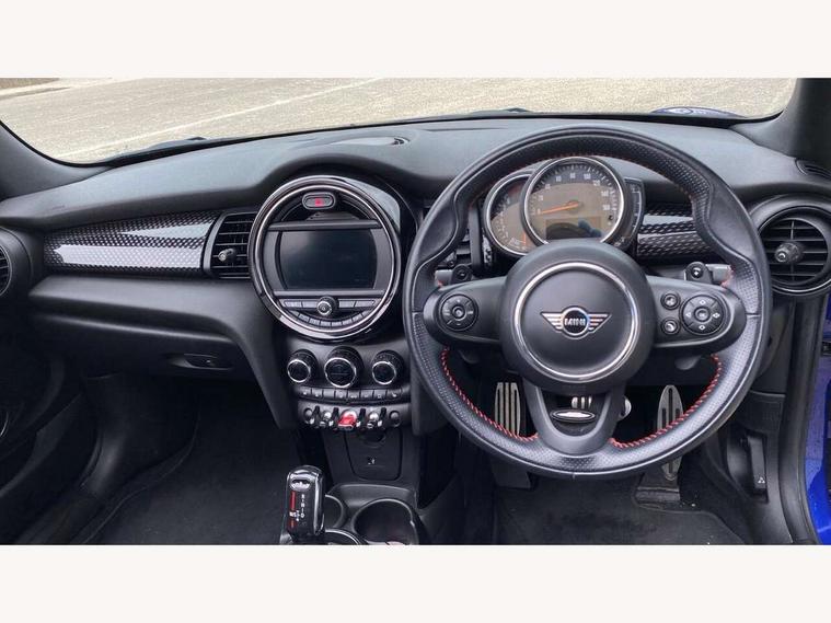Automatic start/stop function with brake energy recuperation, Compatible mobile phone bluetooth with audio streaming, Electro-mechanical speed dependant steering assistance, Instrument cluster, Mini E-call, MINI TeleServices, On board computer, Rear park distance control, Service interval indicator, Double Vanos system, Fully variable valve control, High precision injection, Performance Control, Steptronic sport transmission with double clutch and steering wheel paddles, 6.5" touchscreen with LED ring, FM tuner and DAB digital radio, Automatic headlight activation switch, Bonnet scoop, Chrome border honeycomb structure radiator grille with S badge, Chrome plated fuel cap, Dynamic brake lights, Electric windows, Fully electric black softtop with integrated sunroof functionality, Heated rear window, Heated windscreen washer jets, John Cooper Works - aerodynamic kit (front and rear apron, spoiler), front and rear sport bumpers and part-painted side sills with door sill finishers, LED headlight with closed ring and daytime driving lights, Metal door sill strips with Cooper S imprint, Model logo Cooper S on right of tailgate, Rain sensor window wipers, Rear fog lights, Rear LED lights with union jack design, Side scuttle panel with integrated indicator, Sun/heat protection glass, Two central exhaust tailpipes with chrome finisher, White indicator lenses, 12V Accessory socket in centre console, 4 lashing eyes in luggage compartment, 50/50 split folding rear seats, Chrome interior highlights, Cupholders, Easy Load boot handles, Front and rear isofix with front passenger airbag deactivation, Front seatback storage pockets, Glove compartment, Height and length steering column adjustment, Interior lighting with 12 basic colours selectable via toggle switch in roof, John Cooper Works perforated leather steering wheel with contrast stitching in chilli red and John Cooper Works logo, Leather gearshift lever and handbrake gaiters, Leatherette integrated headrest, adjustable thigh support with john cooper works logo, LED reading lights, vanity mirror lights, front foot well light and spotlight on front seats, Manual air conditioning, Mechanical seat adjustment, driver seat height adjust, forward/back and front seats backrest, Mini logo projection on floor from drivers exterior mirror, Multifunction steering wheel, Rear head restraints, Storage compartments in doors, Sunvisors with vanity mirrors, 3 point seatbelts on all four seats, 6 Airbags - front, side and seat belt tensioners, Active rollover protection, Anti-lock braking system (ABS), DSC - Dynamic Stability Control, Front and rear disc brakes, Hill start assist, Two tone horn, Tyre pressure monitoring system, Alarm system with tilt sensor, monitoring doors, bonnet interior and tailgate, Electronic vehicle immobiliser, Keyless Go, Tool kit,