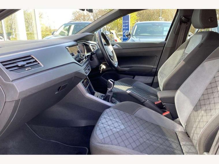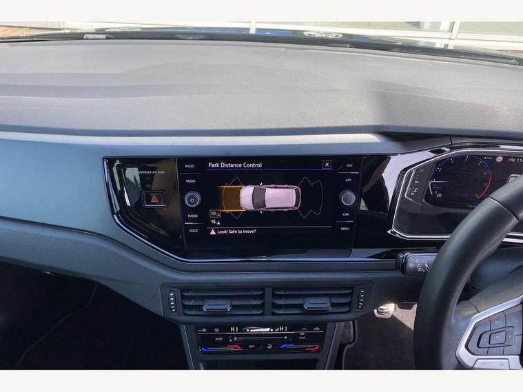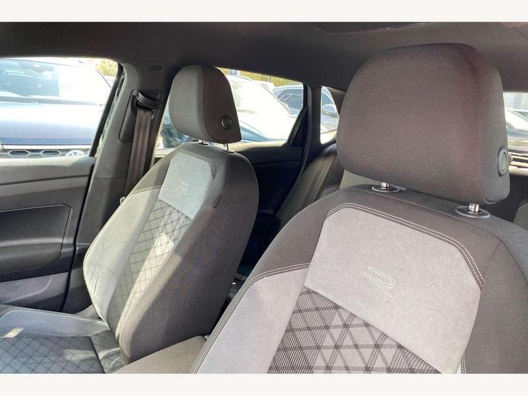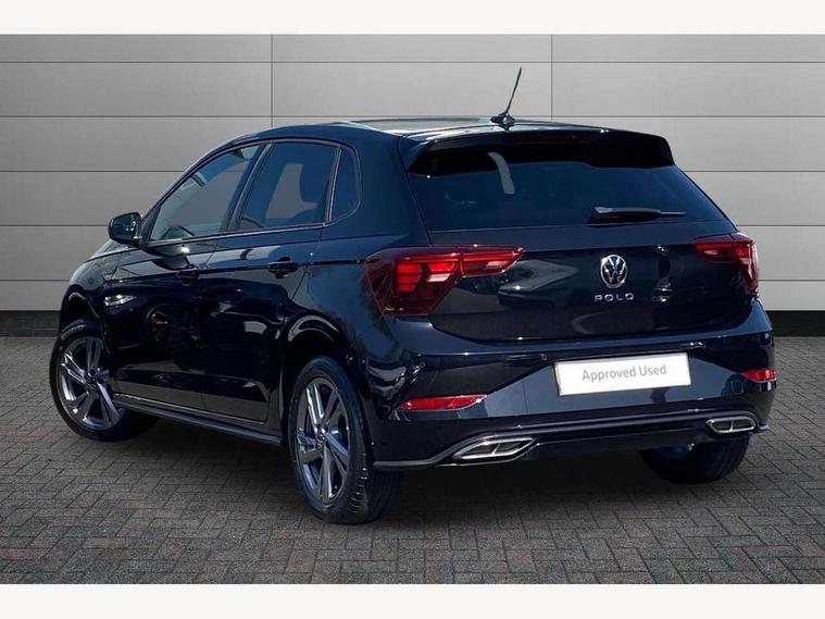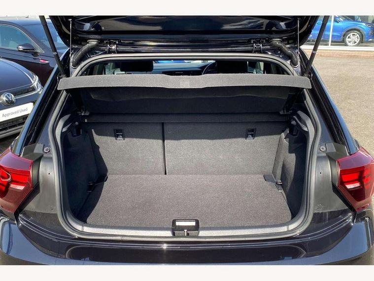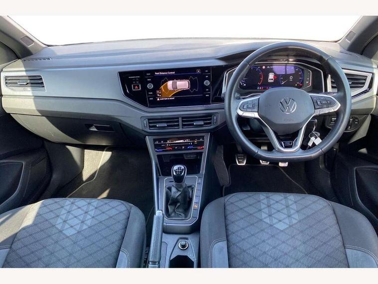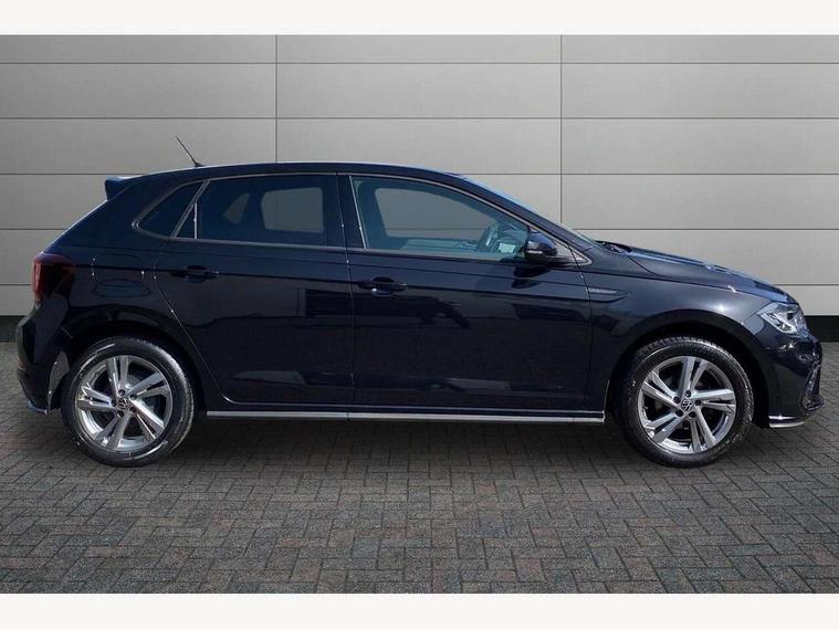 Adaptive cruise control without follow-to-stop and speed limiter, Bluetooth mobile phone interface, Digital Cockpit Pro with 10.25" Display, Driver alert system, Dynamic road sign display, Emergency call service, Power assisted speed sensitive steering, Preparation for We connect and We connect plus, Speedo and rev counter, electronic odometer, trip, service interval display and fuel gauge, Standard rear axle, Travel Assist - Lane keeping system and traffic jam assist, Travel assist including emergency assist, Trip computer, Warning signal and warning light for front and rear seatbelts not fastened, Washer fluid level indicator, Wireless app connect, Front wheel drive, Rear shock absorpion, Start-stop system with battery regeneration (recuperation - energy recovery during braking), DAB Digital radio, Diversity antenna for FM reception, Front and rear 6 speakers, Body colour bumpers, Body colour door handles, Body colour door mirrors, Electric front windows, Front scuff plates with R-Line logo, Heat insulating darkened glass in side and rear windows, Heat insulating glass windscreen, Power folding adjustable/heated exterior mirrors and front passenger exterior mirror lowering function, Rear electric windows, Rear fog light, Rear side wing doors, Rear tinted glass from B-pillar backwards approx 65% tinted, Rear windscreen washer and wiper with interval delay, Third brake light, 12V power socket in centre console, 2 USB-C ports in the front, 2 USB-C charging sockets on the center console in the rear, 3 rear head restraints, 60/40 split folding rear seat and rear seat bench not split, Air care climatronic air conditoning system with active combination filter and 2-zone temperature control, Black roof lining, Ceramique headliner, Chrome plated radiator grille inserts, air vent surrounds and light switch surrounds, Door and side trim panel, Driver and front passenger seat height adjustment, Driver/passenger sunvisors with illuminated vanity mirrors, Front + rear carpet mats, Front centre armrest, Front footwell illumination, Front seat backrest storage pockets, Front sports comfort seats, Handbrake lever handle in leather, Isofix child seat preparation easy-fit (for two outer rear seats, and front passenger seat) compatible with I-size, Karoso artvelours cloth upholstery, Leather trimmed gear knob, LED interior light with switch off delay and dimmer, 2 reading lights front and rear, Luggage compartment cover, Luggage compartment floor, Luggage compartment lighting, Lumbar adjustment for front seats, Multifunction steering wheel, Single front passenger seat, Stainless steel pedals, Standard pedal cluster, Light and sight pack - Polo R-Line/Black Edition, 3 point height adj front seatbelts + pretensioners, 3x3 point rear seatbelts, ABS, Driver and front passenger airbag with front passenger airbag deactivation, Drivers and front passengers safety optimised head restraints, ESC (Electronic stability control) + EDL (Electronic Differntial lock) and ASR (Traction control), Extended and predictive pedestrian/ cyclist protection, Front curtain and side airbags with center airbag, Hill hold control, Manual child lock in rear doors, Single tone horn, Tyre pressure loss indicator, Alarm with interior protection, Anti-theft alarm system with interior monitoring, backup horn, and towing protection, Anti-theft wheel bolts, Electronic engine immobiliser, Chrome applications on rotary light, mirror adjustment, window regulator switches, outlet with frame in black, Dark grey anodised matt decorative inserts in dash and front door panels, Low rolling resistance tyres,