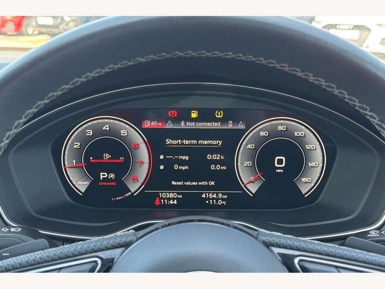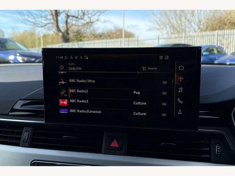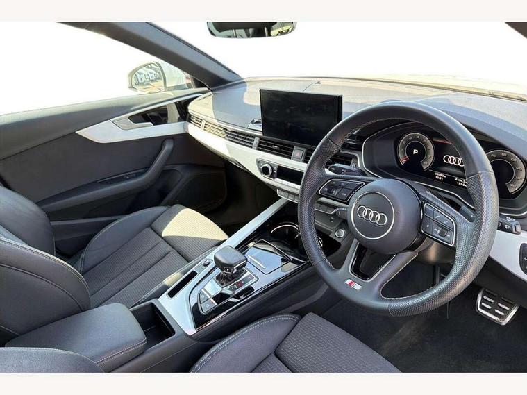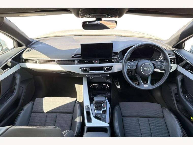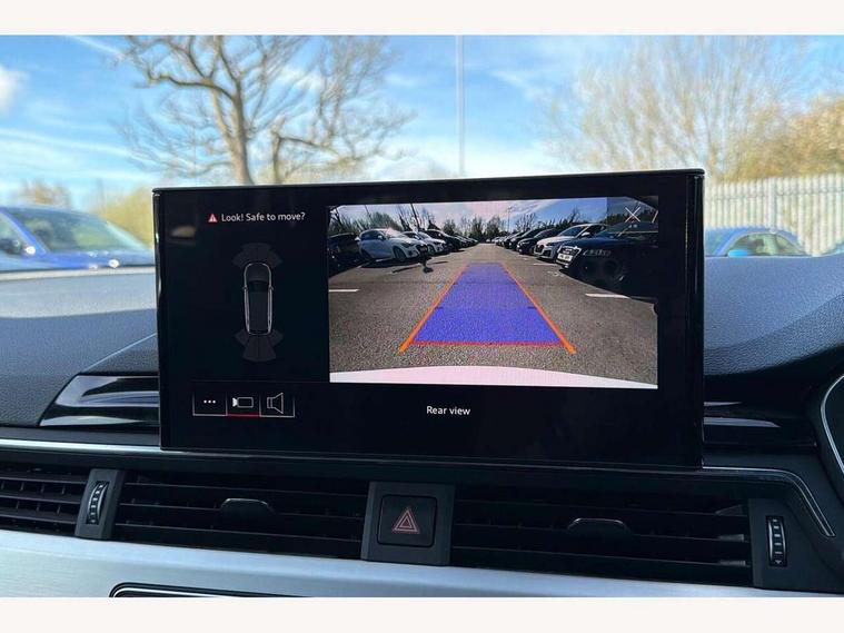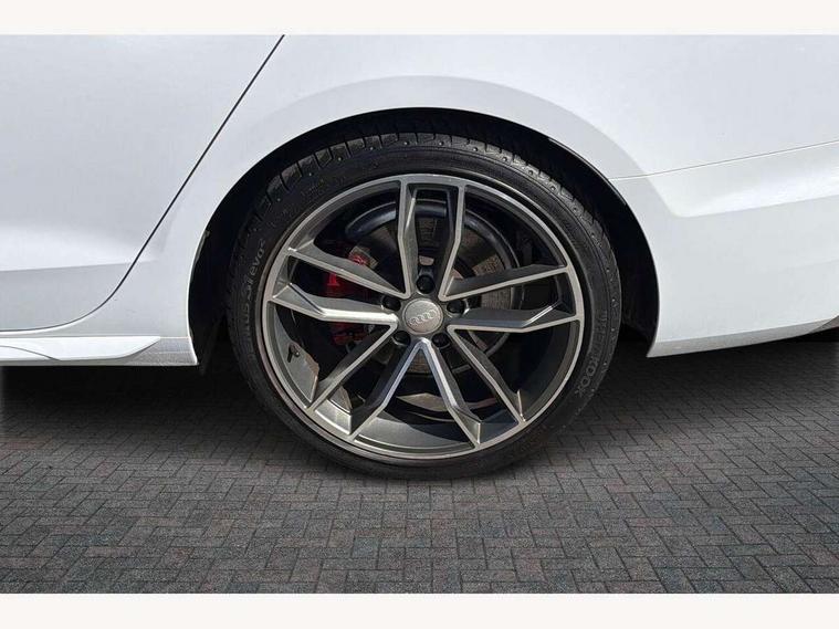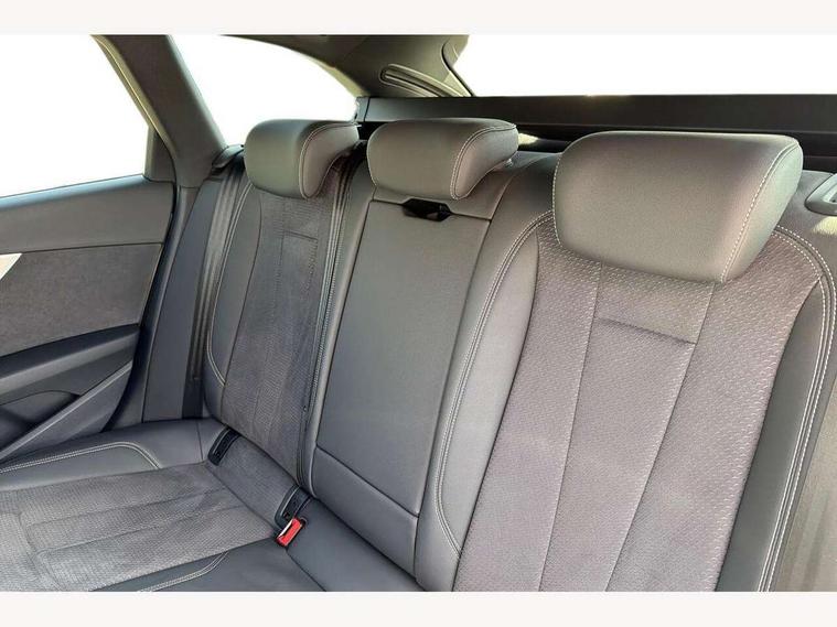 Audi connect safety and service (e-call), Audi drive select, Audi smartphone interface, Audi virtual cockpit, Automatic start-stop system with coasting functionality and efficiency programme, Bluetooth interface, Camera based traffic sign recognition, Electromechanical power steering, Email, calendar and text messages displayed via MMI, Front and rear parking sensors, Lane departure warning, MMI Navigation plus with MMI touch includes 10.1" high resolution colour MMI display, 3D map, Power operated tailgate, Rear view camera, Voice control system, 54 litre fuel tank, Sports suspension lowered by 23mm, 2 USB charging ports, 8 passive loudspeakers, DAB digital radio reception, Aluminium roof rails, Auto dimming rear view mirror, Body colour door handles, Body colour front spoiler lip, Body colour side sill trim, Body coloured door mirrors, Electric adjustable/heated/folding door mirrors with auto dimming, Grained matt black side air inlets with matt aluminium silver inlay, High beam assistant, Honeycomb structure radiator grille in grained matt black, LED headlights with LED rear lights + dynamic rear indicators + headlight adjustment and high beam, turning light + LED daytime running lights, LED third brake light, Matt aluminium silver tailpipe trim, Privacy glass, Rain and light sensors, Rear side wing doors, Rear wiper, S Line badges on the front wings, S line front and rear bumpers with side skirts, S Line rear diffuser in matt anthracite black with trim strip in matt aluminium silver, S Line roof edge spoiler, Variable intermittent front wash/wipe, Windscreen with acoustic glazing, 3 spoke high multi-function sports leather steering wheel grips in perforated leather with S badging including paddle shift, 4 way electric lumbar support for driver and front passenger, 40/20/40 split folding 3 rear seat bench in 3 parts with rear centre armrest, Black carpets, Black cloth headlining, Black perforated leather gearknob, Contrast stitching on seats, steering wheel and gear lever gaiter, Deluxe 3 zone electronic climate control, Electric load area cover, Front and rear head restraints, Front centre armrest, Heated front seats, Illuminated door sill trims with S logo, ISOFIX child seat mounting and top tether, Manual seat adjustment, Single front passenger seat, Stainless steel pedals and foot rest, High gloss package - A4, LED Interior light pack - A4/S4, 3 rear seatbelts, 6 airbags - Driver, front passenger, curtain and side windows, Attention and drowsiness assist, Electronic Stabilisation Control (ESC) including ABS, ASR and EDL, Hill hold assist, Multi collision brake assist, Pop-up bonnet for pedestrian protection, Pre sense city, Rear door child safety locks, Seatbelt monitoring, Warning triangle and first aid kit, Anti theft alarm, Anti theft wheel bolts, Central locking, Keyless Go, Matt brushed aluminium inlays, Tool kit, Tyre repair kit,