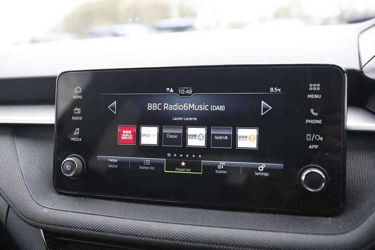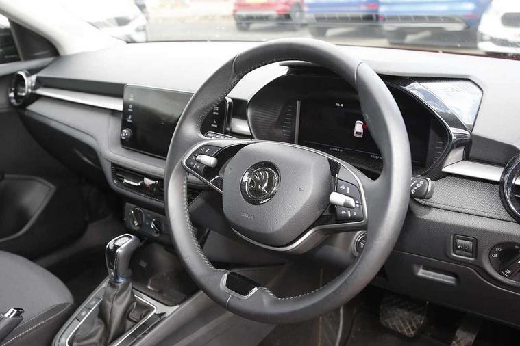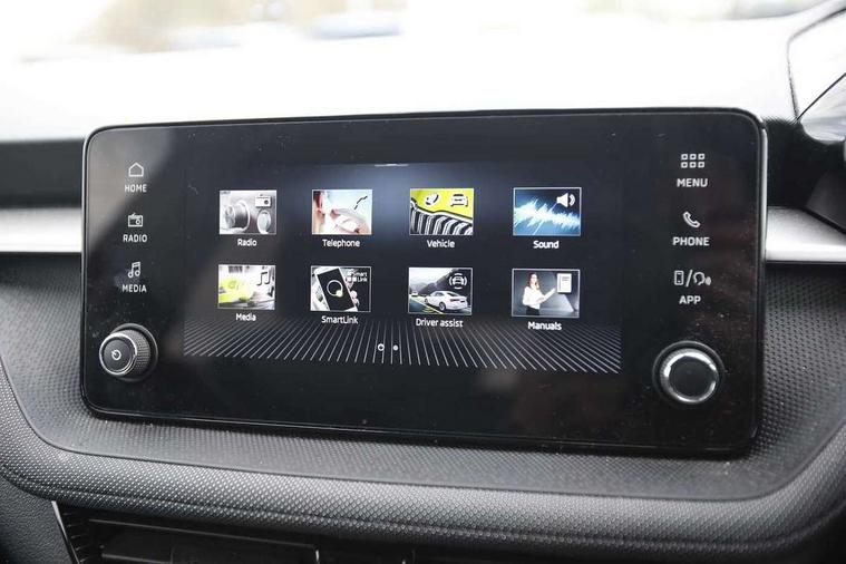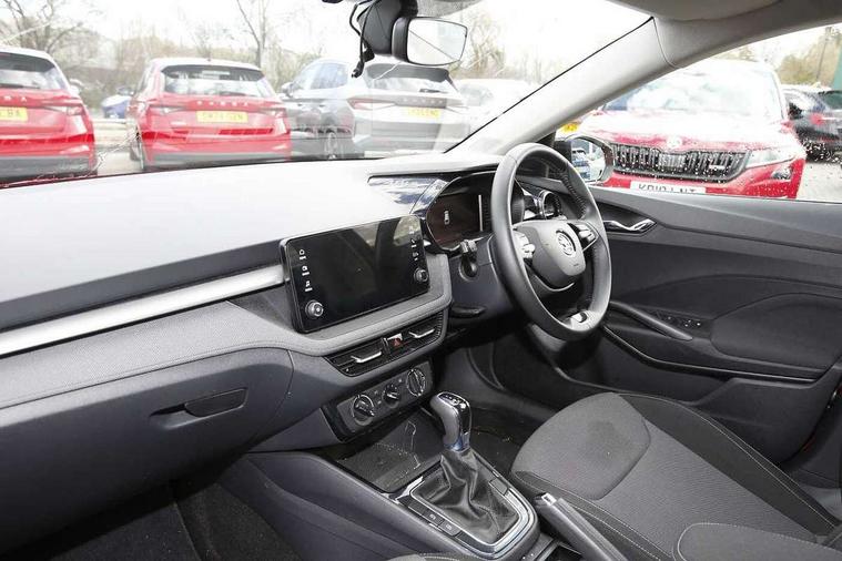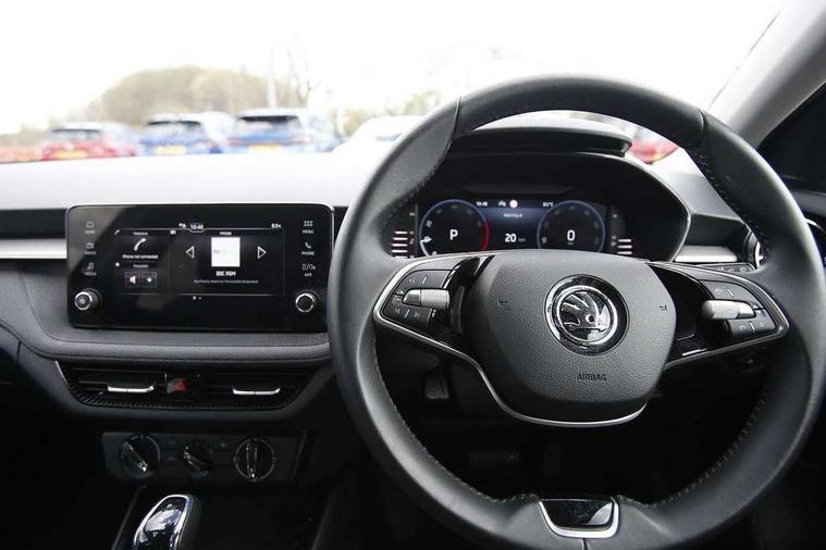 Advanced driver attention and drowsiness monitor, Bluetooth connection, Electromechanical power steering, Exterior temperature gauge, Service interval indicator, Traffic sign recognition, Virtual cockpit with 10.25" colour display, Wireless SmartLink for Apple CarPlay and Android Auto, 6 Speakers (4 in front and 2 in rear), Auxiliary socket for external MP3 player, DAB digital radio reception, Body coloured bumpers, Dimming rear view mirror with black frame, Door mirror integrated indicators, Front and rear electric windows, Front window wiper intermittent control, Headlight range control - Automatic, Ice scraper in fuel cap, LED daytime running lights with coming and leaving home feature, LED rear lights, Privacy glass, Rear LED fog light, Rear side wing doors, Rear window wiper with washing nozzles, Roof mounted spoiler, SKODA tailgate lettering in chrome, Third brake light, 2 reading lights in front and 2 reading lights in rear, 3 rear headrests, Backrest split and folding, Central console with removable cup holder and storage box, Chrome handbrake release button, Fabric upholstery, Front centre armrest, Gearshift knob/handle in leather, Grain satin black interior door handles, Hand brake lever handle in leather, Height adjustable front headrests, Height adjustable front seats, Height adjustable steering wheel, ISOFIX and TopTether anchorage points to the outer rear seats, ISOFIX and TopTether on the front passenger seat, Luggage compartment lighting, Manually adjustable lumbar support in front seats, Pollen filter, Rear seat bench unsplit, Single front passenger seat, Storm grey headlining, Sun visors with mirror and airbag label on passenger side, Textile floor mats, Ticket holder, Umbrella in drivers door, 3-point height adjustable front seats belts with pretensioner and force limiter, Automatic warning lights in case of crash, Driver and passengers airbag with switch off function, e-Call+, ESC including ABS, MSR, ASR, EDS, HBA and XDS, Front and rear seat belt warning, FRONT ASSIST (AEB City and AEB Inter Urban), Front side airbags, Head airbags, Hill hold control, One tone horn, Pedestrian protection, Three rear 3-points safety seat belts with pretensioner and force limiter including stop function for outer rear seat belts, Tyre pressure monitoring system, Anti-theft alarm system including immobiliser, interior monitoring, backup horn, and towing protection, Central locking with radio remote control, interior controls, SAFE function and 2 foldable keys, Colour Edition air vents, Grain satin black central console cover, Metallic grey upper decorative trim, Satin black door and side trim panel in front, Textile Kota grey lower decorative inserts, Anti-theft wheel bolts protection, Super-low rolling resistance tyres,