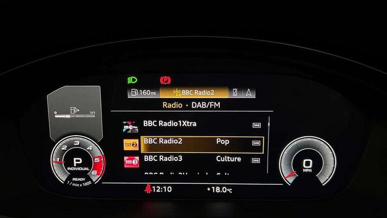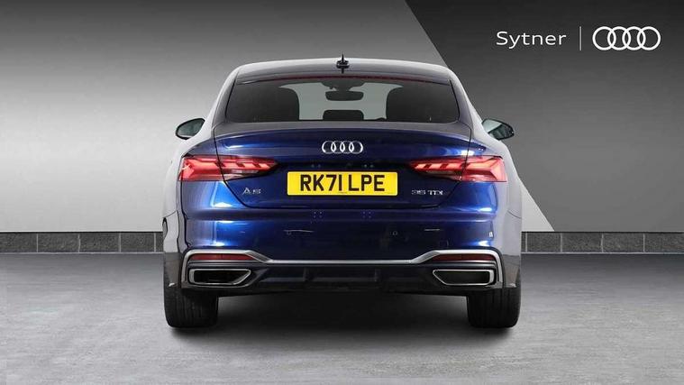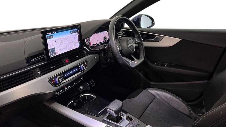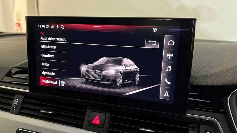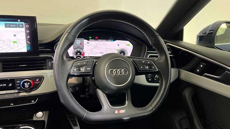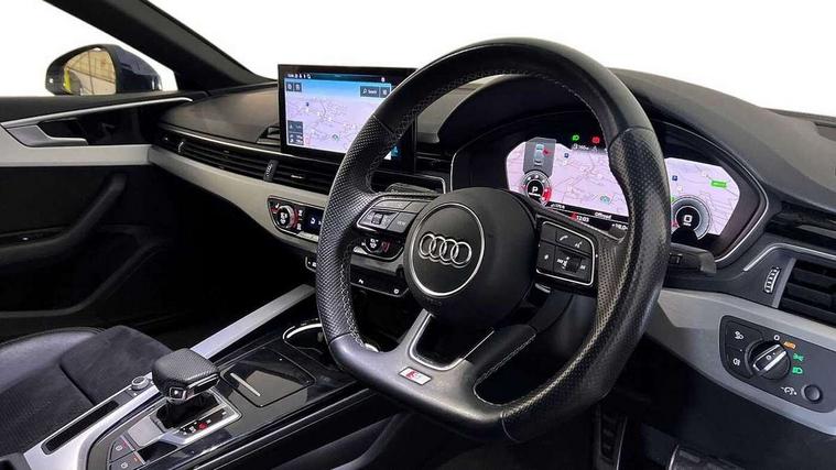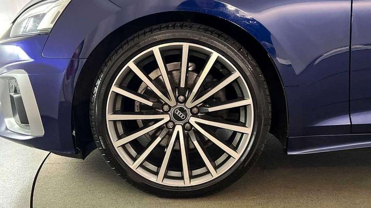 Audi connect safety and service (e-call), Audi connect with Amazon Alexa Integration, Audi drive select (Auto, Comfort, Dynamic, Efficiency and Individual), Audi parking system plus with front and rear sensors, Audi smartphone interface, Audi virtual cockpit - 12.3" full colour digital instrument cluster, vehicle/engine speed, Radio/media information+Driver assistance systems, Automatic start-stop system with coasting functionality and efficiency programme, Bluetooth interface, Electro-mechanical power steering, Email, calendar and text messages displayed via MMI, MMI nav+ with MMI touch - 10.1" high resolution MMI display, touch sensitive, 3D map, route/country info, dynamic route guide, personal route assist, Power operated tailgate, Rear view camera, Service interval indicator, Voice control system, Diesel particulate filter, Sports suspension lowered by 23mm, 8 passive loudspeakers, CD player, DAB digital radio reception, Two additional USB ports for rear passenger in rear centre console, Two SDXC card slots, Audi matrix LED headlights with LED rear lights + dynamic front and rear indicators, Auto dimming rear view mirror, Body colour bumpers, Body colour door handles, Body colour front spoiler lip, Body colour side sill trim, Body coloured door mirrors, Electric adjustable heated door mirrors, Electric folding door mirrors, Electric front windows, Front fog lights, Honeycomb structure radiator grille in grained matt black, LED daytime running lights, Matt aluminium silver tailpipe trim, Privacy glass, Rain and light sensors, S line badges on front wings, S line front and rear bumpers with side skirts, S Line rear diffuser in matt titanium black with trim strip in matt aluminium silver, Side air inlets in grained matt black with matt aluminium silver inlay, Windscreen with acoustic glazing, 4 way electric lumbar support for driver and front passenger, 40/20/40 split folding 3 seater rear bench seat, Adjustable steering column, Black cloth headlining, Black perforated leather gearknob, Contrast stitching on seats, steering wheel and gear lever gaiter, Deluxe 3 zone electronic climate control, Front centre armrest, Front head restraints, Front/rear floor mats, Heated front seats, Illuminated door sill trim with S logo, ISOFIX child seat mounting and top tether, Luggage compartment mat, Manual seat adjustment, Rear headrests, Stainless steel pedals, Sunvisors with vanity mirrors, Tool kit, LED interior light pack - A5/RS5, 3x3 point rear seatbelts, 6 airbags - Driver, front passenger, curtain and side airbags, Electromechanical parking brake, Electronic Stabilisation Control (ESC) including ABS, ASR and EDL, Front passenger airbag deactivation, Height adjustable front seatbelts, Hill hold assist, Multi collision brake assist, Pop-up bonnet for pedestrian protection, Pre sense city, Seatbelt monitoring, Tyre pressure warning, Variable restraint system, Warning triangle and first aid kit, Anti theft alarm system, Anti theft wheel bolts, Immobiliser, Keyless Go, Remote central locking, Matt brushed aluminium inlays, Tyre repair kit,