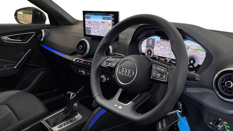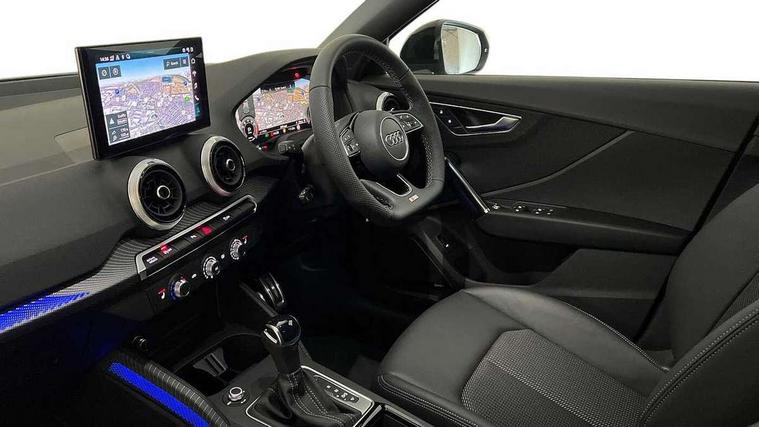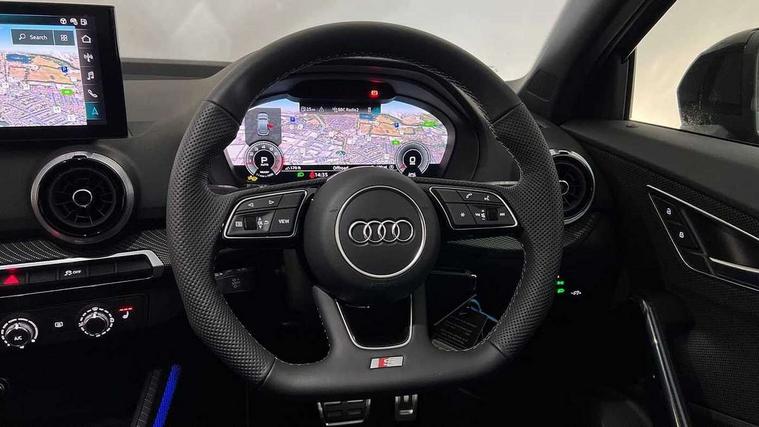 3D map display, Audi connect navigation and infotainment includes innovative services, Audi connect remote and control connects your vehicle to your smartphone, Audi drive select: S tronic - power steering assistance + engine + gearshift (modes: comfort, auto, dynamic, efficiency, individual), Audi smartphone interface - Apple carplay/Android Auto, USB connect, 2xSDXC card readers, voice control for navi, telephone, music and 3rd party apps, Audi virtual cockpit, Automatic start/stop system with recuperation, Bluetooth interface includes bluetooth audio streaming, Camera based traffic sign recognition, Cruise control, Distraction and Fatigue warning, E-call, Jukebox hard drive memory for music (10GB), Lane departure warning, MMI navigation plus with 8.8" touchscreen, Natural voice recognition, Power operated tailgate, Progressive steering, Rear parking sensors, Sport suspension, 6 passive loudspeakers, DAB Digital radio, USB type C port, Audi beam, Auto dimming rear view mirror, Black window trims, Bumper in full body colour paint finish, Electrically adjustable, folding, auto dimming and heated door mirrors with integrated LED side indicators, Front windscreen with grey tinted sunband, LED daytime running lights, LED headlights with dipped beam, high beam, position lights, indicators, LED rear lights, LED third brake light, Privacy glass - dark tinted rear and rear side windows from B-pillar backwards, Rear side wing doors, Rear wiper, Variable front intermittent wipers, Wheel arch trims in manhattan grey, 12V socket in front, 3 seat bench in 2nd row, 3 spoke flat bottomed multi-function leather sport steering wheel with gear shift paddles with S logo, 4-way electric lumbar support for front seats including manual seat height adjustment for both front seats, 60/40 split folding rear seat bench, Black carpets, Black cloth headlining, Front and rear head restraints, Front centre armrest, Front sport seats, Front/rear floor mats, Height/reach adjust steering wheel, Illuminated door sill trims with S logo, ISOFIX child seat mounting in front passenger and rear outer seats, Manual air conditioning, Single front passenger seat, Stainless steel pedals, Black styling pack - Q2, 3x3 point rear seatbelts, 6 airbags - Front, curtain and front side airbags, Electromechanical parking brake, Electronic stabilisation control including ABS, ASR and EDL, Front passenger airbag deactivation, Hill hold assist, Pre-sense front with pedestrian recognition, Seatbelt monitoring, Tyre pressure warning light with visual and acoustic warning, Warning triangle and first aid kit, Anti theft wheel bolts, Electronically operated child locks, Remote central door locking, Thatcham category 1 alarm, Aluminium interior element, Black dashboard, Gloss black centre console, Matt brushed aluminium trim inlays, Tool kit,