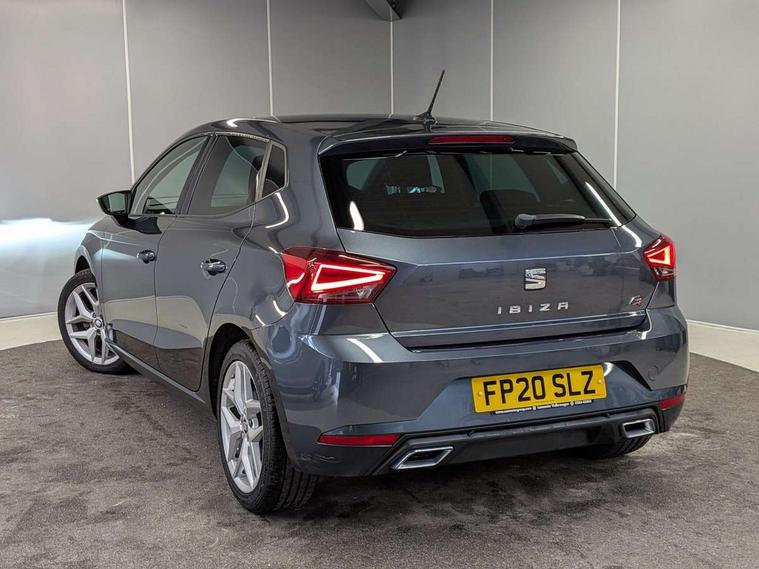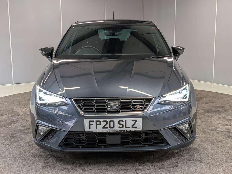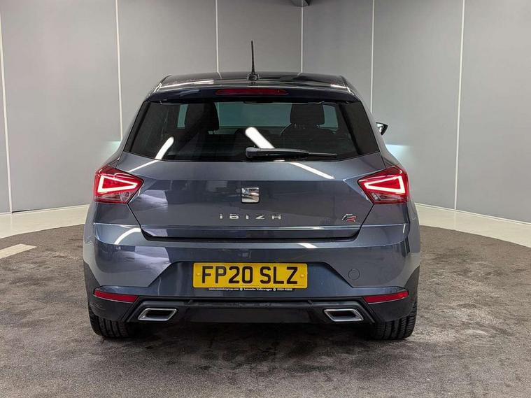 'Lights On' Reminder warning buzzer, Bluetooth Handsfree Phone Connection, Cruise control, Digital clock, Full Link Smartphone Integration with Mirror Link, Apple Car Play, Google Android Auto, Low fuel warning light, Outside temperature gauge, Power Steering, Satellite navigation system with 3D mapping, 8" touch screen, voice control and additional USB port, SEAT Drive profile, SEAT logo boot release, Trip computer, Sports suspension, 6 speakers, Auxiliary input socket, CD player, Digital Audio Broadcast (DAB) Tuner, Radio/MP3 player, SD card slot, SEAT USB media cable, Steering wheel mounted controls, USB port, Anti theft roof antenna, Auto dimming rear view mirror, Automatic headlights, Automatic rain sensing wipers, Body colour bumpers, Body colour door handles, Brilliant black door mirrors, Chrome front grille frame, Chrome grille, Coming/leaving home lighting function, Cornering front fog lights, Dark tinted rear windows, Electric folding door mirrors, Electric front windows, Electric headlight adjustment, Electrically adjustable and heated door mirrors, Exclusive FR rear bumper, Full LED headlights, LED daytime running lights, LED tail lights, Rear fog lights, Twin exhaust pipes, 3 rear headrests, 60/40 split folding rear seat, Air conditioning, Door and steering wheel ice metal decorative inserts, Driver's sunvisor with ticket holder/vanity mirror, Dust/pollen filter, Flat bottomed perforated leather steering wheel with red stitching and FR logo, Front courtesy lights, Front cupholders x 2, Front reading lights, Gear shift indicator, Glovebox, Height adjustable driver's seat, Height adjustable front/rear head restraints, Height adjustable passenger seat, Height/reach adjust steering wheel, Illuminated boot, Instrument lighting with brightness control, Leather dashboard, Leather handbrake, Multi-colour ambient interior lighting, Nora cloth upholstery, Passenger sunvisor, Rear top tether child seat ISOFIX attachment, Sports seats, Full LED headlight pack - Ibiza, 3 point seatbelts on all 3 rear seats, ABS, Active front headrests, Child locks on rear doors, Curtain airbags, Driver/Front Passenger airbags, ESP+EBA, Front assist (AEB), Front passenger airbag deactivation, Front side airbags, Hill hold control, Multi-Collision braking, Seatbelt warning, Tiredness recognition system, Tyre pressure monitoring system, Electronic engine immobiliser, Locking wheel bolts, Remote central locking + deadlocks, Volumetric alarm with back up horn, 17" Dynamic alloy wheels,