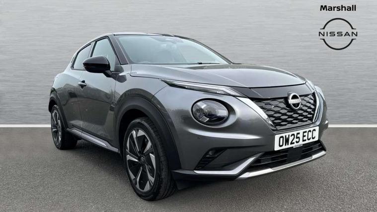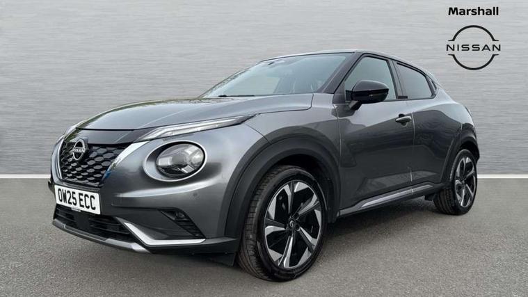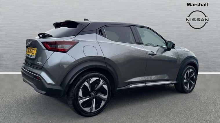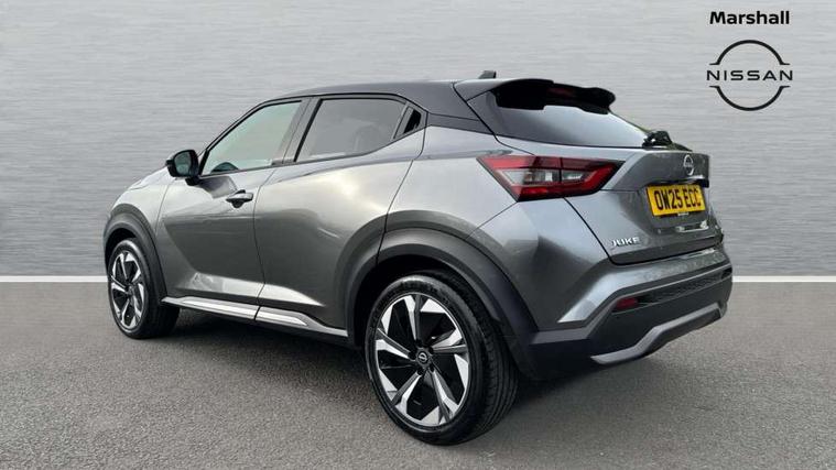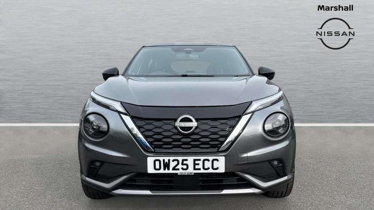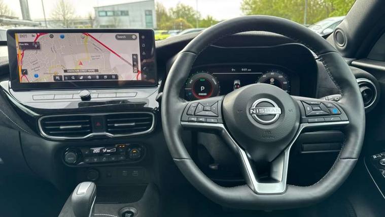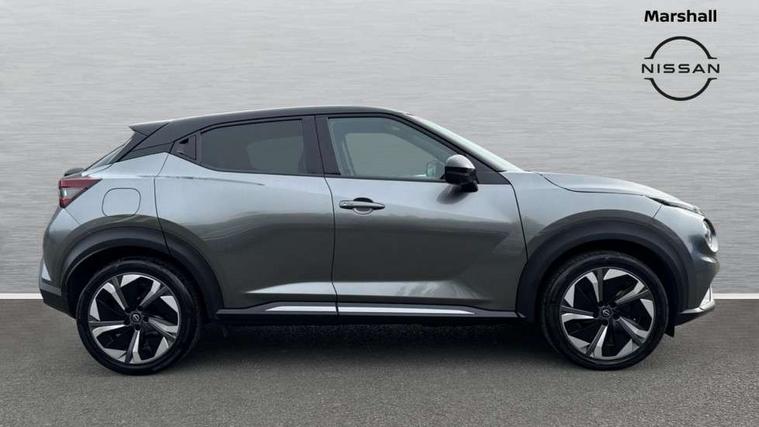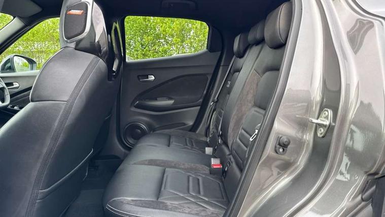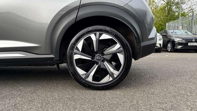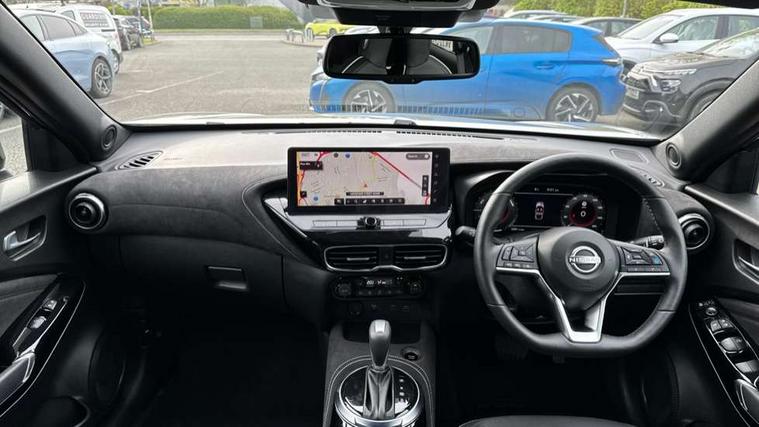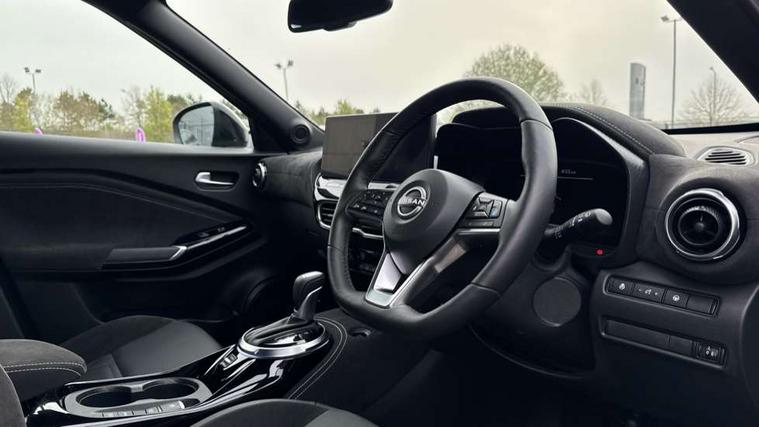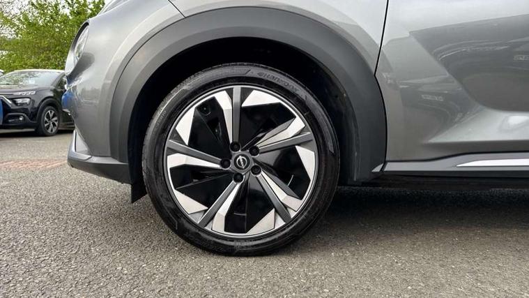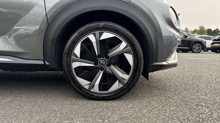 12.3" full colour TFT screen combimeter, Drive modes select (Eco, normal and sport), e-Pedal step, Emergency and breakdown call, EV mode switch, Front parking sensor, Intelligent driver alert system, Intelligent lane intervention, Lane departure warning system, Nissan connect 12.3" touch screen entertainment system, Nissan connect nav with TomTom traffic, Nissan connect services, Outside temperature sensor, Power Steering, Rear parking sensor, Stop/start button, Traffic sign recognition, Trip computer, Voice recognition, WiFi connectivity, Wireless Apple CarPlay and Google Android auto, Wireless Smartphone charger, 10 Bose speakers 8 speakers and 2 headrest speakers for driver/passenger seats, 2 X Rear console USB port, Bluetooth system, USB, Aux-in and 12V socket, Bose personal plus audio system, DAB Digital radio, Auto dimming frameless rear view mirror, Automatic hazard signal with emergency stop signal, Body colour door handles, Electrically adjustable door mirrors with integrated indicators, Follow me home headlights, Front and rear electric window with one touch driver window, High beam assist, LED 3rd brake light, LED daytime running lights, LED front fog lights, LED headlamps, LED rear fog lamp, LED rear lamps, One touch passenger window, Rear privacy glass, Rear side wing doors, Rear wiper, Roof spoiler, Shark fin roof antenna in solid Black, Solid black door mirrors, Solid black front bumper/rear bumper and side skirts inserts, Three blink turn signal, 3 height adjustable rear headrests, 3 seat bench in 2nd row, 60/40 split folding rear seat, Card holder on driver sunvisor, Door ambient lighting, Driver seat back pocket, Driver side rear coat hanger, Driver/passenger sunvisors and vanity mirrors, Front and rear cabin lights, Front armrest, Front door pockets with bottle holders, Front head restraints, Front/rear passenger grab handles, Gear console ambient circle lighting, Height adjustable driver's seat, Internal chrome door handles, Luggage board, Luggage space lighting, Monoform sporty seats, Multifunction steering wheel, Passenger seat back pocket, Rear door bottle holders, Single front passenger seat, Smooth synthetic leather steering wheel, Synthetic leather kneepad, Synthetic leather shift knob, Telescopic steering wheel adjustment, Two cupholders in front centre console, Two rear isofix child seat anchorage points with top tether, Welcome light and console tray ambient lighting, Comfort pack - Juke, Heat pack with height adjustable passenger seats - Juke, Interior personalisation pack - Juke, ProPilot pack - Juke Auto, Satin grey exterior personalisation pack - Juke, ABS with EBD and brake assist, Active ride control, Active Trace Control, Driver and passenger airbags, Driver and passenger side airbags, Electric handbrake with auto hold function, Electronic Stability Programme (ESP), Front and rear curtain airbags, Height adjustable seatbelts, Hill start assist, Intelligent emergency braking with pedestrian and cyclist recognition, Rear door child safety locks, Seatbelt reminder for driver/front passenger and rear seats, Three 3 point rear seatbelts, Traction control, Tyre pressure monitoring system, VDC Dynamic Vehicle Control, Alarm, Immobiliser, Intelligent key and start push button with walk away lock and approach unlock functions, Remote central locking, 19" Aero alloy wheels, Tyre puncture repair kit,