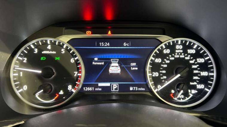 7" full colour TFT screen combimeter, 8" infotainment colour display with touch screen, Apple CarPlay and Google Android auto, Drive modes select (Eco, normal and sport), Emergency and breakdown call, Front parking sensor, Idle start/stop system, Intelligent lane intervention, Lane departure warning system, Nissan connect nav with TomTom traffic, Nissan connect services and Wifi connection, Outside temperature sensor, Power Steering, Rear parking sensor, Traffic sign recognition, Trip computer, Gasoline particulate filter, 6 speakers, Bluetooth system, USB, Aux-in and 12V socket, DAB Digital radio, Rear console USB port, Auto dimming interior rear view mirror, Automatic hazard signal with emergency stop signal, Body colour bumpers, Body colour door handles, Electrically adjustable door mirrors with integrated indicators, Follow me home headlights, Front and rear electric window with one touch driver window, Heated and auto folding door mirrors, High beam assist, LED daytime running lights, LED headlamps, LED rear fog lamp, LED rear lamps, Rain sensor windscreen wipers, Rear privacy glass, Rear wiper, Three blink turn signal, 3 height adjustable rear headrests, 60/40 split folding rear seat, Automatic climate control, Card holder on driver sunvisor, Cloth upholstery, Driver and passenger sliding and reclining seats, Driver side rear coat hanger, Driver/passenger sunvisors and vanity mirrors, Front and rear cabin lighting, Front armrest, Front door pockets with bottle holders, Front head restraints, Front/rear passenger grab handles, Grey synthetic leather kneepad, Height adjustable driver's seat, Internal chrome door handles, Leather gearshift knob, Leather steering wheel, Luggage board, Luggage space lighting, Monoform sporty seats, Multifunction steering wheel, Rear door bottle holders, Steering wheel mounted gearshift paddles, Telescopic steering wheel adjustment, Two cupholders in front centre console, Two rear isofix child seat anchorage points with top tether, Voice recognition switch on steering wheel, Welcome light and console tray ambient lighting, ABS with EBD and brake assist, Active ride control, Active Trace Control, Driver and passenger airbags, Driver and passenger side airbags, Electric handbrake with auto hold function, Electronic Stability Programme (ESP), Front and rear curtain airbags, Height adjustable seatbelts, Hill start assist, Intelligent emergency braking with pedestrian and cyclist recognition, Seatbelt reminder for driver/front passenger and rear seats, Single tone horn, Three 3 point rear seatbelts, Traction control, Tyre pressure monitoring system, VDC Dynamic Vehicle Control, Ventilated rear brake discs, Alarm, Immobiliser, Intelligent Key with push button starter, Remote central locking,