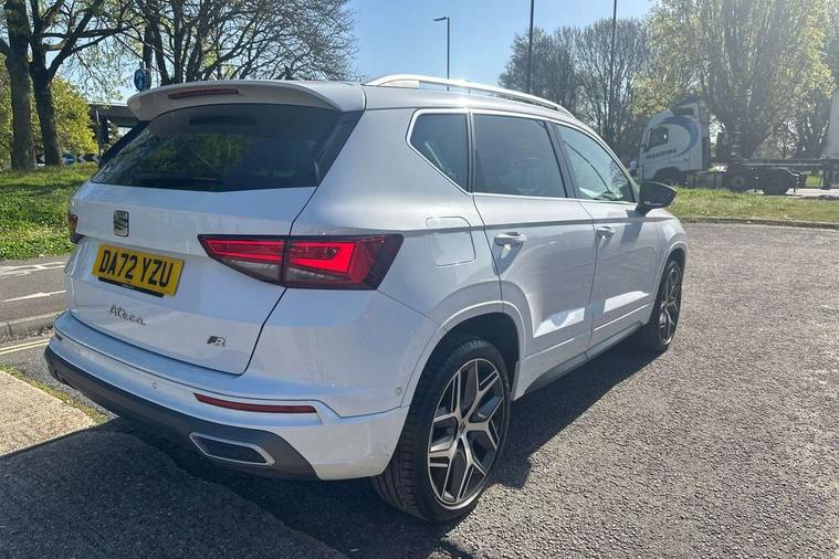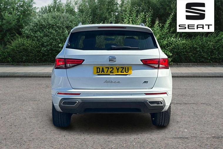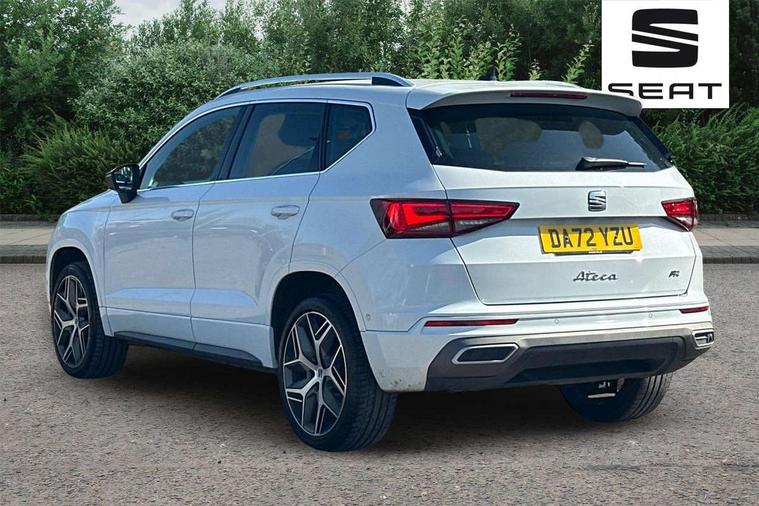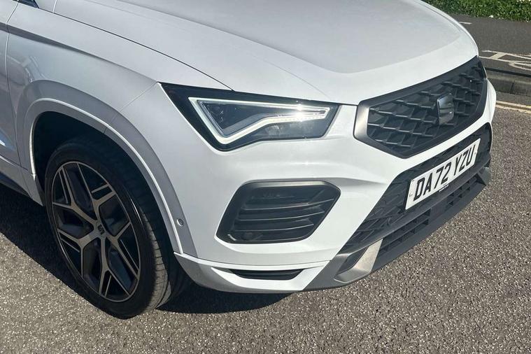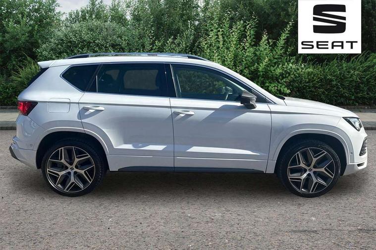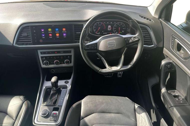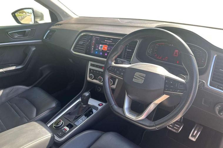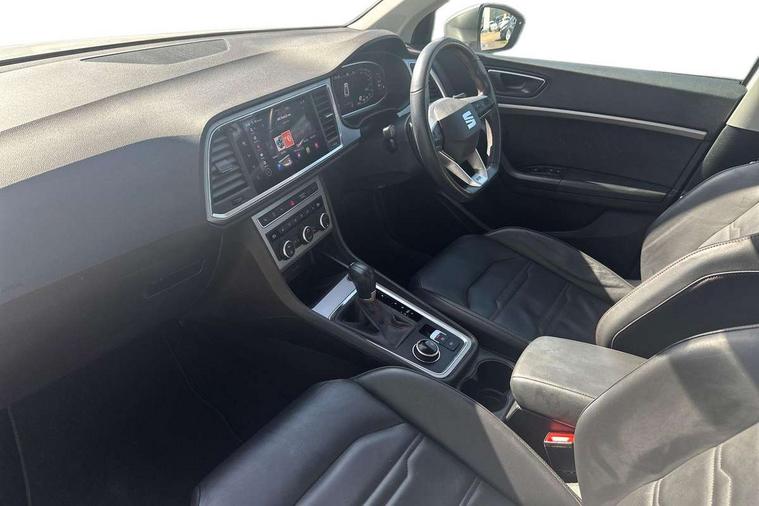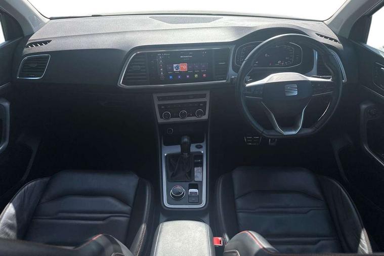 10" Digital cockpit, Cruise control system with speed limiter, E-call, Outside temperature gauge, Progressive power assisted steering, SEAT drive profile with driving experience button - Normal, Sport, Eco and Individual mode, gearshift, steering and throttle response, Self parking functionality (includes front and rear parking sensors), Start/stop system, Tailgate, Trip computer, Wireless full link smartphone integration, Wireless phone charger, Steering wheel mounted audio/phone controls, Body colour bumpers, Body coloured wheel arch surrounds, Chrome front grille frame, Chrome roof rails, Chrome side window trim, Dark tinted rear windows, Daytime running lights, Door mirrors with welcome light silhouette, Dynamic headlight range control with self adjusting whilst driving, Electric adjustable/heated/folding door mirrors, Front and rear electric windows, Full LED headlamps with lens and LED front fog lamps with cornering function, Illuminated aluminium front door sill, LED rear tail lights with dynamic indicators, Rear fog lights, Rear side wing doors, Rear wash/wipe, Roof spoiler, Simulated exhaust pipes in chrome frame, Third brake light, Variable front intermittent wipers, 12v socket in front, 3 seat bench in 2nd row, 60/40 split folding rear seat, Aluminium pedals, Dual zone climate control, Electric adjustable driver seat with lumbar adjustment, Front and rear head restraints, Front centre armrest, Front seat back storage pockets, Heated front seats, Height adjustable passenger seats with lumbar adjustment, ISOFIX points in outer rear seats with top tether anchorage points, Leather steering wheel and gear knob, Leather upholstery with Comfort seats, Rear armrest and easy back seat release mechanism from boot, Single front passenger seat, Steering wheel mounted gearshift paddles, Convenience pack - Ateca, Interior lighting pack - Ateca, Navigation system pack with DAB - Ateca, 3x3 point rear seatbelts, ABS, Traction control system (TCS), Electronic stability control (ESC) and Electronic differential lock system (XDS), Airbags - Driver and front passenger airbag with deactivation, front side, two curtain and driver's knee airbags, Electric parking brake with auto hold function, Front and rear seatbelt reminder, Front assist with autonomous emergency braking, Hill hold control, Manual rear child locks, Single tone horn, Tiredness recognition system, Traction control, Tyre pressure monitoring system, Alarm, Keyless entry, Locking wheel bolts, Remote central locking, Chrome interior detailing, 19" Exclusive machined alloy wheels with decorative inserts 36/7 in cosmo grey,
