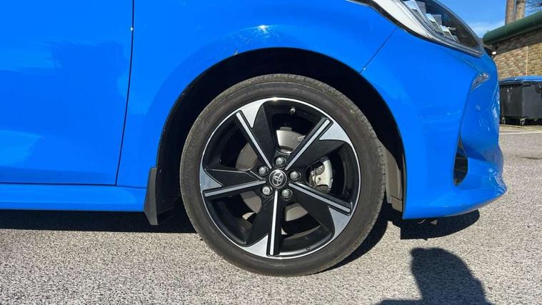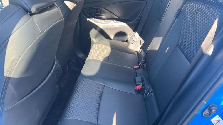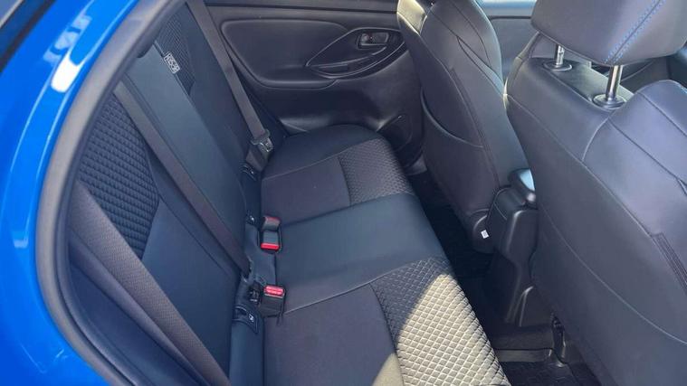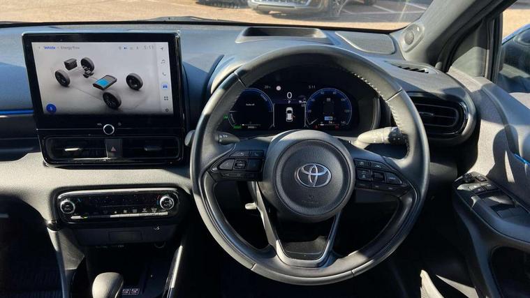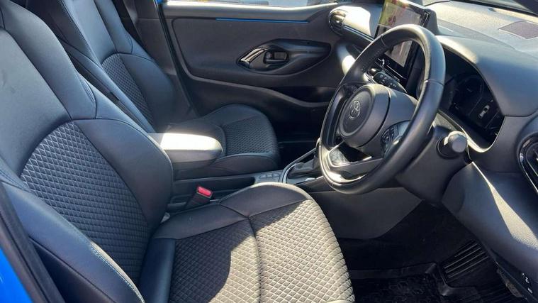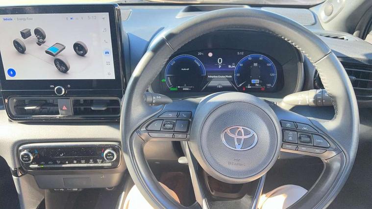 12.3" Digital Combimeter, Adaptive cruise control, Adjustable speed limit with speed warning, Bluetooth connectivity, Colour binocular inspired displays with digital speedometer, E-call, Electric power steering, Head up Display, Hybrid energy display, Multi information display switches on steering wheel, Reversing camera, Tailgate, Voice recognition, Wireless charger, Vehicle Stability Control (VSC), 10.5" Toyota smart connect multimedia with wireless smartphone integration incl apple car play and cloud Navigation, 6 speakers, 8 Speakers, JBL speaker system, Toyota Touch 3 system with DAB radio, USB connection, Acoustic windscreen glass, Auto windscreen wipers, Automatic headlights, Body coloured door mirrors, Dark chrome lower meshed front grille, Electric adjustable heated door mirrors, Follow me home headlights, Front auto power windows with anti jam protection, Full LED rear lights, LED daytime running lights, LED front fog lights, LED front light guide, LED Headlights, LED High mounted stop lamp, LED Indicators, LED rear light guide, Manual headlight levelling, Painted chequered front grille with hot stamp in mesh design, Rain sensor, Rear auto power windows with anti jam protection, Rear privacy glass, Rear side wing doors, Rear spoiler, Rear wiper, Shark fin antenna, Turning signal integrated indicators in door mirrors, Variable front intermittent wipers, 3 adjustable rear headrests, 3 seat bench in 2nd row, 3 spoke leather steering wheel, 60/40 split folding rear seat, Active headrests, Adjustable boot height, Black roof lining, Coat hooks in rear grab handles, Cup holders (2 front & door), Data Communication Module (DCM) connected services, Dual zone automatic air conditioning, Front armrest, Front sport seats, Glovebox, Height adjustable driver's seat, Height adjustable passenger seat, Isofix seat fixing, Leather gearshift, Map pockets on the backs of the front seats, Nanoe-X air purifier, Partial leather upholstery, Pollen filter, Shopping bag hooks, Single front passenger seat, Tilt/telescopic steering column, Safety pack - Yaris, 3 point seatbelts on all rear seats, ABS+EBD+Brake assist, Electronic parking brake, Emergency brake light system (EBS), Front passenger airbag on/off switch, Front seatbelt reminder, Hill start assist control (HAC), Rear child proof door locks, Rear seat belt reminder, Supplemental Restraint System (SRS) 8 airbags: Driver & passenger's airbags, dual side curtain airbags, side impact airbags, front centre airbag, Toyota Safety Sense 3 with over the air updates, Tyre pressure warning system, 2x Master key, Alarm/immobiliser, Keyless smart entry with push button start, Remote AC via MyT, Remote locking via MyT, Remote powered central double locking doors, Smart digital key, Piano black interior trim, Soft touch instrument panel, 17" Black Machined-face, 5 double spoke alloys wheels, Space saver spare wheel,