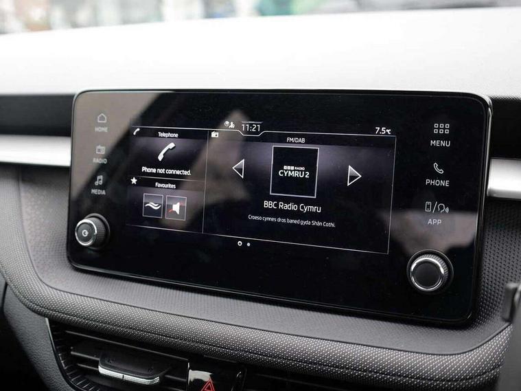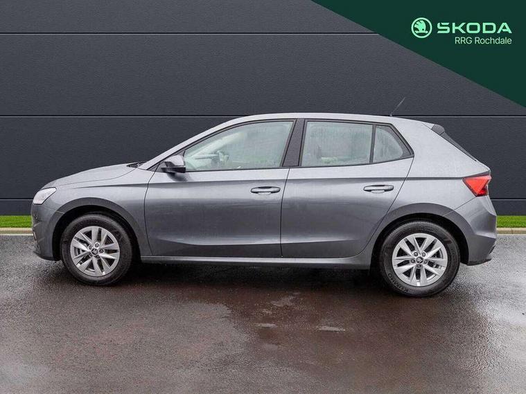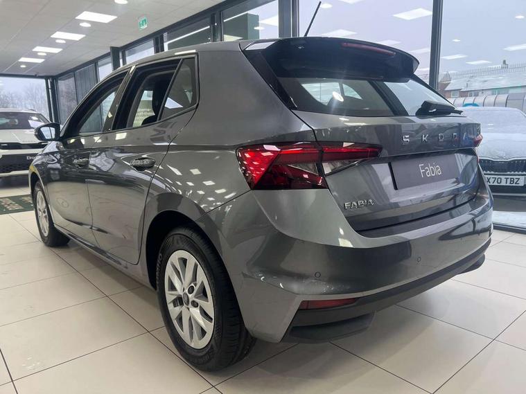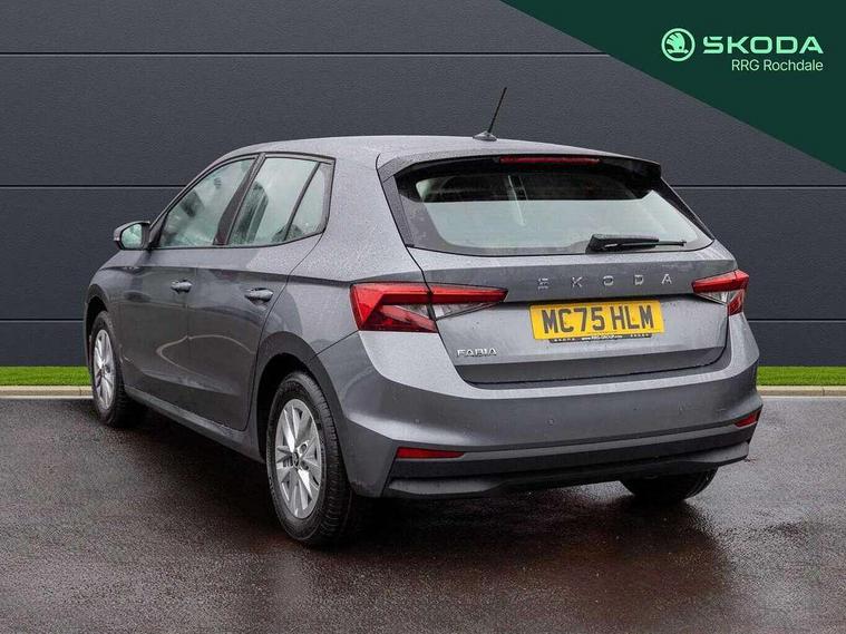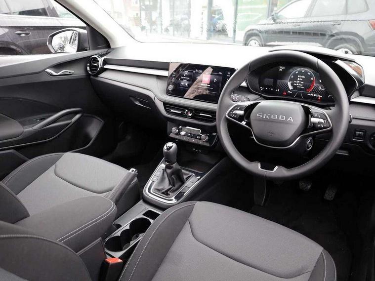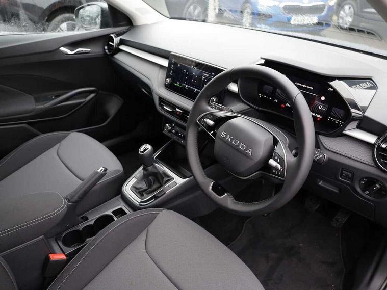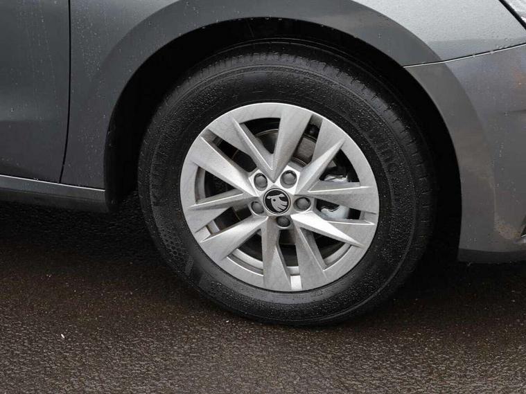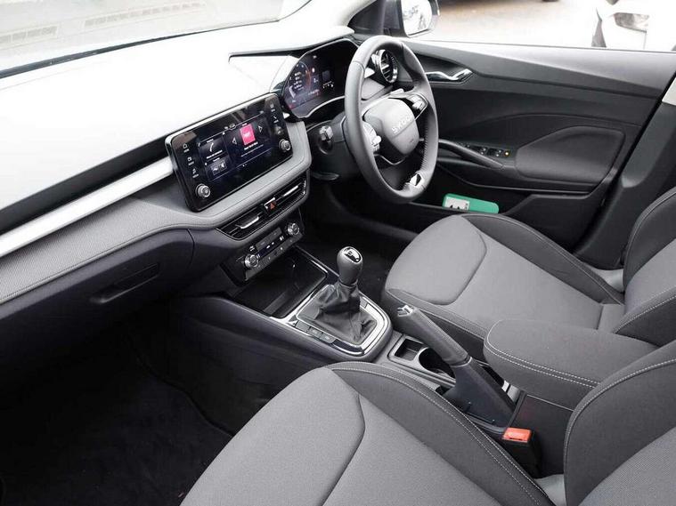 8" Digital instrument display, Advanced driver attention and drowsiness monitor, Bluetooth connection, Driver alert system, Electromechanical power steering, Exterior temperature gauge, Service interval indicator, Traffic sign recognition, Wireless SmartLink for Apple CarPlay and Android Auto, 6 Speakers (4 in front and 2 in rear), 8.25" Skoda infotainment touchscreen display, Auxiliary socket for external MP3 player, DAB digital radio reception, Auto dimming rear view mirror, Body colour door mirrors, Body coloured bumpers, Door mirror integrated indicators, Front and rear electric windows, Front window wiper intermittent control, Headlight range control - Automatic, LED 3rd brake light, LED daytime running lights with coming and leaving home feature, LED rear lights, Rear LED fog light, Rear side wing doors, Rear window wiper with washing nozzles, Roof mounted spoiler, SKODA tailgate lettering in chrome, Unique dark chrome design logo on alloy wheels, 2 reading lights in front and 2 reading lights in rear, 3 rear headrests, Backrest split and folding, Central console with removable cup holder and storage box, Chrome handbrake release button, Dual zone air conditioning with climatronic electronic control, Fabric upholstery, Front centre armrest, Gearshift knob/handle in leather, Grain satin black interior door handles, Hand brake lever handle in leather, Height adjustable front headrests, Height adjustable front seats, Height adjustable steering wheel, ISOFIX and TopTether anchorage points to the outer rear seats, ISOFIX and TopTether on the front passenger seat, Luggage compartment lighting, Manually adjustable lumbar support in front seats, Pollen filter, Rear seat bench unsplit, Single front passenger seat, Skoda lettering on steering wheel, Storm grey headlining, Sun visors with mirror and airbag label on passenger side, Textile floor mats, Ambient lighting pack - Fabia Hatchback, 3-point height adjustable front seats belts with pretensioner and force limiter, Automatic warning lights in case of crash, Driver and passengers airbag with switch off function, e-Call+, ESC including ABS, MSR, ASR, EDS, HBA and XDS, Front and rear seat belt warning, FRONT ASSIST (AEB City and AEB Inter Urban), Front side airbags, Head airbags, One tone horn, Pedestrian protection, Three rear 3-points safety seat belts with pretensioner and force limiter including stop function for outer rear seat belts, Tyre pressure monitoring system, Anti-theft alarm system including immobiliser, interior monitoring, backup horn, and towing protection, Central locking with radio remote control, interior controls, SAFE function and 2 foldable keys, Black painted air vents, Grain satin black central console cover, Metallic grey upper decorative trim, Satin black door and side trim panel in front, Textile Kota grey lower decorative inserts, Anti-theft wheel bolts protection, Super-low rolling resistance tyres,