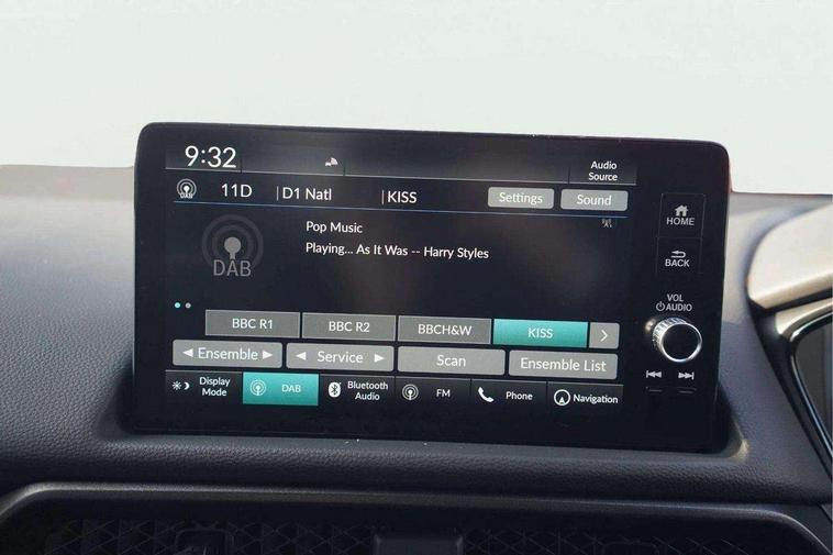 10.2" Multi information display, Adaptive cruise control, Adaptive motion for electric power steering, Adjustable speed limiter, Agile handling assist, BLIS (Blind Spot Information System) with Cross Traffic Monitor, Bluetooth hands free telephone connection, Driver attention monitoring system, Driver monitoring camera, Driving modes (Comfort/GT/Sport), Economy mode, Electric power steering wheel with variable gear ratio steering, Emergency call service, Emergency stop signalling system, Forward collision warning, Front and rear parking sensors, Honda CONNECT with Navigation 9" touchscreen, AM/FM/DAB, Apple Carplay and Android Auto, live traffic info, Honda S+Shift, Idle stop, Intelligent speed limiter, Lane departure warning system, Lane keep assist, Low speed following, Power meter, Rear parking camera, Road departure mitigation, Smartphone wireless charging, Tailgate, Traffic jam assist, Traffic sign recognition, Wireless apple carplay, Adaptive performance damper, Vehicle stability assist, 2x Type C USB Front socket (1 data & 1 charge), Active noise and sound control, Centre speaker, Digital Audio Broadcast (DAB) Tuner, Front tweeters, Premium BOSE audio system with 8 speakers, Rear glass print antenna, Steering wheel mounted audio controls, Subwoofer, Active cornering lights, Adaptive driving beam, Aspherical driver door mirrors, Auto dimming rear view mirror, Auto headlight adjuster, Auto headlights, Automatic coming/leaving home lighting function, Automatic rain sensing wipers, Black chrome grille, Black H badge, Blue front and rear accents, Body colour door mirrors, Body colour exterior door handles - flush, Double horizontal lines rear lights, eHEV emblem, Electric adjustable heated door mirrors, Electric front windows, Electrically folding door mirrors, Front wings style daytime lights, Gloss black window garnish, Headlight extension black, High beam support system with auto high beam, High level LED brake light, LED daytime running lights, LED front turn type, LED Headlights, LED rear lights, Pop up hood, Privacy glass, Single hidden exhaust pipe, 2 seat bench in 2nd row, 60/40 split folding rear seat, Ambient roof light, Cargo net hooks, Courtesy Light, Driver and front passenger seat armrests, Driver's seat height adjustment, Driver/passenger front seatback pockets, Dual climate control air conditioning system, Flat bottom steering wheel with alloy paddle shifter, Front accessory power socket, Front and rear ambient footwell lighting, Front map lights, Genuine leather steering wheel, Glovebox light, Heated front seats, Isofix points/i size, Leather/fabric upholstery with sport seats, Meter Illumination white, Platinum chrome interior door handles, Rear head restraints, Single front passenger seat, Stainless steel sports pedals, Sunglasses holder, Sunvisors with illuminated vanity mirrors, Tilt/telescopic adjustable steering wheel, Tonneau cover, Trunk light, 2 rear seatbelts, ABS+EBD+Brake assist, Airbags - driver and front passenger, Airbags - Knee (AS), Airbags - Knee (DR), Brake hold function, Collision mitigation braking system, Collision mitigation throttle control, Deflation detection system, Driver SRS airbag (single stage inflation), Electronic parking brake with auto hold, Front and rear curtain airbags, Front and rear seat belts with emergency locking retractor (ELR), Front centre airbag, Front side airbags, Hill start assist, Passenger airbag deactivate switch, Regenerative braking/deceleration paddle control, Whiplash lessening front headrests, Immobiliser, Mirrors and windows key fob, Remote central locking with 2 jack knife keys, Security alarm, Selectable door unlock, Smart entry + Smart start, Superlocking, Tilt sensors, Ultrasonic security sensor, Tyre repair kit,