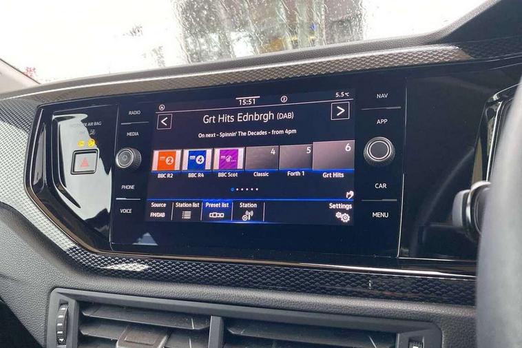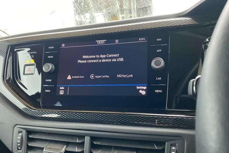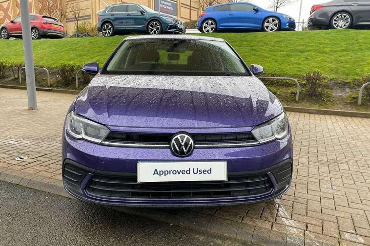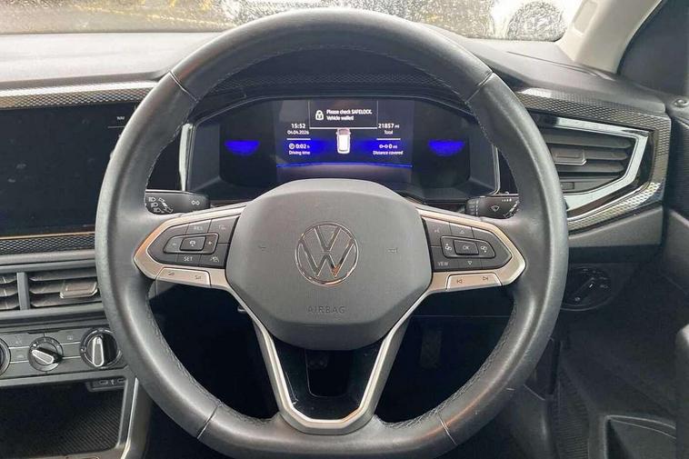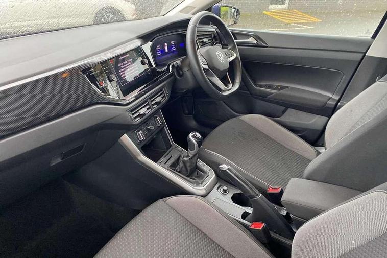 Adaptive cruise control without follow-to-stop and speed limiter, Bluetooth mobile phone interface, Driver alert system, Emergency call service, Front assist system, Power assisted speed sensitive steering, Preparation for We connect and We connect plus, Speedo and rev counter, electronic odometer, trip, service interval display and fuel gauge, Standard rear axle, Travel Assist - Lane keeping system and traffic jam assist, Travel assist including emergency assist, Trip computer, Warning signal and warning light for front and rear seatbelts not fastened, Washer fluid level indicator, Wireless app connect, Front wheel drive, Rear shock absorpion, Start-stop system with battery regeneration (recuperation - energy recovery during braking), DAB Digital radio, Diversity antenna for FM reception, Front and rear 6 speakers, Automatic dimming interior rear view mirror, Body colour bumpers, Body colour door handles, Body colour door mirrors, Electric front windows, Heat insulating darkened glass in side and rear windows, Heat insulating glass windscreen, Power folding adjustable/heated exterior mirrors and front passenger exterior mirror lowering function, Rain sensor, Rear electric windows, Rear fog light, Rear side wing doors, Rear windscreen washer and wiper with interval delay, Third brake light, 12V power socket in centre console, 2 front and 2 rear reading lights, 2 USB-C ports in the front, 2 USB-C charging sockets on the center console in the rear, 3 rear head restraints, 60/40 split folding rear seat and rear seat bench not split, Chrome plated radiator grille inserts, air vent surrounds and light switch surrounds, Door and side trim panel, Driver and front passenger seat height adjustment, Driver/passenger sunvisors with illuminated vanity mirrors, Front centre armrest, Front seat backrest storage pockets, Front standard seats, Handbrake lever handle in leather, Hartley/Thomas cloth upholstery, Headliner in recycled material, Isofix child seat preparation easy-fit (for two outer rear seats, and front passenger seat) compatible with I-size, Leather trimmed gear knob, Luggage compartment cover, Luggage compartment floor, Luggage compartment lighting, Multifunction steering wheel, Single front passenger seat, Standard pedal cluster, Light and vision pack - Polo, 3 point height adj front seatbelts + pretensioners, 3x3 point rear seatbelts, ABS, Driver and front passenger airbag with front passenger airbag deactivation, Drivers and front passengers safety optimised head restraints, ESC (Electronic stability control) + EDL (Electronic Differntial lock) and ASR (Traction control), Extended and predictive pedestrian/ cyclist protection, Front curtain and side airbags with center airbag, Front disc brakes, Hill hold control, Manual child lock in rear doors, Rear drum brakes, Single tone horn, Tyre pressure loss indicator, Alarm with interior protection, Anti-theft alarm system with interior monitoring, backup horn, and towing protection, Anti-theft wheel bolts, Electronic engine immobiliser, Lava stone black gloss/matt decorative inserts in dash and front door panels, Low rolling resistance tyres,