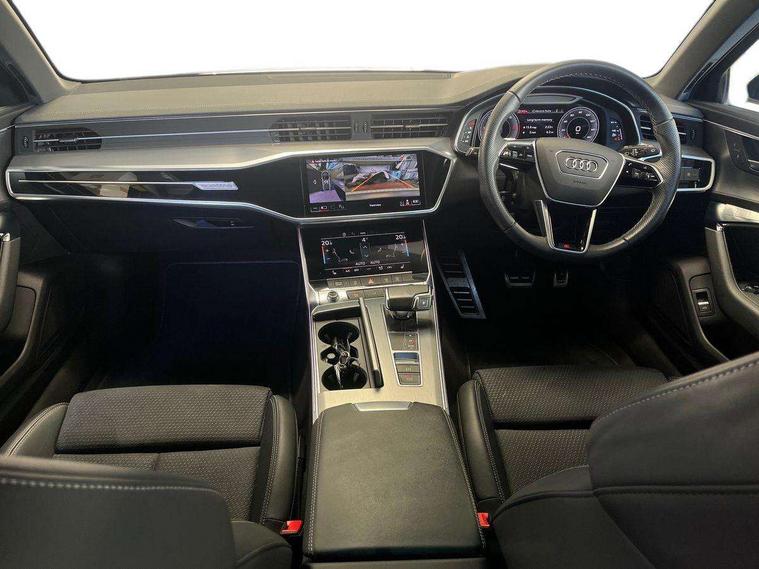 7" high resolution colour driver information display system, Audi connect safety and service (e-call), Audi connect with Amazon Alexa Integration, Audi drive select, Audi parking system plus - acoustic and visual park assist system for front and rear, Automatic start/stop system with coasting functionality, Bluetooth interface, Lane departure warning system, Power operated tailgate, Progressive steering, Rear view camera, Service interval indicator, Smartphone interface includes wireless Apple carplay/Android Auto, Voice control system, 12V Mild hybrid, 24 litre AdBlue tank, Diesel particulate filter, Quattro on demand, Sports suspension, Audi front music interface, Audi sound system, Auxiliary input socket, DAB Digital radio, USB connection, All weather LED headlights, Aluminium roof rails, Body coloured door mirrors, Electric front/rear windows, Frameless auto dimming interior rear view mirror, Front intermittent wipers, Headlight washers, Heat insulating darkened glass in side and rear windows, Heat insulating glass in windshield, LED rear lights, LED signature front daytime running light, LED third brake light, Matt black side air intake grille with inlay in matt aluminium, Privacy glass, Radiator grille in titanium black matt, single frame in chrome and horizontal struts in matt aluminium silver, Rain and light sensors, Rear side wing doors, Rear wiper, S line air inlet design with inlay in matt aluminium, S Line badge on front fender, S Line front and rear bumpers, S line rear diffuser and grille in matt black with matt aluminium tailpipes, S Line roof edge spoiler, S Line side skirts, 2 zone deluxe electronic climate control, 4 way electric lumbar support for driver and front passenger, 40/20/40 split folding 3 rear seat bench in 3 parts with rear centre armrest, Black cloth headlining, Black steering wheel insert, Electrically adjustable front seats with driver memory, Front centre armrest, Front head restraints, Heated front seats, Height/reach adjust steering wheel, Illuminated door sill trims with S logo, Illuminated sun visors with vanity mirrors, ISOFIX child seat mounting and Top Tether with front passenger airbag deactivation, Leather gear knob, Luggage compartment system, Rear headrests, S line front and rear black carpet floor mats with contrast stitching, Single front passenger seat, Stainless steel pedals and foot rest, LED Interior Ambient Lighting Pack - A6, Non smoking pack - A6, Technology pack - A6, 3 point seatbelts on all seats, Airbags - Front side, front and rear including head, Audi pre-sense front, EBD - Electronic brakeforce distribution, Electromechanical parking brake, Electronic Stability Control (ESC) including ABS, ASR and EDL, Extended pedestrian protection measures, Manual child proof rear door locks, Seatbelt monitoring, Tyre pressure warning light, Warning triangle and first aid kit, Anti theft alarm with tow away protection, Anti-theft wheel bolts and wheel loosening detection, Immobiliser, Keyless Go, Remote central locking, Black seatbelts, Matt brushed aluminium dark inlays,