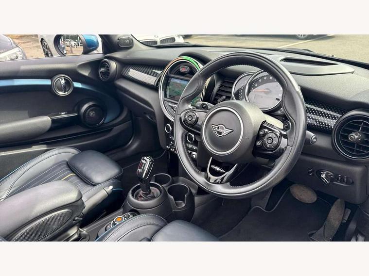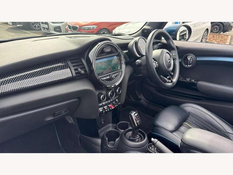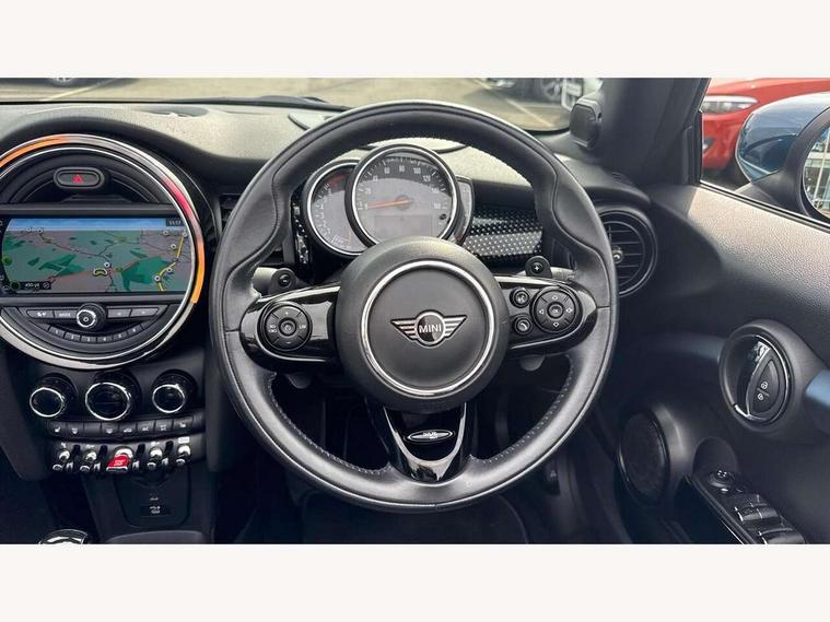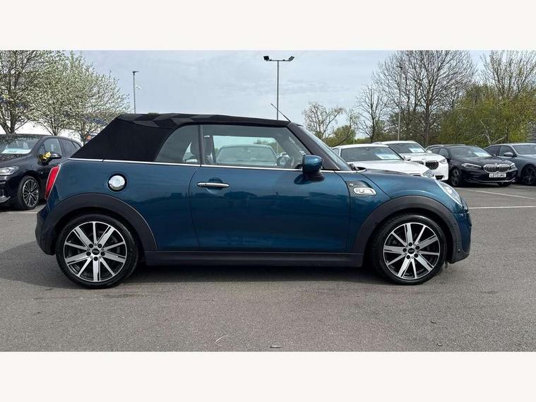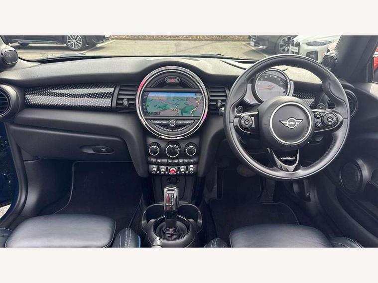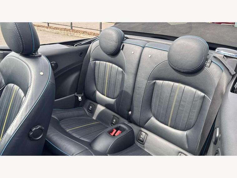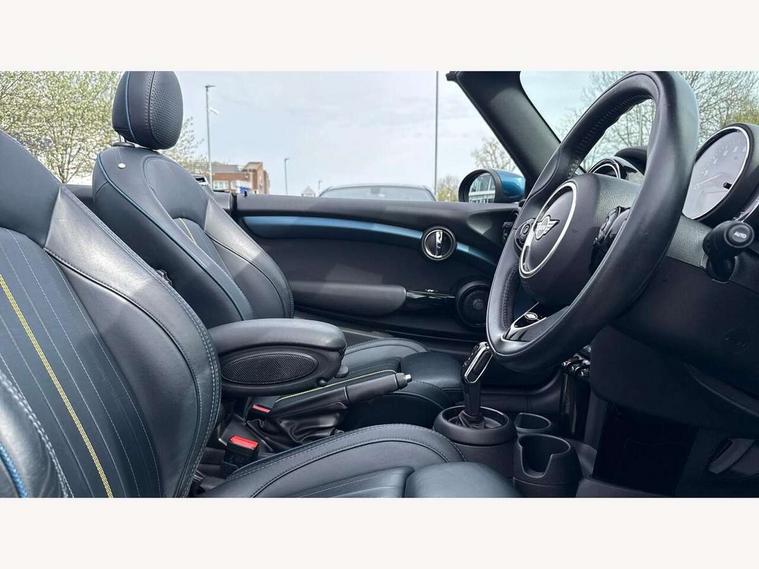 Automatic start/stop function with brake energy recuperation, Compatible mobile phone bluetooth with audio streaming, Electro-mechanical speed dependant steering assistance, Head up Display, Instrument cluster, MINI Driving Modes - centre toggle switch to control driving setting (sport, mid and green), Mini E-call, MINI TeleServices, On board computer, Rear park distance control, Service interval indicator, Double Vanos system, Fully variable valve control, High precision injection, Performance Control, Steptronic sport transmission with double clutch, 6.5" touchscreen with LED ring, FM tuner and DAB digital radio, Harman Kardon Hi Fi system with amplifier and 12 speakers, Automatic headlight activation switch, Body colour mirror caps, Bonnet scoop, Chrome border honeycomb structure radiator grille with S badge, Chrome plated fuel cap, Dynamic brake lights, Electric windows, Fully electric black softtop with integrated sunroof functionality, Heated rear window, Heated windscreen washer jets, LED headlight with closed ring and daytime driving lights, Metal door sill strips with Cooper S imprint, Metallic paint, Model logo Cooper S on right of tailgate, Rain sensor window wipers, Rear fog lights, Rear LED lights with union jack design, Side scuttle panel with integrated indicator, Sidewalk bonnet stripes with pin lines, Sidewalk design softop in black with Sidewalk pattern in titanium grey, Sidewalk side scuttle badging, Sun/heat protection glass, Two central exhaust tailpipes with chrome finisher, White indicator lenses, 12V Accessory socket in centre console, 4 lashing eyes in luggage compartment, 50/50 split folding rear seats, Chrome interior highlights, Colour line - Carbon black, Cupholders, Easy Load boot handles, Front and rear isofix with front passenger airbag deactivation, Front headrests, Front seatback storage pockets, Glove compartment, Height and length steering column adjustment, Interior lighting with 12 basic colours selectable via toggle switch in roof, Leather gearshift lever and handbrake gaiters, LED reading lights, vanity mirror lights, front foot well light and spotlight on front seats, Mechanical seat adjustment, driver seat height adjust, forward/back and front seats backrest, Mini logo projection on floor from drivers exterior mirror, MINI Yours lounge leather upholstery with Sidewalk seat badging, Multifunction steering wheel, Rear headrests, Sidewalk design brushed alloy door entry strips, Sidewalk design door bezels, Sidewalk floor mats with contrasting surround in dark petrol and decorative stitching in energetic yellow, Sidewalk illuminated interior surfaces with cockpit pattern in petrol and dark silver, Sidewalk sport leather steering wheel with Sidewalk badging and contrast sticting in petrol, Storage compartments in doors, Sunvisors with vanity mirrors, Comfort plus pack - Mini Convertible, Convertible pack with comfort access - Mini Convertible, Navigation plus pack - Mini Convertible, 3 point seatbelts on all four seats, 6 Airbags - front, side and seat belt tensioners, Active rollover protection, Anti-lock braking system (ABS), DSC - Dynamic Stability Control, Front and rear disc brakes, Hill start assist, Two tone horn, Tyre pressure monitoring system, Alarm system with tilt sensor, monitoring doors, bonnet interior and tailgate, Electronic vehicle immobiliser, Keyless Go, Chequered black interior trim, 17" Scissor spoke 2 tone alloy wheels, Tool kit, Tyre repair kit,
