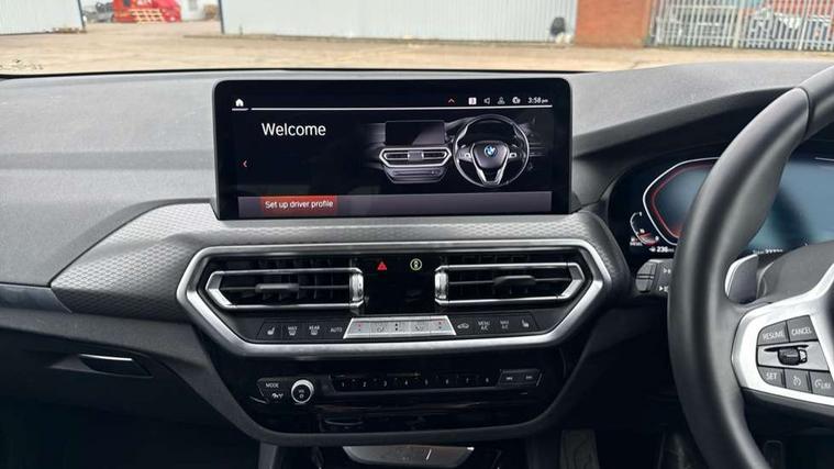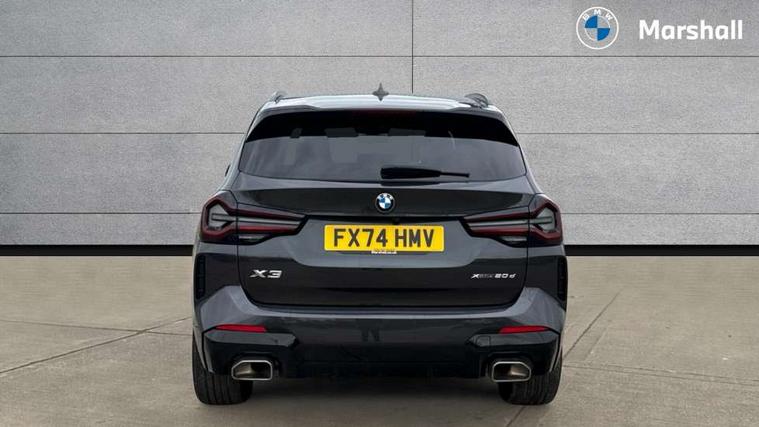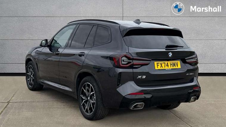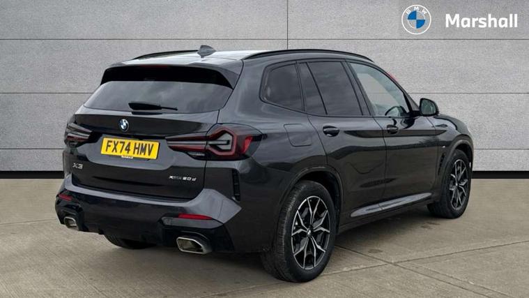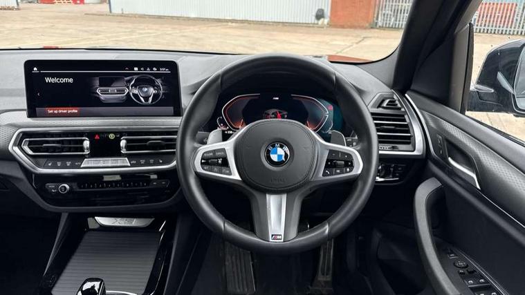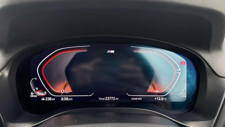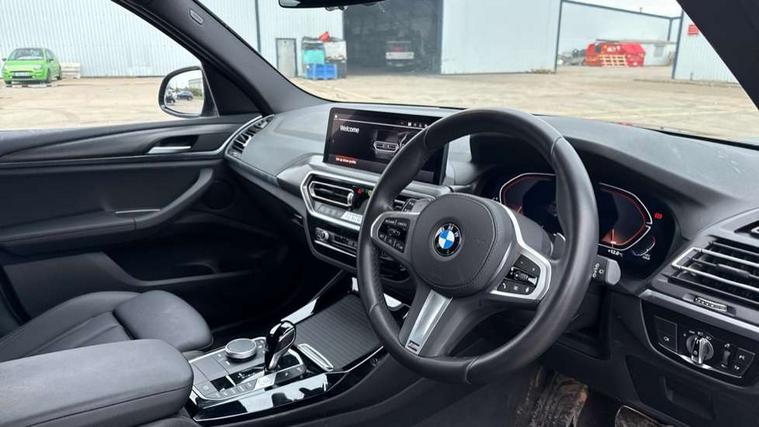 Active Guard, Attentiveness assist, BMW Live Cockpit Professional nav system including 12.3" instrument display + 12.3 high resolution control display, BMW Online services, BMW Teleservices, Brake pad wear indicator in front and rear, Check Control warning system for monitoring of lights and door/luggage compartment open warning, Condition based service - BMW service history, electronic service booklet, integrated owner's handbook, Connected drive services, Electric boot lid, Front/rear Parking distance control, iDrive touch controller with 8 favourite buttons, Instrument cluster with speedometer with mph readout, tachometer, fuel gauge and oil temperature gauge, Lights on warning by audio warning signal when ignition is switched off, Oil sensor for level and grade, warning by check control system, On board computer - average speed+fuel consumption, service interval, clock/date, odometer/trip meter, outside temperature display and ice warning, Optimum shift indicator, Personal Profile - automatic lock when driving away selectable, Run flat indicator, Stop/start system, Variable sports power steering with drive performance control Sport+ mode, Automatic transmission with gearshift paddles, Diesel particulate filter, Incorrect fuelling protection, Larger capacity fuel tank, M sport suspension, Multi-link rear suspension, BMW professional radio/CD/MP3, DAB tuner, Acoustic glazing, Automatic windscreen wipers and automatic headlight, Black finish on B pillars, Body colour door handles, Body colour electric adjust heated aspherical door mirrors, Body colour roof mouldings, Body coloured bumpers, Direction indicator, side repeaters, integrated in exterior mirrors, Dynamic brake lights, Exhaust tailpipes - dual, round, split left and right with chrome finisher, Fingertip control / anti-trap function on electric window, Folding wing mirrors with auto dimming, Follow me home headlights, Front and rear bumper system with replaceable deformation elements, Front and rear electric windows, Gloss chrome tailpipes finishers, Green tinted heat insulating glass, Heated windscreen washer jets, High beam assistant, High gloss black shadow line roof rails, High gloss shadowline exterior trim in decorative moulding side frame/recess cover/guide rail/B, C pillars/mirror frame and triangle with mirror base, High level 3rd brake light incorporating LED Technology, Interior rear view electrochromatic mirror with automatic anti dazzle function, LED tail lights, Lightweight engineering, M aerodynamic bodystyling, M Sport entry door sill strips, Model designation, Rain sensor, Rear side wing doors, Rear wing door, Rear wiper, Shark fin antenna, Side exterior M designation badges, Visible VIN plate, Welcome lighting, Windscreen wipers with adjustable interval, 12V power point in luggage area, 12V power socket in front centre console, 2 x USB Type C ports for charging and data transmission (front centre console) and 2 x USB Type C ports for charging (rear centre console), 3 rear headrests, 3 seat bench in 2nd row, 3 zone automatic air conditioning, 4 lashing points to secure luggage, 40:20:40 split folding rear seat with loading system, Ambient lighting, Anthracite headlining, Automatic interior light when door is opened/ignition switched off or via remote key, Floor mats in velour, Foldable storage floor with compartment, Four grab handles integrated in roof lining, Front and rear bottle holders integrated into door trim storage compartments, Front and rear side armrests integrated into door trim, Front centre armrest with storage compartment, Front footwell lights, Front head restraints, Front passenger seat, Front sports seats, Front/rear courtesy lights with soft on/off dimming, Front/rear reading lights, Heated front seats, Isofix rear child seat preparation, Leather gear knob, Lockable glove compartment, Luggage area underfloor compartment, Luggage compartment lighting, M sport leather steering wheel, Multifunction steering wheel, Parcel shelf removeable and storable under boot floor, Reach and rake adjustable steering column, Rear centre armrest with 2 cupholders, Removable / retractable luggage cover, Slope adjustable rear seats, Storage compartment in rear centre console and front/rear door trims, Sun visors with vanity mirrors and ticket pocket, Toolkit located in luggage compartment, Two front cupholders with removable oddments tray/lid, Connected pro pack - X3, ADB - Automatic Differential Brake, Anti-lock braking system (ABS) with brake assist, Automatic Stability Control (ASC), Battery safety cut-off, BMW emergency call, Brake drying, Brake energy regeneration, Braking pre-tensioning, Child locks on rear doors, Cornering brake control (CBC), Crash Sensor - activation of central locking release, hazard warning light and interior lighting, Deactivation of fuel pump in the event of a crash, Driver and front passenger front and side airbags with passenger deactivation and ITS front and rear head airbags, Driver and front passenger knee airbag, DSC+, Dynamic brake control, Dynamic Traction Control - DTC, Electromechanical parking brake, Hill descent control, Hill start assist, Seatbelt security check for front seats, Side impact protection, Three point seatbelts to all seats with front and outer rear pyrotechnic belt tensioners and seat belt force limiters, Two tone horn, Tyre pressure sensor, Ventilated front and rear disc brakes, Warning triangle and first aid kit, Central locking switch for all doors, fuel filler cap and luggage compartment, Electronic engine immobiliser, Locking wheel nuts, Remote control including two integrated key - one button for open/close all lockable content, windows and separate button for open luggage compartment, Remote control Thatcham category 1 alarm, Start/stop button with Comfort Go keyless engine start and auto Start/stop deactivation button, Low rolling resistance tyres,