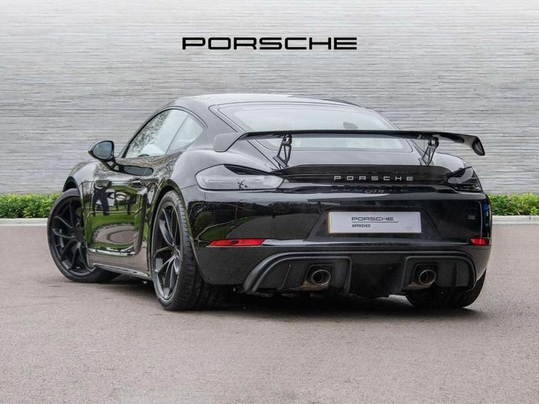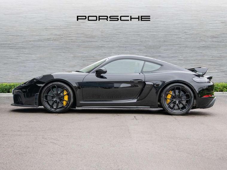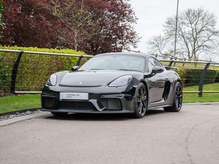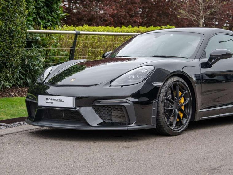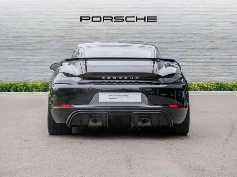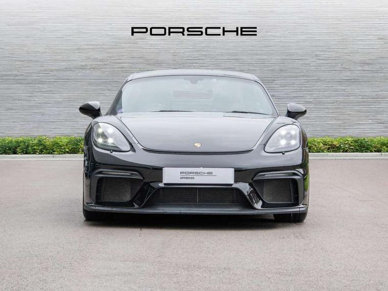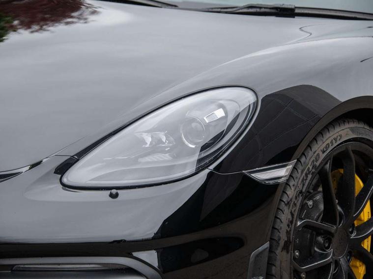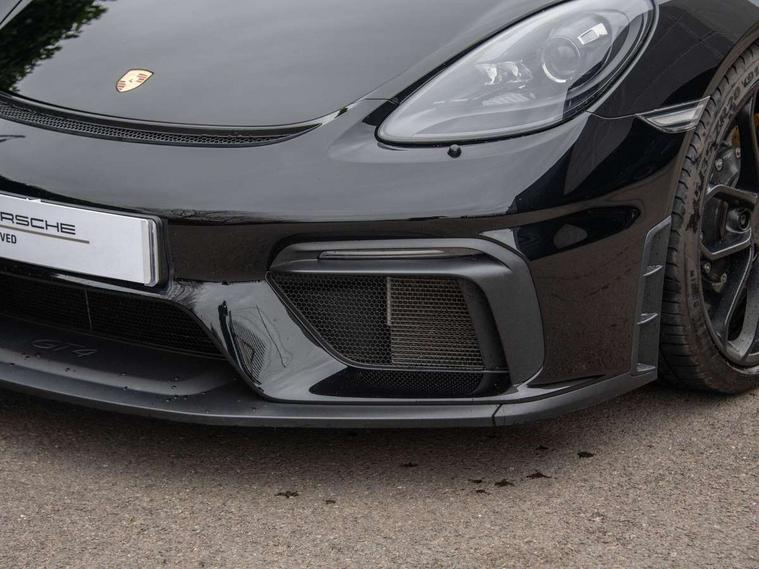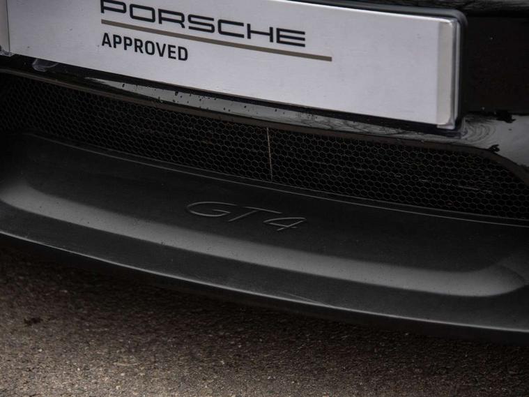 Auto blip button to activate automatic rev-matching for downshifts, Auto start and stop system, Digital displays for vehicle speed, chosen gear, odometer, trip odometer and clock, Electromechanical direct steering with variable steering ratio, Instrument cluster with central rev counter and high-resolution 4.6 inch colour display, Performance orientated shift indicator in the colour display of the instrument cluster, 4 valves per cylinder, 64 litre fuel tank, Adjustable chassis for race track use (toe, camber, anti-roll bars), Aluminium block and cylinder heads, Direct fuel injection (DFI), Dynamic gearbox mount system, Integrated dry-sump lubrication with an on-demand oil pump, Porsche Active Suspension Management (PASM) sport suspension with lowered 30mm ride height, Porsche stability management (PSM) including ABS with two switchable stages (SC OFF and SC+TC OFF), Porsche TORQUE Vectoring (PTV) with mechanical rear differential lock, Rear wheel drive, Shortened gear lever, VarioCam (camshaft control for inlet and exhaust valves) and adaptive cylinder management, Water cooled with thermal management, DAB Digital radio, Integrated 4G/LTE compatible SIM including data for the Porsche Connect Services, Navigation incl porsche + Apple Carplay, connect module, wireless internet access, carfinder, remote vehicle status, remote service and vehicle track, Automatic headlight activation including welcome home lighting, Black side window trim, Body colour bumpers, Closed underbody panel with two additional ventilation openings (NACA) for exhaust system, Electrically adjustable heated exterior mirrors on door waist rails, aspherical on driver's side, Fixed GT4 rear wing in exterior colour with integrated sideplates, wing uprights in black aluminium, Fixed rear spoiler, Front apron with large cooling intakes with grilles and spoiler lip with recessed GT4 logo in black and central air outlet, Green tinted heat insulating glass, Intelligent lightweight body in Aluminium/Steel composite construction, LED auxiliary light units in the front end with position lights, direction indicators and side indicators, LED tail lights and integral 4 point brake lights and reversing lights, Manually operated lightweight hood with electric locking function and two rear fins, Porsche logo on trim strip and model designation on rear apron in high gloss silver colour, Power windows with one touch operation and door seal protection, Rear apron lower part in black with integrated rear diffuser, Side air intakes with sideblades embossed with 'GT4' logo painted in exterior colour, Top tinted windscreen, Twin tract sports exhaust system with black central twin tailpipe in stainless steel, Wide opening rear hatch with heated screen, Windscreen washer system with two wiper speeds and washer jets, 12V sockets in passenger footwell and centre console storage compartment, 718 logo on gear lever, Adjustable fan with air recirculation and defroster functions, Clothes hooks on front seat backrests, Elevated centre console with uncovered storage compartment and closed storage compartment, Front and rear luggage compartments, Front headrests, LED reading lights, orientation, ignition lock, additionally luggage compartment and glove compartment lighting, Performance display in Porsche communication management (PCM), Storage compartments in each doors, Three way catalytic converter and on board diagnostics for monitoring emission control system, Two individual cup holders (integral to dashboard trim strip), Electrically controlled parking brake, Front and rear 4 piston aluminium monobloc fixed calipers, discs internally vented and cross drilled, front/rear disc diameter, brake calipers in red, Front and rear lightweight spring strut axle, Full size driver and passenger airbags, Porsche side impact protection doors with thorax airbag in outer backrest side bolster and head airbag for driver/passenger in door panel, Roll over protection, Tyre pressure monitoring system, Alarm system with interior surveillance, Anti-theft wheel bolts, Remote central locking and engine immobiliser, Dashboard trim strips and centre console trim in brushed aluminium, Instrument dials in black with yellow indices and scales, rev counter in titanium colour, GT4 logo, 20" 718 GT4 alloy wheels in satin platinum in sport tyre, Tyre sealing compound and electric air compressor kit,