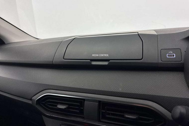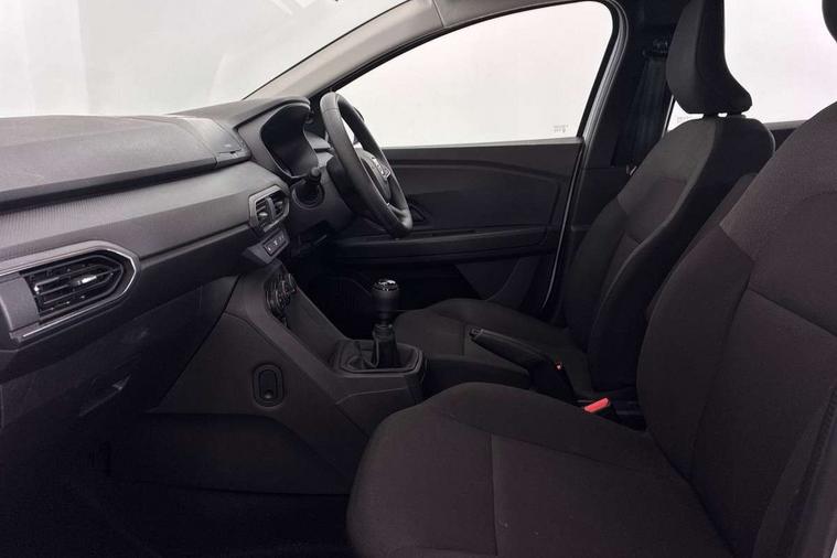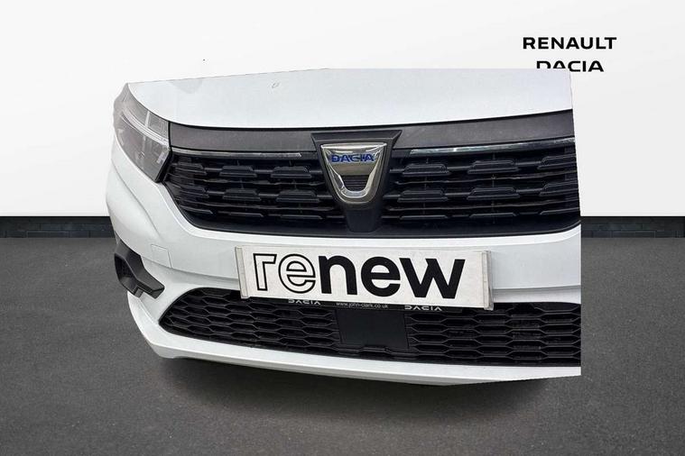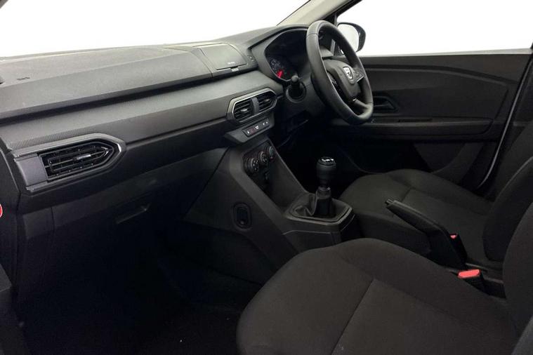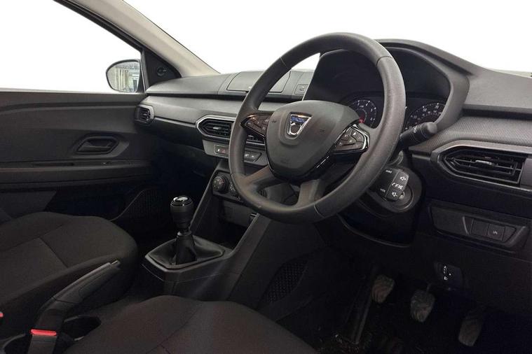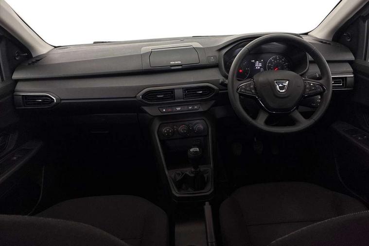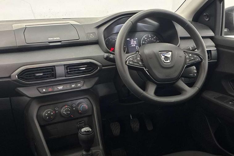 3.5" TFT instrument panel with on-board computer, Cruise control with speed limiter, eCall emergency call system, Eco mode, Electric power assisted steering, Rev counter, Stop/start system, Media Control - DAB Radio with display on instrument panel, Bluetooth, 2 Speakers, Pre-wiring for radio and speakers, USB connection for data transfer and charging, USB socket, 3 speed windscreen wipers, Auto lighting, Black door handles, Black door mirrors, Black radiator grille, Body coloured bumpers, Front electric windows, Heated rear window, High level third brake light, LED automatic daytime running lights, LED Y shape Dacia signature lighting, Manually adjustable door mirrors, Rain sensor, Rear manual windows, Rear side wing doors, Rear wash/wipe, Tinted windows, 1/3 to 2/3 split folding rear seats, 12 volt front socket, 3 height adjustable rear headrests, 3 seat rear bench, Black interior door handles, Fabric upholstery, Fixed smartphone holder on dashboard, Front armrest, Gear shift indicator, Height adjustable driver seat, Height adjustable front headrests, Height/depth adjustable steering wheel, Isofix points for child seats in both outer rear seats, Manual air conditioning, Satin chrome air vents, Single front passenger seat, Steering wheel controls, 3x3 point rear seatbelts, ABS and Emergency brake assist, Automatic emergency braking system, Child locks on rear doors, Door open warning, Driver airbag, ESC (Electronic Stability Control), ESP (Electronic Stability Program) + Hill Start Assist, Front curtain airbags, Front seatbelt pretensioners, Front side airbags, Height adjustable front seatbelts, Passenger airbag, Seatbelt reminder for driver and front passenger, Tyre pressure monitor, Automatic central locking, Immobiliser, Remote central locking, 15" Steel wheels with full wheel cap, Tyre inflation kit,