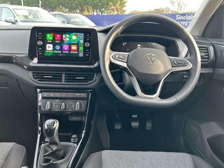 'Lights On' Reminder warning buzzer, 8" Digital cockpit, Advanced driver attention and drowsiness monitor, Bluetooth telephone and audio connection for compatible devices, Car information display, Dynamic road sign display, E-Sim card for online connectivity, eCall emergency call system, Front and rear parking sensors, Front assist, forward collision warning, autonomous emergency braking and speed limiter, Low washer fluid warning light, Multifunction computer with visual gear change recommendation for fuel consumption, Multifunction front facing camera for distance control, Operating permit alteration, Power assisted steering, Predictive adaptive cruise control, Preparation for navigation system with media and internet package, Preparation for We connect and We connect plus, Rear view camera, Semi-automated driving assistance, travel assist including lane keeping system Lane Assist and emergency assisst, Side assist, Speedo, rev counter, electronic odometer, trip, service interval display, exterior temperature and fuel gauge, Warning sound and light for doors and tailgate open, Warning sound and light for front seatbelts unfastened, Wireless Car net app connect with Apple CarPlay, combined functionality of Apple CarPlay/Android Auto and MirrorLink, Wireless charging, Misfuel prevention device, Start-stop system with battery regeneration (recuperation - energy recovery during braking), 2 USB C ports in front, 2 USB charging sockets on the centre console in the rear charging capacity upto 45W, DAB Digital radio receiver, Diversity antenna for FM reception, Multi device interface (MDI) with USB connection, Music playback - MP3, WMA and AAC files, Radio, Automatic dimming interior rear view mirror, Automatic hazard lights activation under emergency braking, Automatic headlight control with LED separate daytime running light and coming home and leaving home feature, Body colour door handles, Body colour door mirrors, Body coloured bumpers, Dynamic headlight range control with self adjusting whilst driving, Electric folding door mirror, adjustable, heated with front passenger exterior mirror lowering function, Exterior mirrors convex on the left and aspherical on the right, Front and rear electric windows, Galvanised body, Heat insulating and laminated safety glass windshield, Heat insulating darkened glass in side and rear windows, High Beam Assist, automatic sensing for switching between dipped and main beam, LED rear combination lights, LED third brake light, Lower door sills and door pillars in black, Rain sensor, Rear fog light on one side, reversing light on both sides, Rear side wing doors, Rear window aerial, Rear window wiper with intermittent control, Reflectors in all doors, Scuff plates, Tailgate with integrated roof spoiler, 12V Accessory socket in centre console, 3 rear head restraints, 3 seat bench in 2nd row, 60/40 split folding rear seat backrest, Ambient lighting and logo projection, Ceramique roof lining, Cloth upholstery, Door and side trim panel, Driver and front passenger sunvisor with vanity mirror, Dust and pollen filter, Front and rear reading lights X 2, Front centre armrest with storage compartment, Front seat back storage pockets, Glove compartment door with light, Heating and fresh air system with 4 stage blower, Height/reach adjust steering wheel, Instrument lighting white adjustable panel illumination, Interior light with switch off delay and dimmer, Isofix anchors for child seats on outer rear seats and front passenger seats, Leather gearshift handle, Leather wrapped multifunction steering wheel, Luggage compartment floor, Luggage compartment lighting, Manual front seats with height adjustment, Padded dashboard, Removable luggage compartment cover, Single front passenger seat, Storage compartment in drivers and front passengers door, Unsplit sliding rear seat bench, Without drawers under front seats, 3 point outer rear seat belts with ECE label, 3 Point seatbelt for centre rear seat, Anti-lock Braking System (ABS) with Hydraulic Brake Assist (HBA), Automatic post collision braking system, Disc brakes in front, Driver and front passenger safety-optimised head restraints, Drivers and Front Passengers airbags with front passengers airbag deactivation switch, Drum brakes in rear, ESC with EDL and ASR (traction control), Extended and predictive pedestrian/cyclist protection, Front and rear passenger curtain airbag system including front side airbags, Height adjustable front 3 point seatbelts + pretensioners, Hill start assist, Pre crash preventive occupant protection, Proactive passenger protection system in combination with front assist, Rear door child safety locks, Rigid safety cell with front and rear crumple zones, Single tone horn, Tyre pressure loss indicator, Volkswagen roadside assistance, Alarm with interior protection, Anti theft alarm system, Electronic engine immobiliser, Remote keyless entry using key fob including Start/Stop button on centre console with SAFELOCK, Remote tailgate unlocking using key fob, Low rolling resistance tyres,