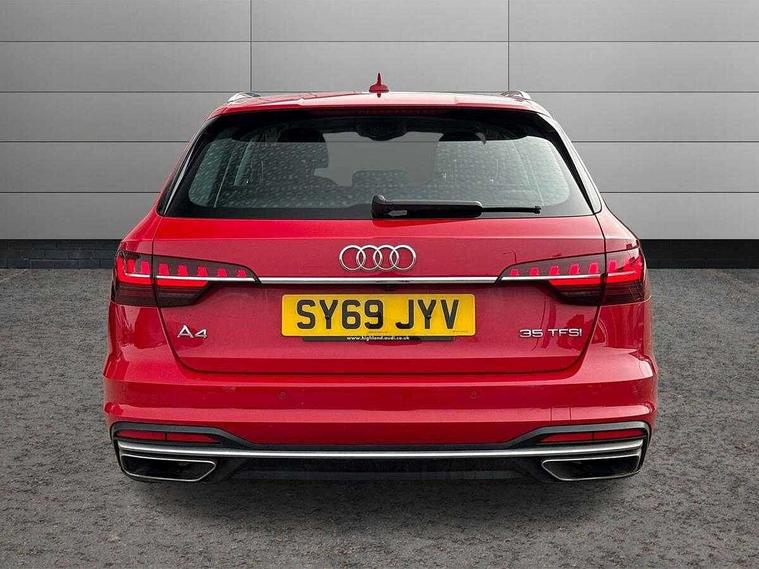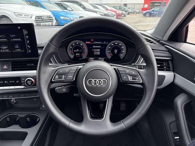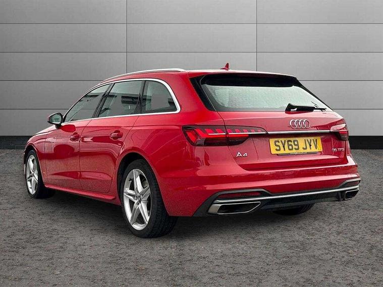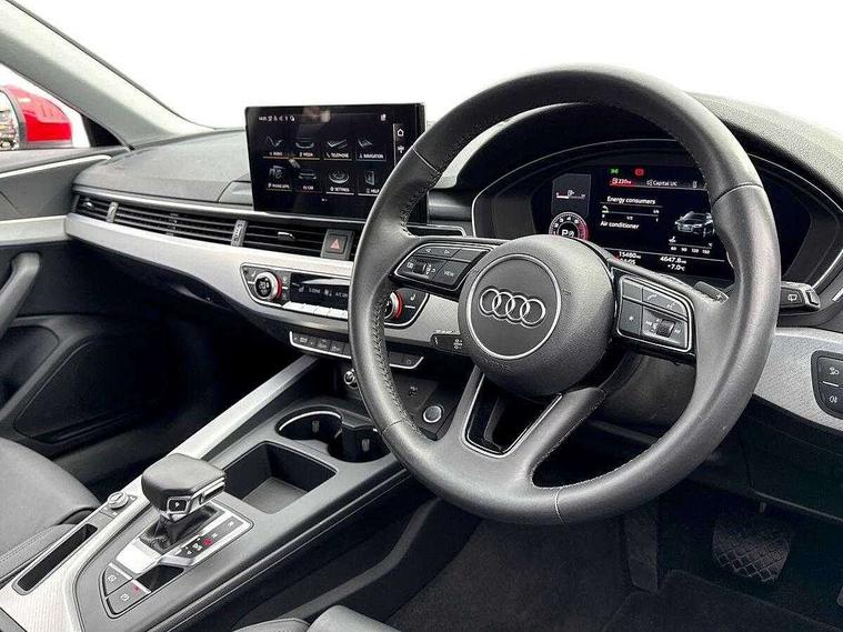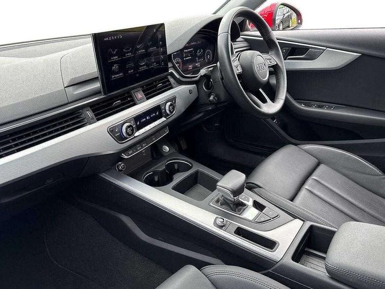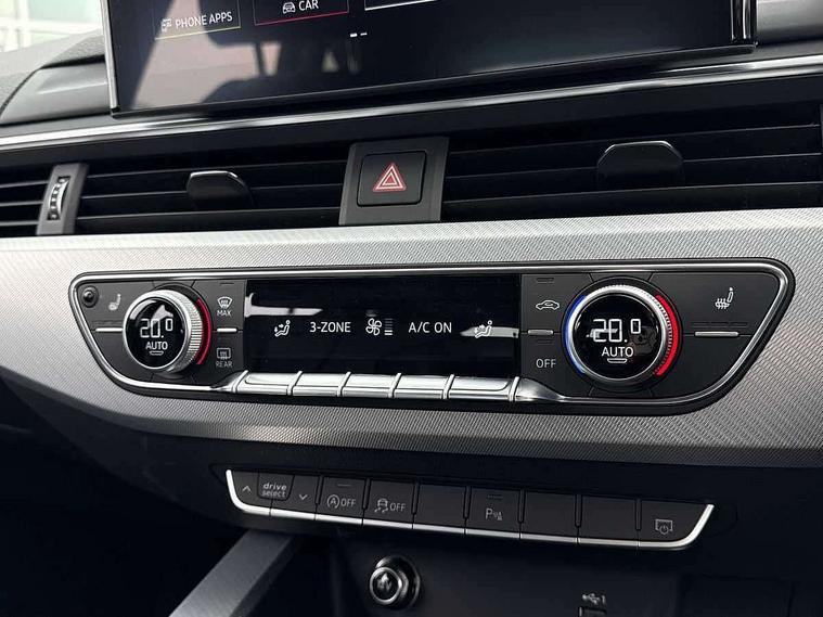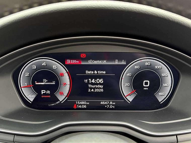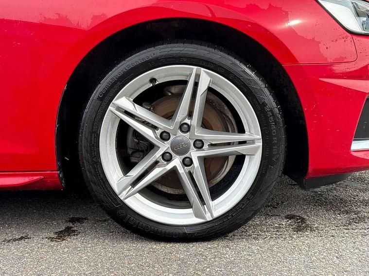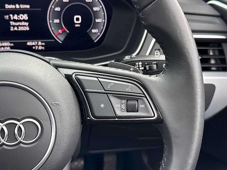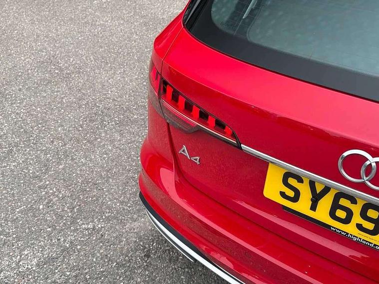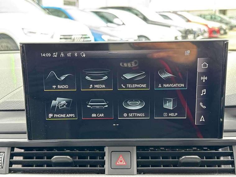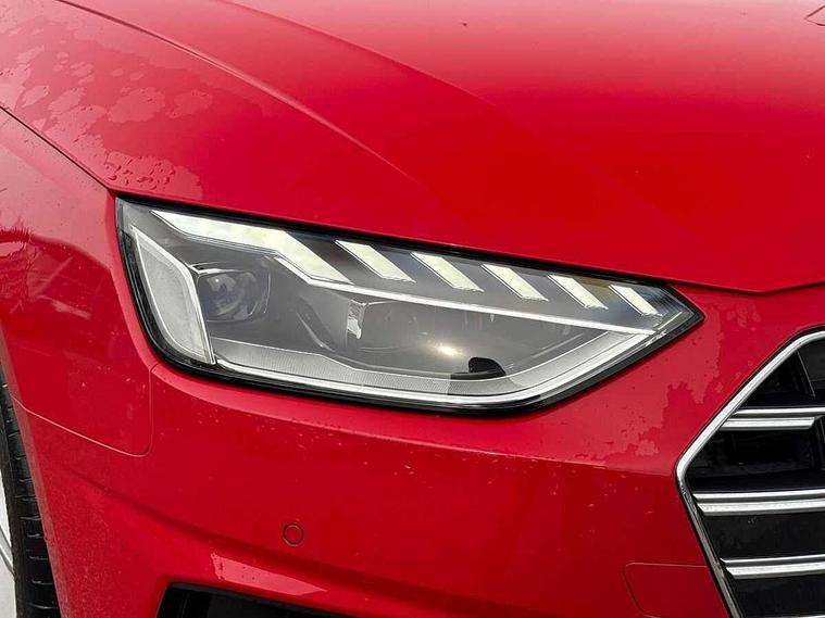 Audi connect safety and service (e-call), Audi drive select, Audi parking system plus with front and rear sensors, Audi smartphone interface, Audi virtual cockpit, Automatic start-stop system with coasting functionality and efficiency programme, Bluetooth interface, Cruise control system with speed limiter, Electromechanical power steering, MMI Navigation plus with MMI touch includes 10.1" high resolution colour MMI display, 3D map, Power operated tailgate, Rear view camera, Voice control system, 54 litre fuel tank, Comfort dynamic suspension, 2 USB charging ports, 8 passive loudspeakers, DAB digital radio reception, Aluminium roof rails, Auto dimming rear view mirror, Body colour door handles, Body colour side sill trim, Body coloured door mirrors, Electrically folding auto dimming/adjustable/heated door mirrors with LED side indicators and kerb view function for passenger side, LED headlights and rear lights with LED daytime running lights, Matt aluminium silver tailpipe trim, New design rear diffuser, Radiator grille and air inlets in titanium black with matt aluminium silver inserts, Rain and light sensors, Rear diffuser in matt titanium black with trim strip in matt aluminium silver, Sport front and rear bumpers with side skirts, Windscreen with acoustic glazing, 3 spoke high multi-function leather sports steering wheel with paddle shift, 4 way electric lumbar support for driver and front passenger, 40/20/40 split folding 3 rear seat bench in 3 parts with rear centre armrest, Deluxe 3 zone electronic climate control, Door sill trims with aluminium inlay, Electric load area cover, Front and rear head restraints, Front centre armrest, Heated front seats, ISOFIX child seat mounting and top tether, Manual seat adjustment, Twin leather upholstery + front sports seats, High gloss package - A4, LED Interior light pack - A4/S4, 3 rear seatbelts, 6 airbags - Driver, front passenger, curtain and side windows, Electronic Stabilisation Control (ESC) including ABS, ASR and EDL, Hill hold assist, Multi collision brake assist, Pop-up bonnet for pedestrian protection, Pre sense city, Seatbelt monitoring, Warning triangle and first aid kit, Anti theft alarm, Anti theft wheel bolts, Keyless Go, Aluminium ellipse silver inlays, Tool kit, Tyre repair kit,