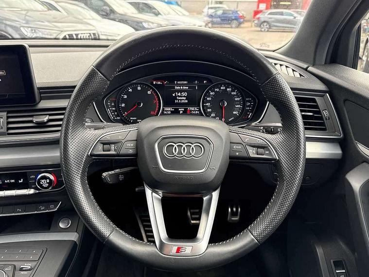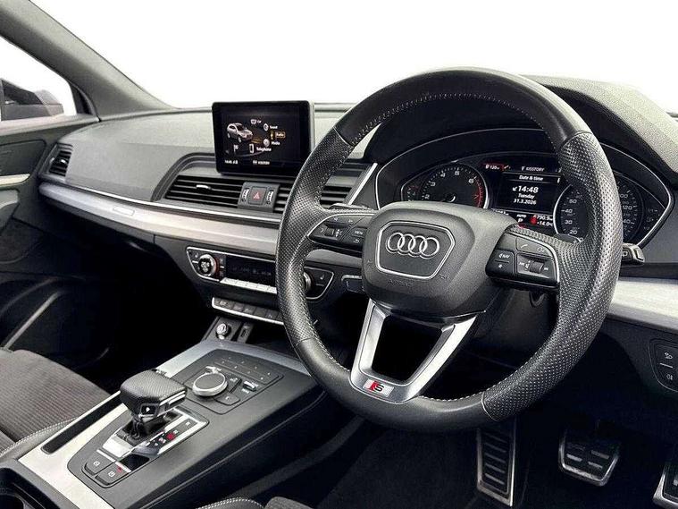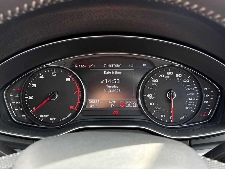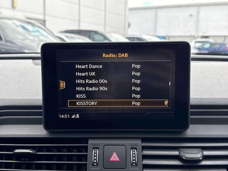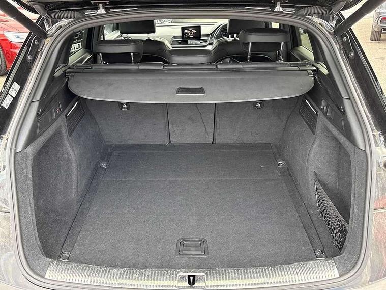 Contrast stitching, Non Smokers pack, Keyless Go access/ignition system, Locking wheel bolts, Remote central locking, Thatcham category 1 alarm + immobiliser, 2 USB ports, Audi sound system, Auxiliary input socket, CD player, DAB Digital radio, MMI radio plus with 7" colour MMI screen and MMI controller, 3 point seatbelts on all seats, ABS, Curtain airbags, Driver and passenger airbags, Driver and passenger side airbags, Electromechanical parking brake, ESC with ASR, ESP, First aid kit, Front passenger airbag deactivation, Hill descent control, Seat belt force limiter, Seatbelt warning lamp, Traction control, Tyre pressure monitor, Warning triangle, Acoustic windscreen, Aluminium roof rails, Aluminium sill plates, Auto dimming rear view mirror, Black high gloss front air inlet in matt aluminium effect, Body colour bumpers, Body colour door mirrors, Body colour rear diffuser insert, Chrome exhaust tailpipe, Electric headlight adjustment, Electrically adjustable and heated door mirrors, Front and rear electric windows, Front fog lights, Headlight range control, Headlight washers, Honeycomb side air inlet in titan black, Light and rain sensor for auto activation of lights and windscreen wipers, Loading sill protector in stainless steel, Privacy glass with front acoustic glazing, Rear diffuser strip in matt aluminium silver, Rear spoiler, Rear wiper, S Line side skirts, Selenite silver underbody guard, Twilight grey matt radiator grille with matt aluminium horizontal chrome struts, 3 rear headrests, 3 zone climate control, 4 way electric lumbar support for driver and front passenger, 40:20:40 split folding rear seat, Black cloth headlining, Front centre armrest with 12v socket, Front sports seats, Front/rear floor mats, Height adjustable driver's seat, Height adjustable front head restraints, Illuminated door sills, Isofix front passenger and rear seat preparation, Jack and tool kit, Load compartment cover, Luggage compartment carpet, Matt selenite silver door inserts, Perforated leather gearknob, Reach + rake adjustable steering column, Removable luggage compartment floor, Removable net partition, Roller blind loadspace cover, Stainless steel pedals, Sunvisors with vanity mirrors, Audi connect, Audi drive select, Audi smartphone interface, Driver information centre with colour display in instrument panel, Electric power steering, Power tailgate, Remote electric boot opening/closing, SD card based MMI navigation, Service interval indicator, Voice control system,