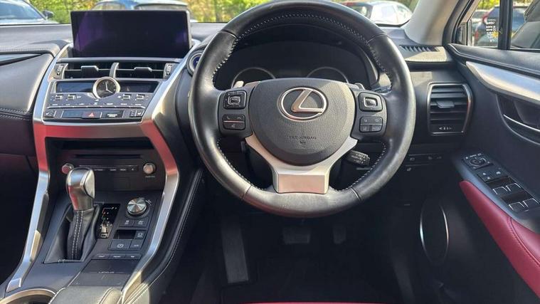 4 driving modes EV/Eco/Normal/Sport, 4 front and 4 rear park assist sensors, 8" display screen with remote touch interface, Analogue clock, Apple car play/Android Auto, Bluetooth telephone connectivity, Electric speed sensitive power steering, Lane change flasher function, Lexus link connected services with available optional wifi, Lexus navigation system, Push button starter, Reversing camera, All wheel drive system, Vehicle Dynamics Integrated Management (VDIM), Vehicle Stability Control (VSC), 2 USB ports, 8 Speakers, AUX socket with VTR compatibility, CD player, DAB Digital radio, Auto dimming interior rear view mirror, Bi LED headlight with Auto high beam, Body adhesive, laser screw welding and laser brazed roof structure, Front and rear one touch power windows, with anti-jam protection, Heated and auto folding door mirrors with turn indicators, Hidden exhaust pipe, LED brake lights and rear lights with emergency brake signal, LED daytime running lights, LED front and rear sequential indicators, Rain sensor windscreen wipers, Roof rails, 12V accessory port centre console and luggage compartment, 2 cupholders in front centre console, 2 map pockets in the rear, 2 x fixed shopping bag hooks in boot, 2 x sun visors with vanity mirror and lamp, 6 tie down hooks in boot, 60/40 split folding rear seat, 8 way driver/passenger electrically adjustable front seats, Adjustable rear seat backrest, Card holder installed in driver and passengers sun visors, Centre armrest with storage box, Dual climate control air conditioning system, Front and rear head restraints, Front and rear textile carpet mats, Heated front seats, Leather gear lever, Leather steering wheel with paddle shifts, LED interior illumination, Rear air vents, Rear centre armrest with 2 cupholders, Self charging hybrid, Tahara leather upholstery, Whiplash Injury Lessening (WIL) feature (active headrest) for seats, 2 x Isofix child rear seat restraints, 3 point ELR front seatbelts with pretensioners, 3x3 point rear seat belts, ABS, Adjustable seat belt anchor points, Driver and front passenger 2 stage airbag, Driver/front passenger side airbags, Drivers knee airbag, EBD + Brake Assist, ECB (Electronically Controlled Brake System), Electronic parking brake, Front and rear curtain shield airbags, Front passenger seat cushion airbag, Hill start assist, Hybrid automatic with 6 stage sequential shift and kick down switch, Lexus safety system - dynamic radar cruise control, pre collision system day and night, lane tracing assist, road sign, automatic high beam, OTA, Passenger airbag cut-off device, Traction control, Tyre pressure warning, 2 x remote key fobs, Anti-theft system with siren, alarm, intrusion sensor, glass breakage sensor, tilt sensor and engine immobiliser, Locking wheel nuts, Speed sensitive auto door locking, Two motion door lock with double lock, VIN Window etching, Silver inlays, Space saver spare wheel,
